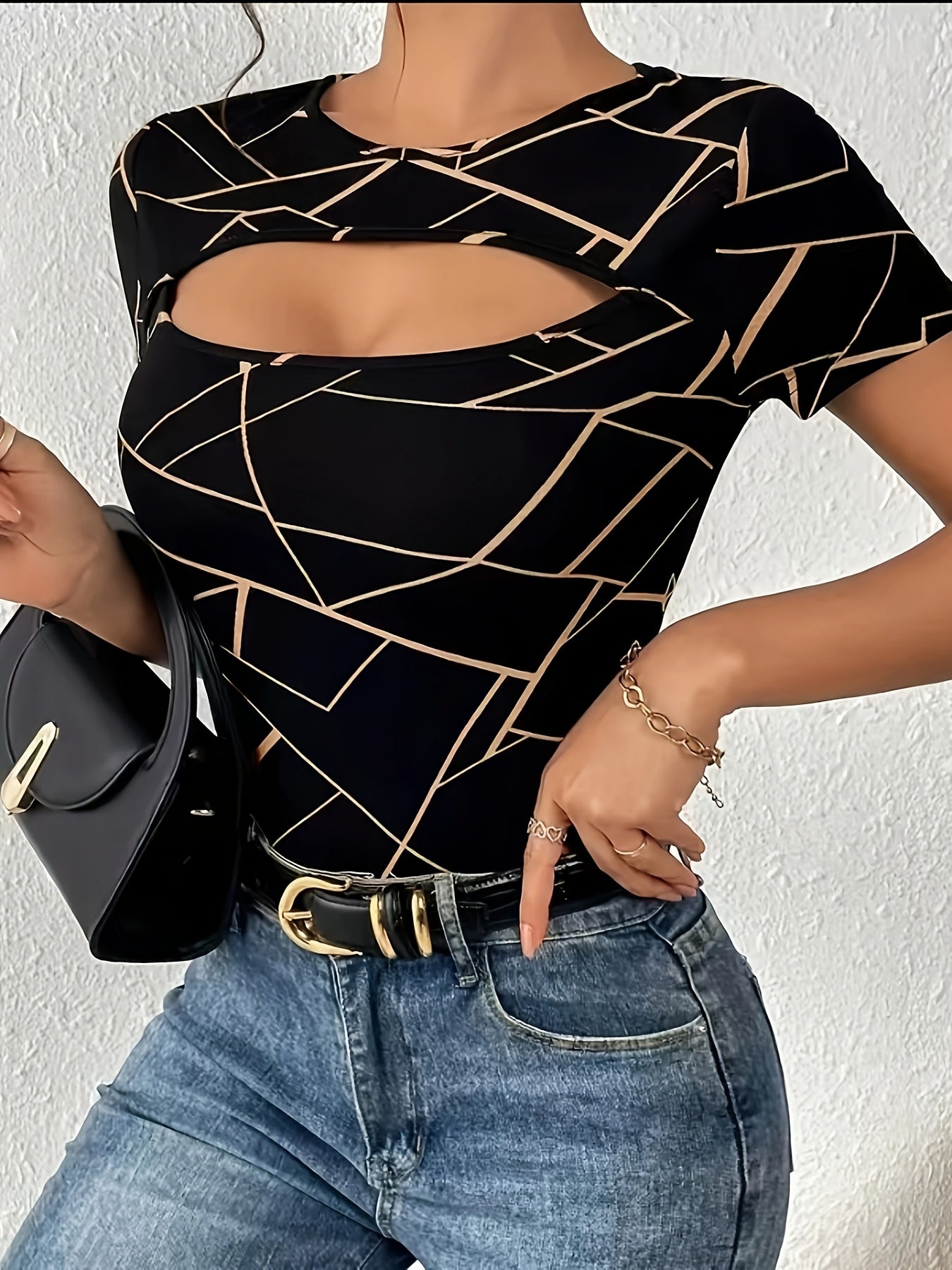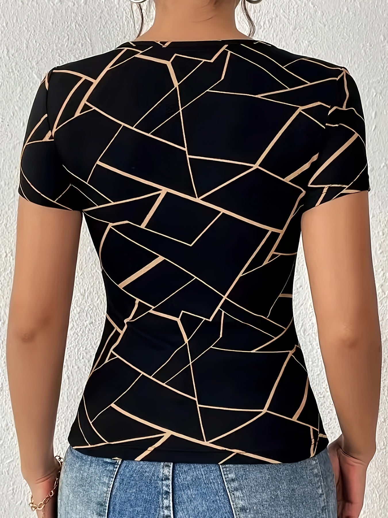 Կանացի ամենօրյա երկրաչափական ադամանդե նախշերով բաց ուսերով շապիկ - սև և ոսկեգույն հակադիր, թեթև, շնչող գործվածք, լվացքի մեքենայով լվացվող գարուն-ամառ վերնաշապիկներ, կանացի շապիկներ, նորաձև հանդերձանք, էլեգանտ դեկոլտե, հակադիր դետալներ