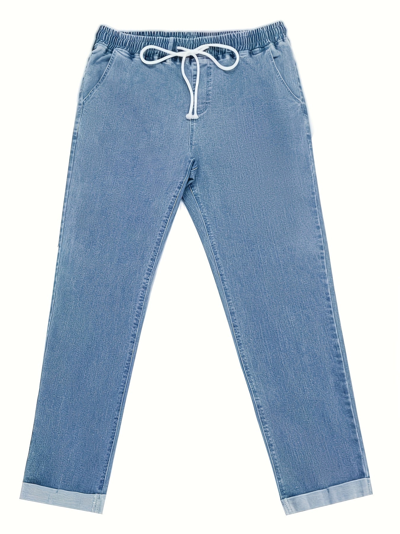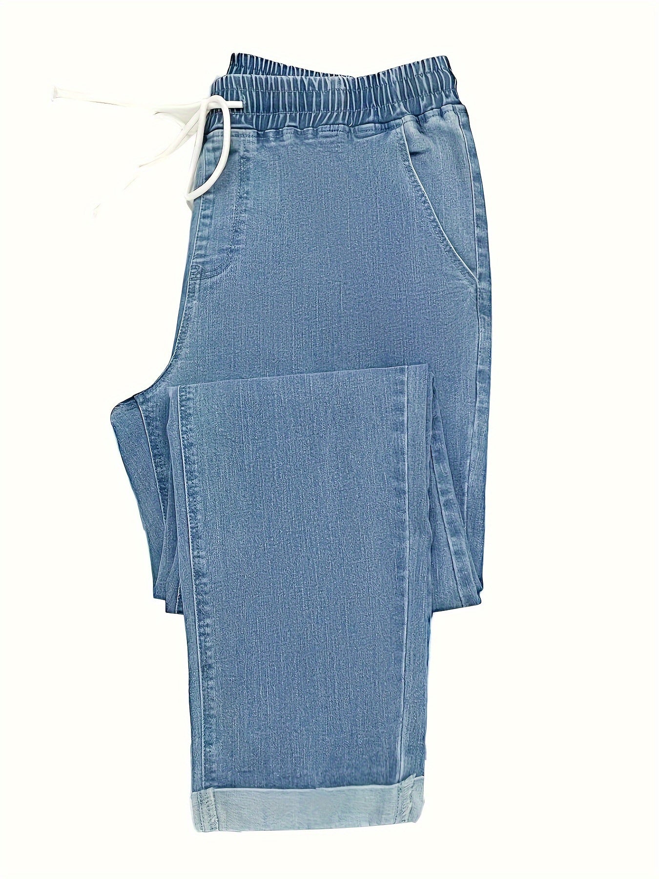 Կանացի պատահական բարձր գոտկատեղով ջինսեր՝ ճարմանդով և պարանով գոտկատեղով - ձգվող ջինսե, մեքենայով լվացվող