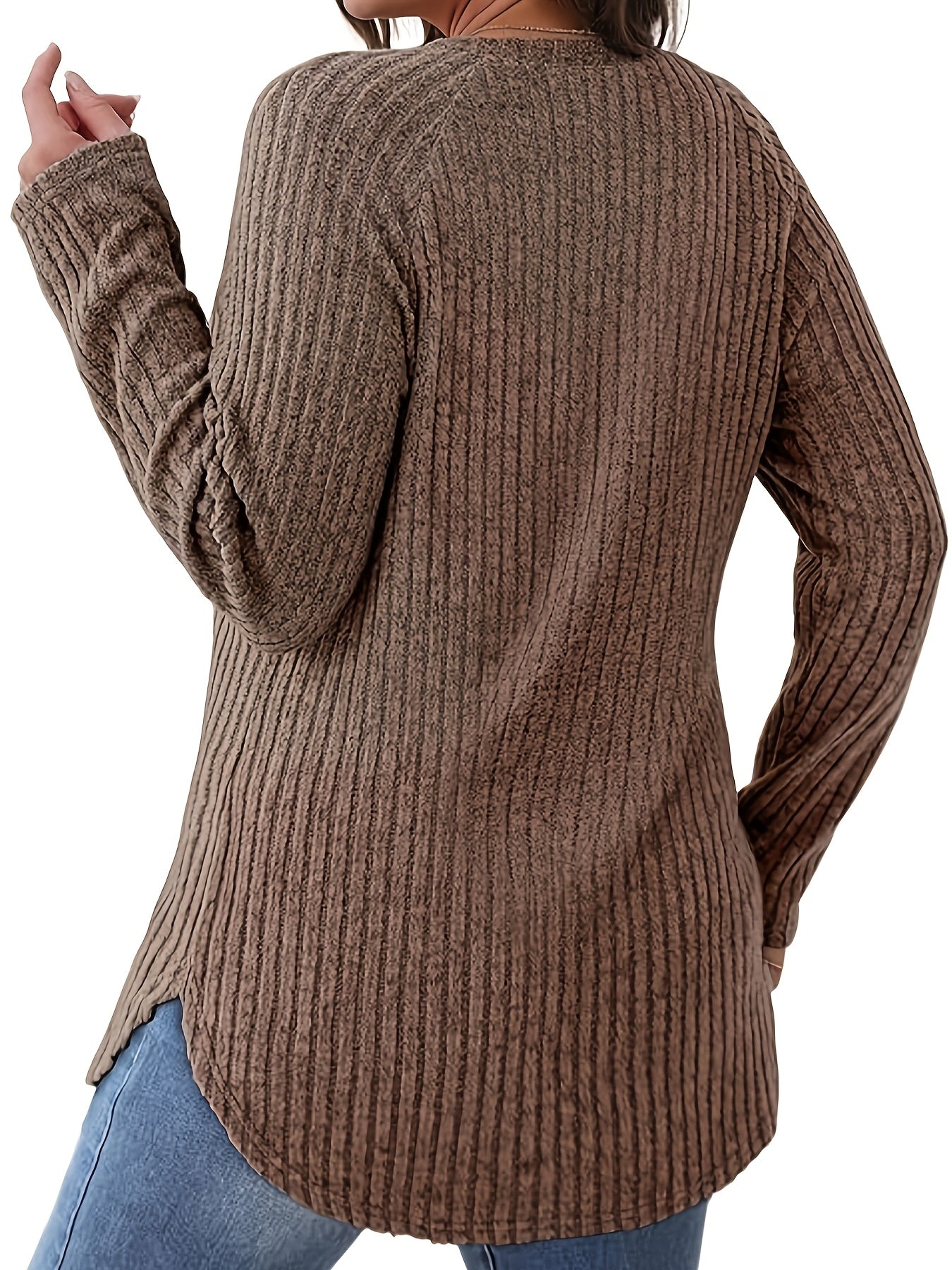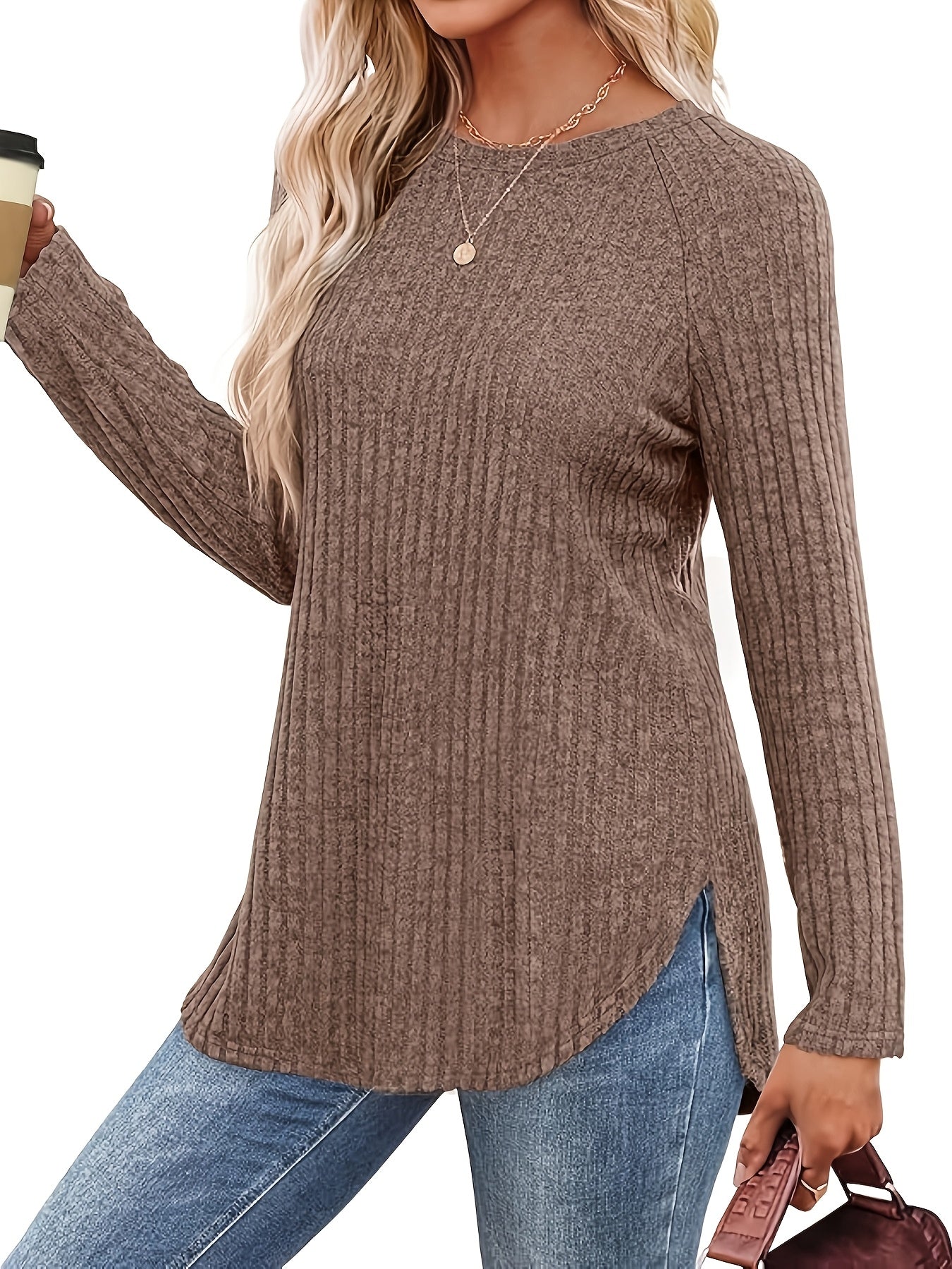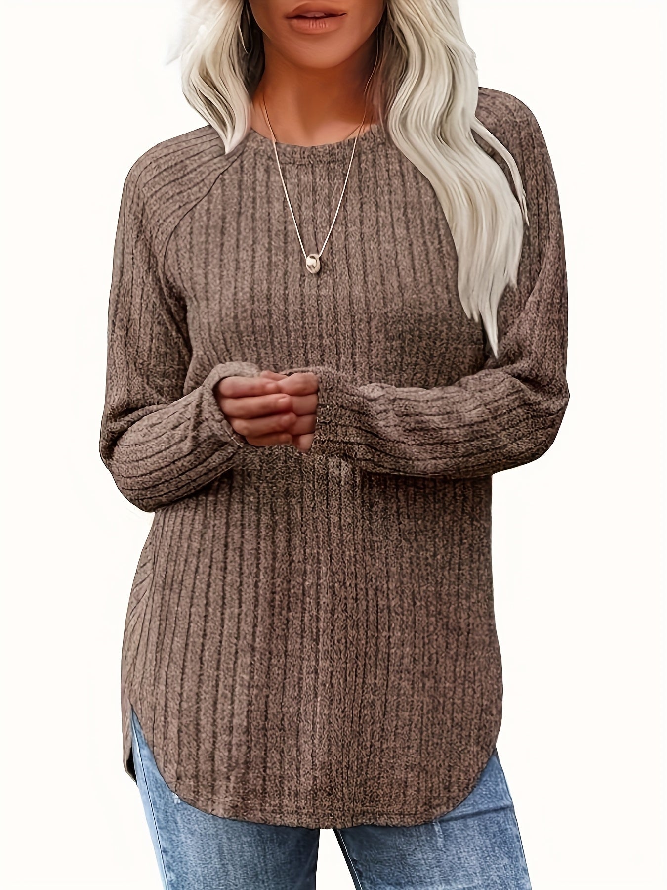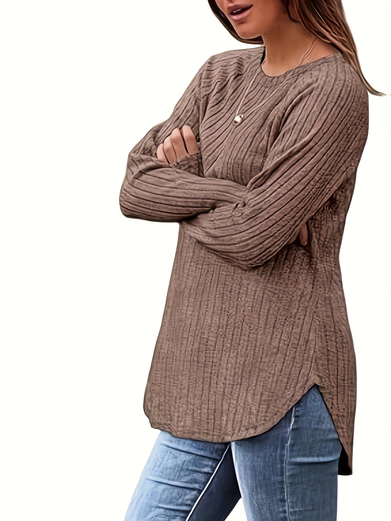 Կանացի պատահական երկարաթև թունիկ վերնաշապիկ՝ ազատ տեղավորմամբ, կլոր պարանոցի սվիտեր միաձույլ գույնի, ձգվող պոլիեսթեր խառնուրդ, լվացվող մեքենայում՝ կատարյալ գարնան/աշունի համար