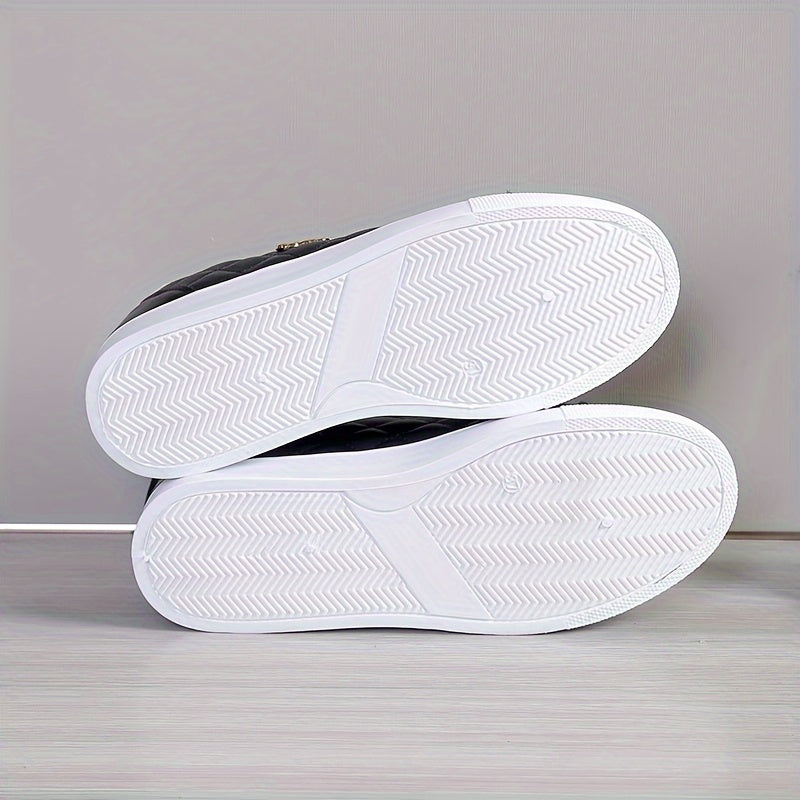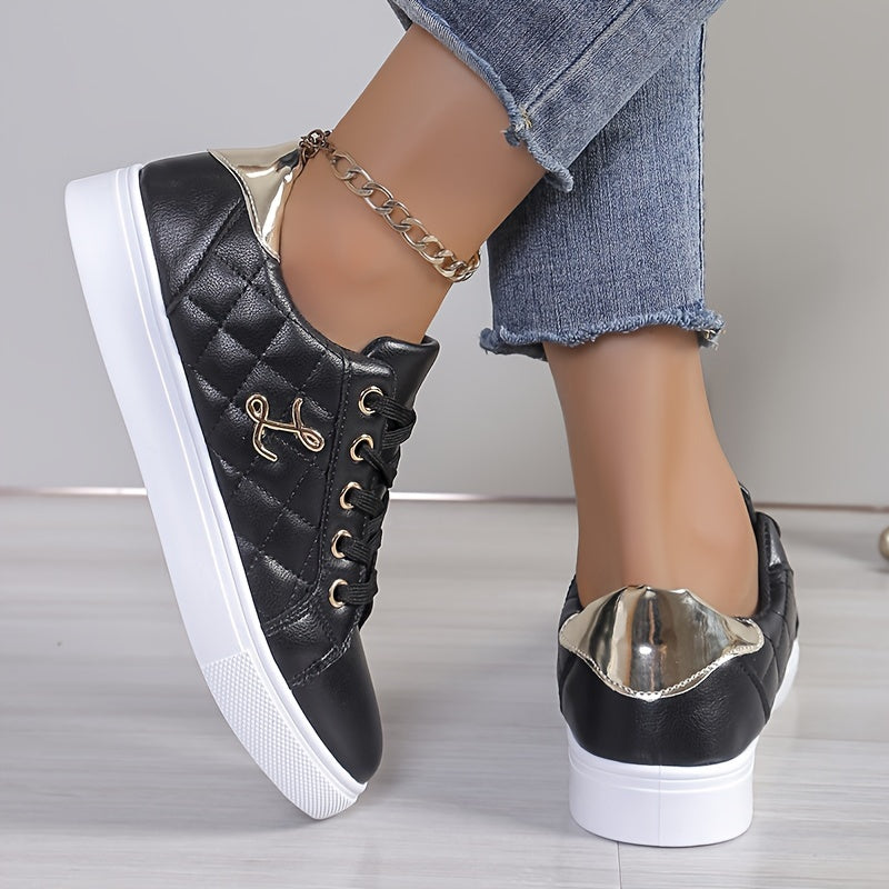 Կանացի պատահական ցածր վերևից ժանյակավոր սպորտային կոշիկներ՝ սպիտակ արհեստական ծածկոց՝ ոսկեգույն շեշտադրումներով, թեթև և հարմարավետ, կլոր մատների ձևավորում՝ ամենօրյա հագուստի համար