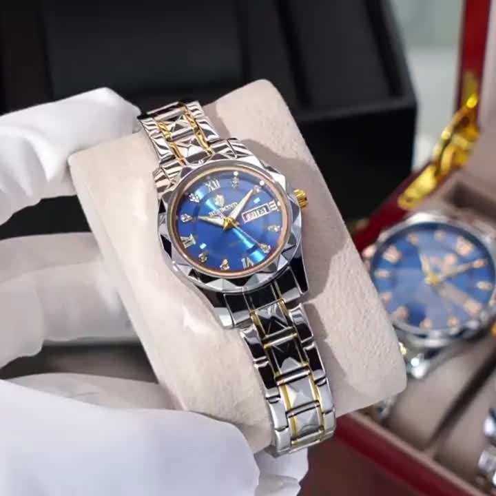 Կանացի առօրյա շքեղ պարզ լուսարձակ օրացույցով քվարցային ժամացույց