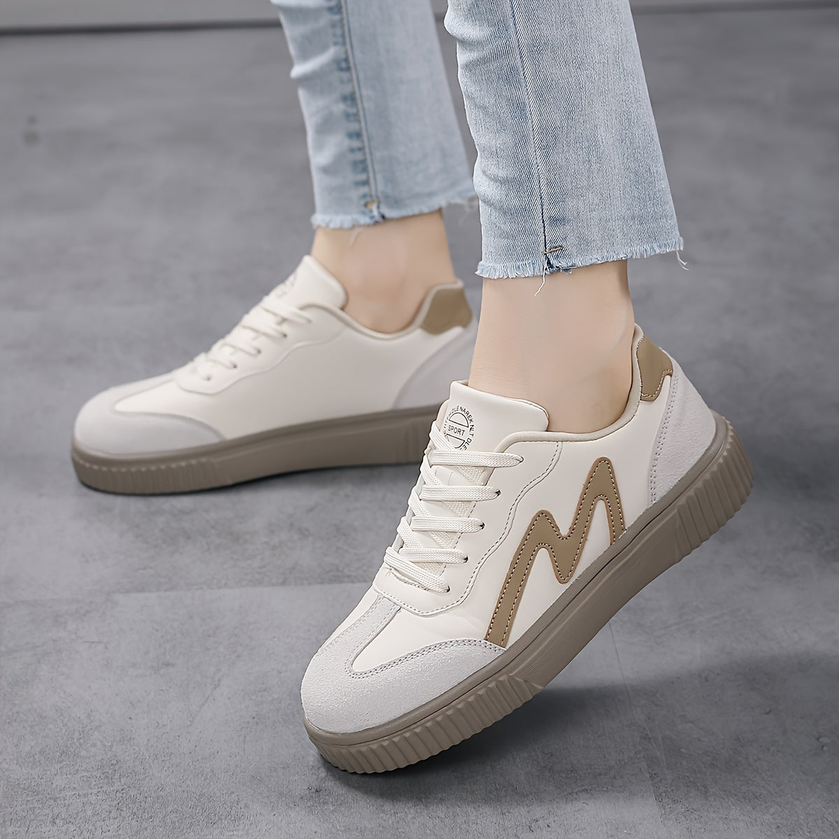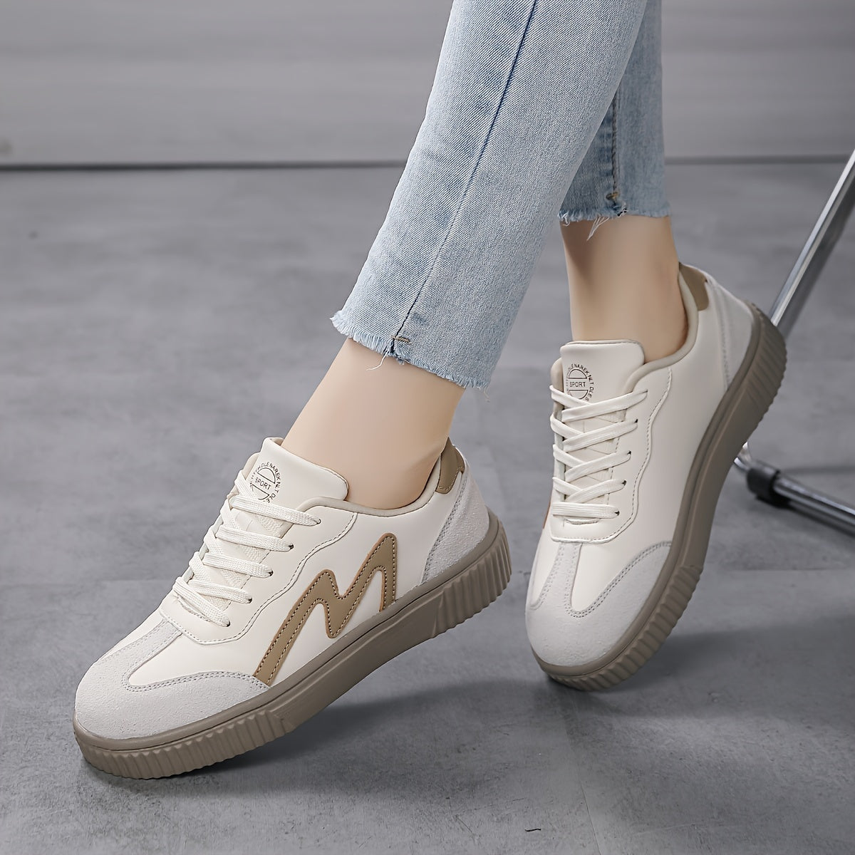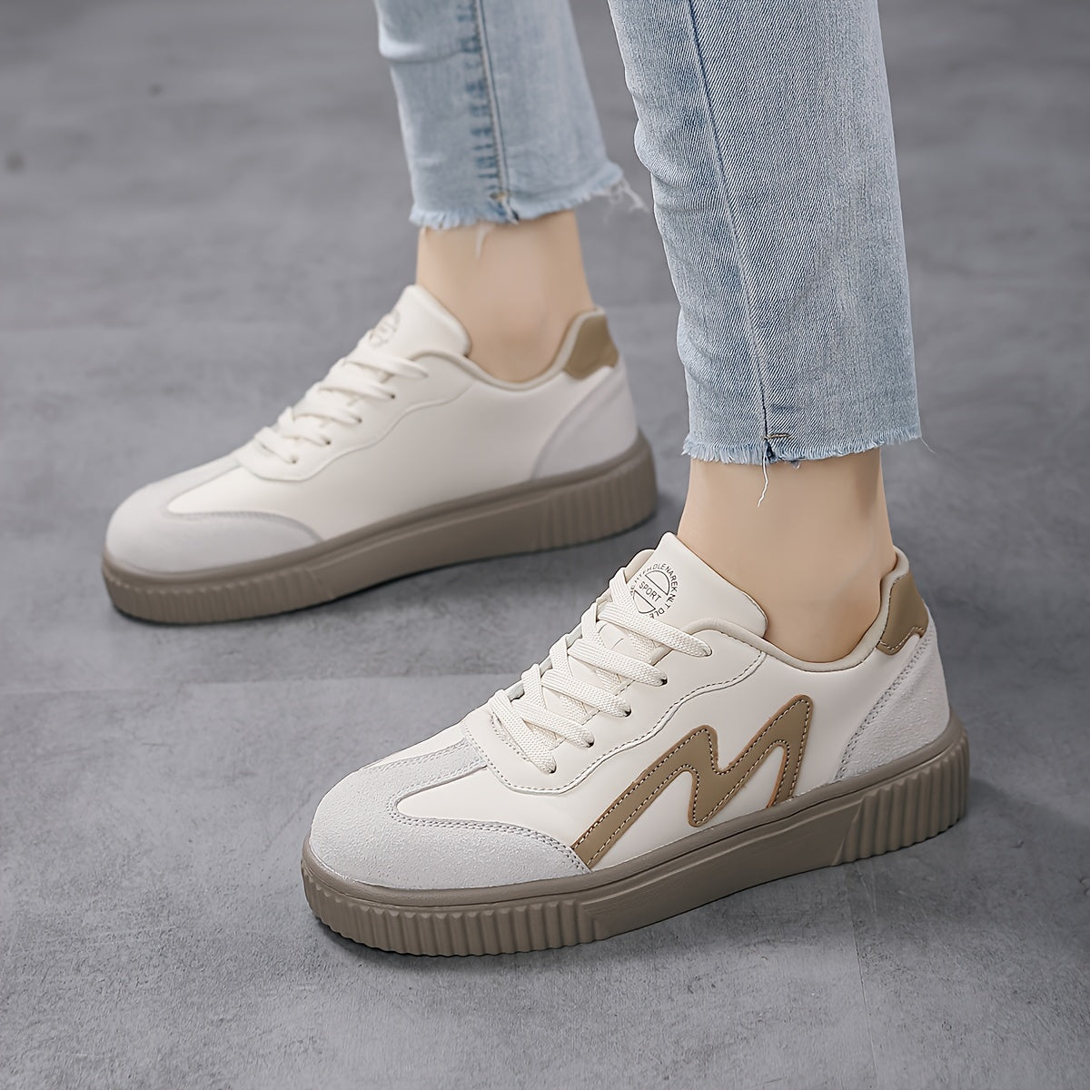 Կանացի պատահական սպորտային կոշիկներ Նորաձև պարզ ժանյակավոր շնչառական հարմարավետ ցածր վերևից մարզվող կոշիկներ, բեժ PU ծածկոց, Campus կոշիկներ