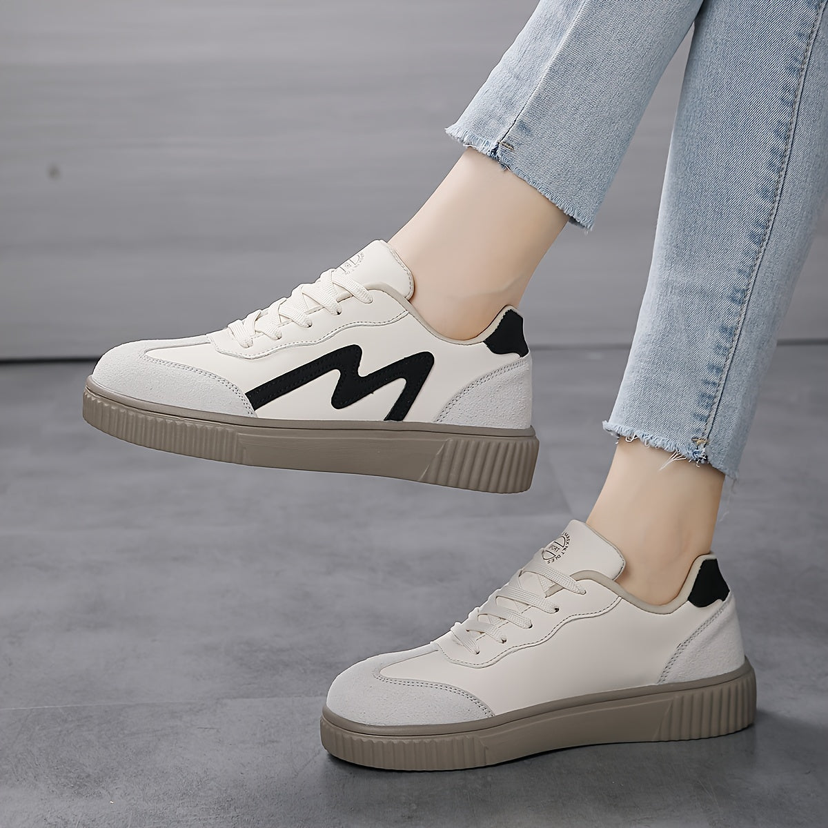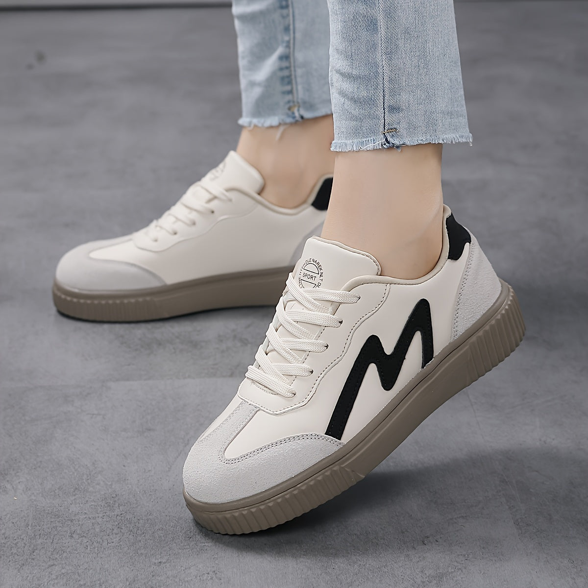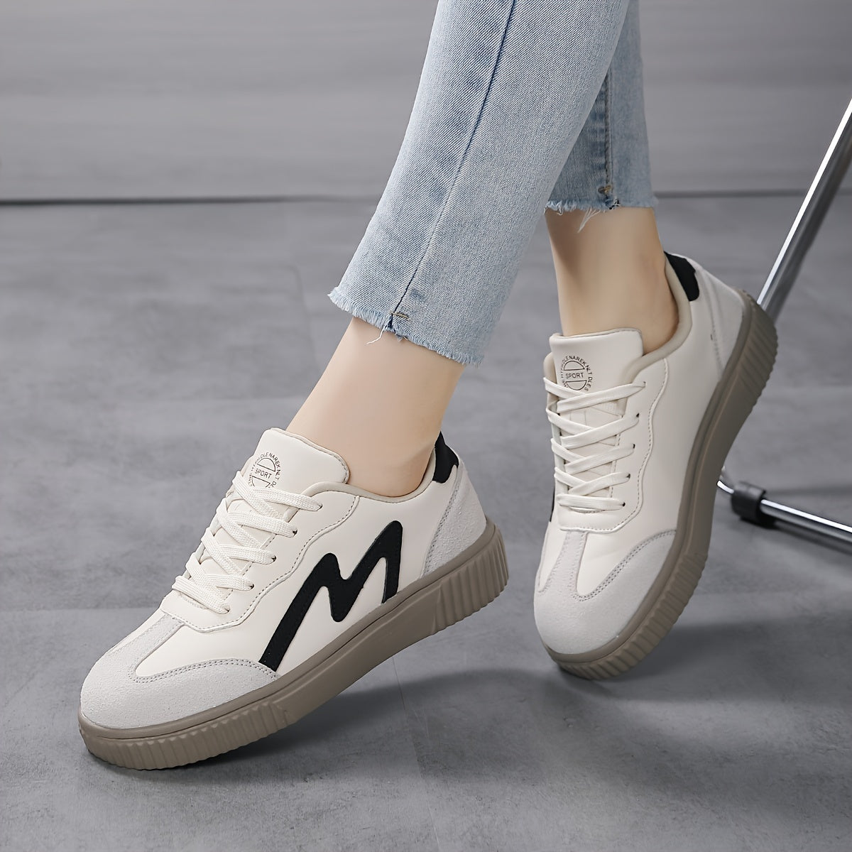 Կանացի պատահական սպորտային կոշիկներ Նորաձև պարզ ժանյակավոր շնչառական հարմարավետ ցածր վերևից մարզվող կոշիկներ, բեժ PU ծածկոց, Campus կոշիկներ