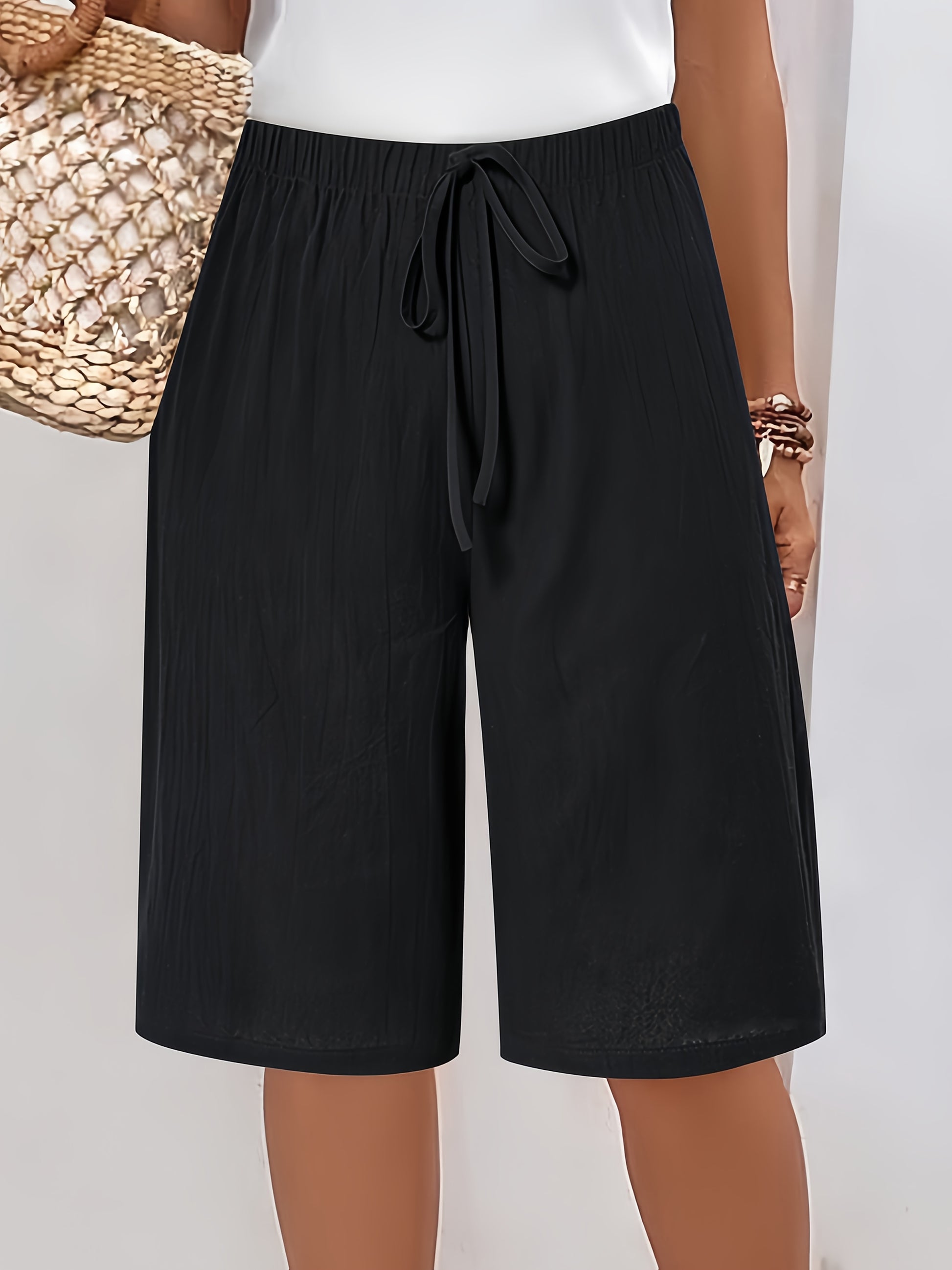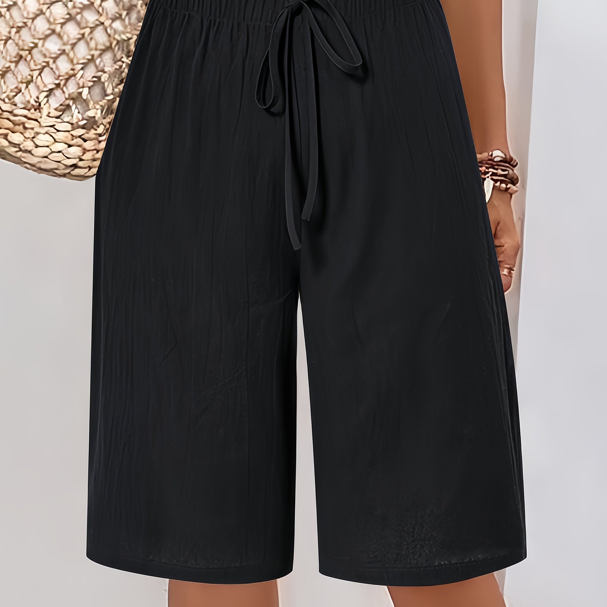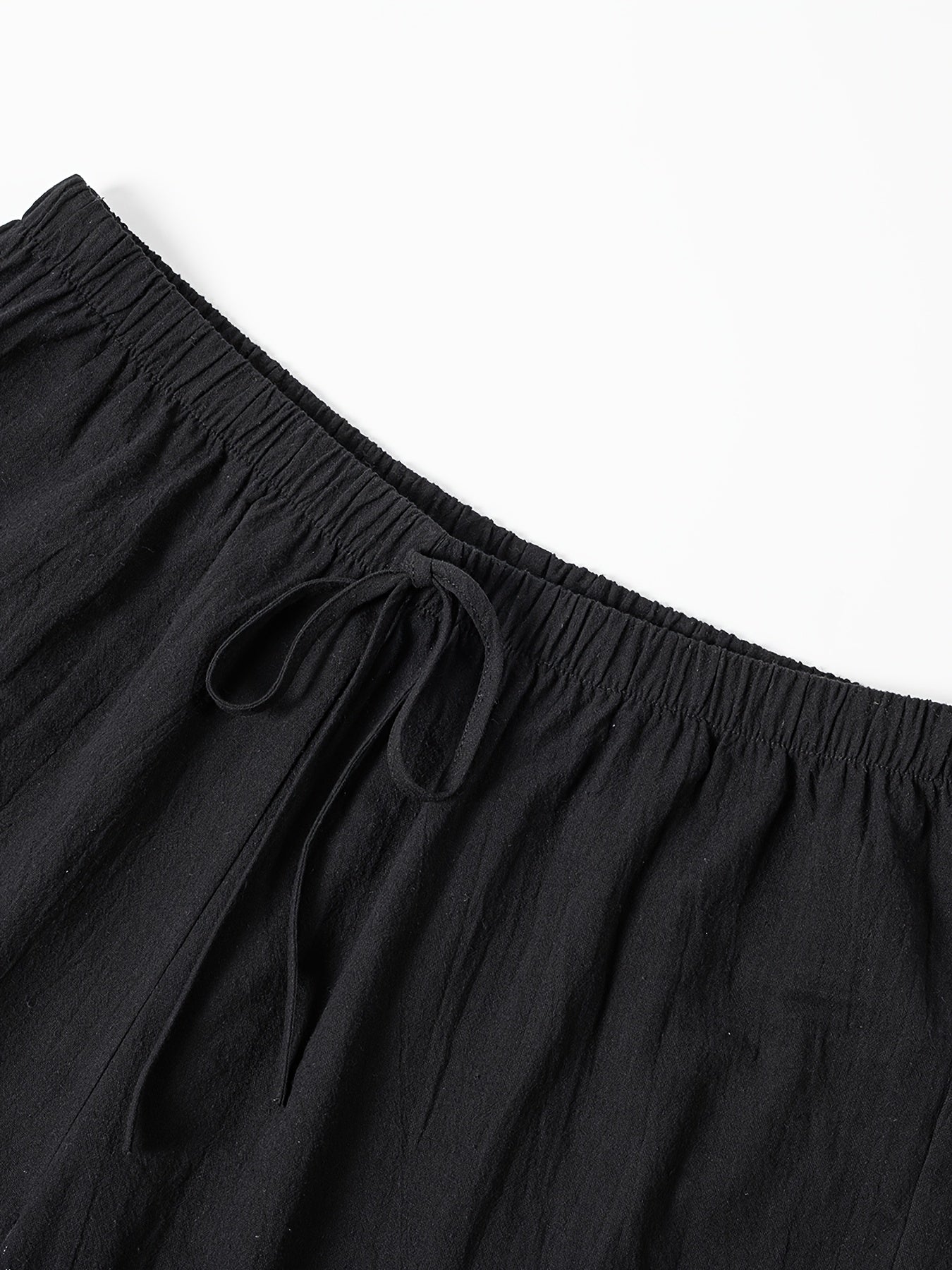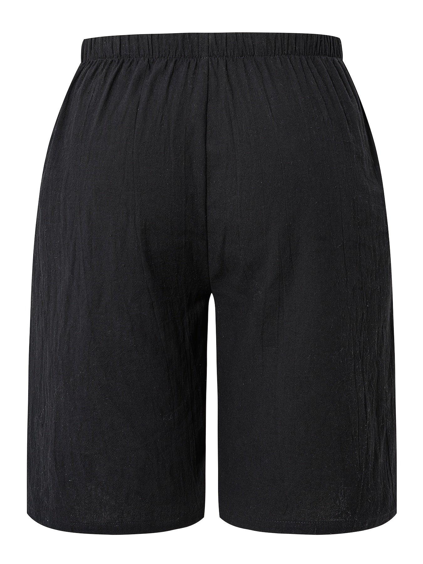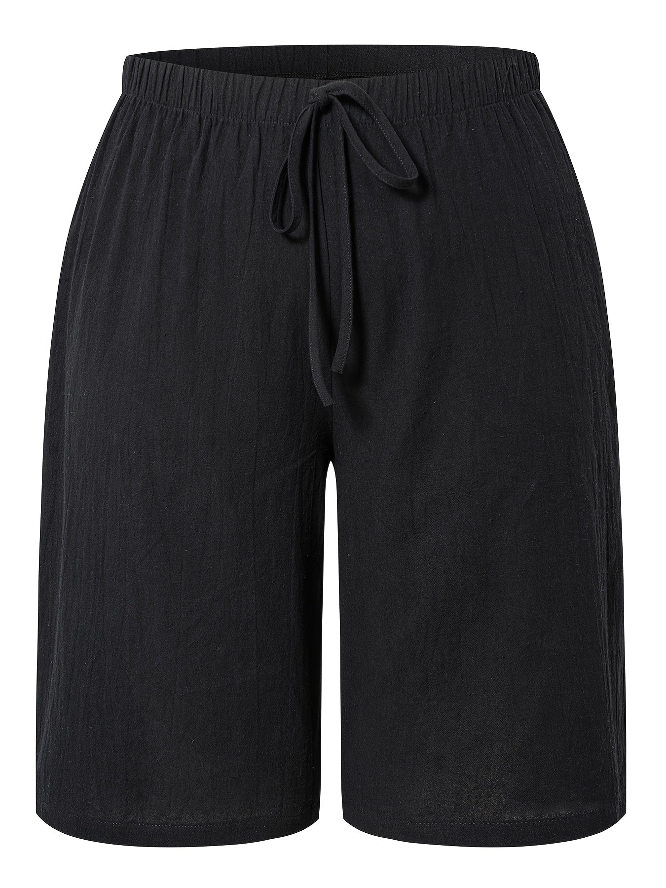 Կանացի սովորական միաձույլ շորտեր, 100% պոլիեսթեր հյուսված գործվածք, բոլոր սեզոնային լողափնյա տաբատ՝ կեղծ թելերով, 126գ/մ² Քաշ՝ սև