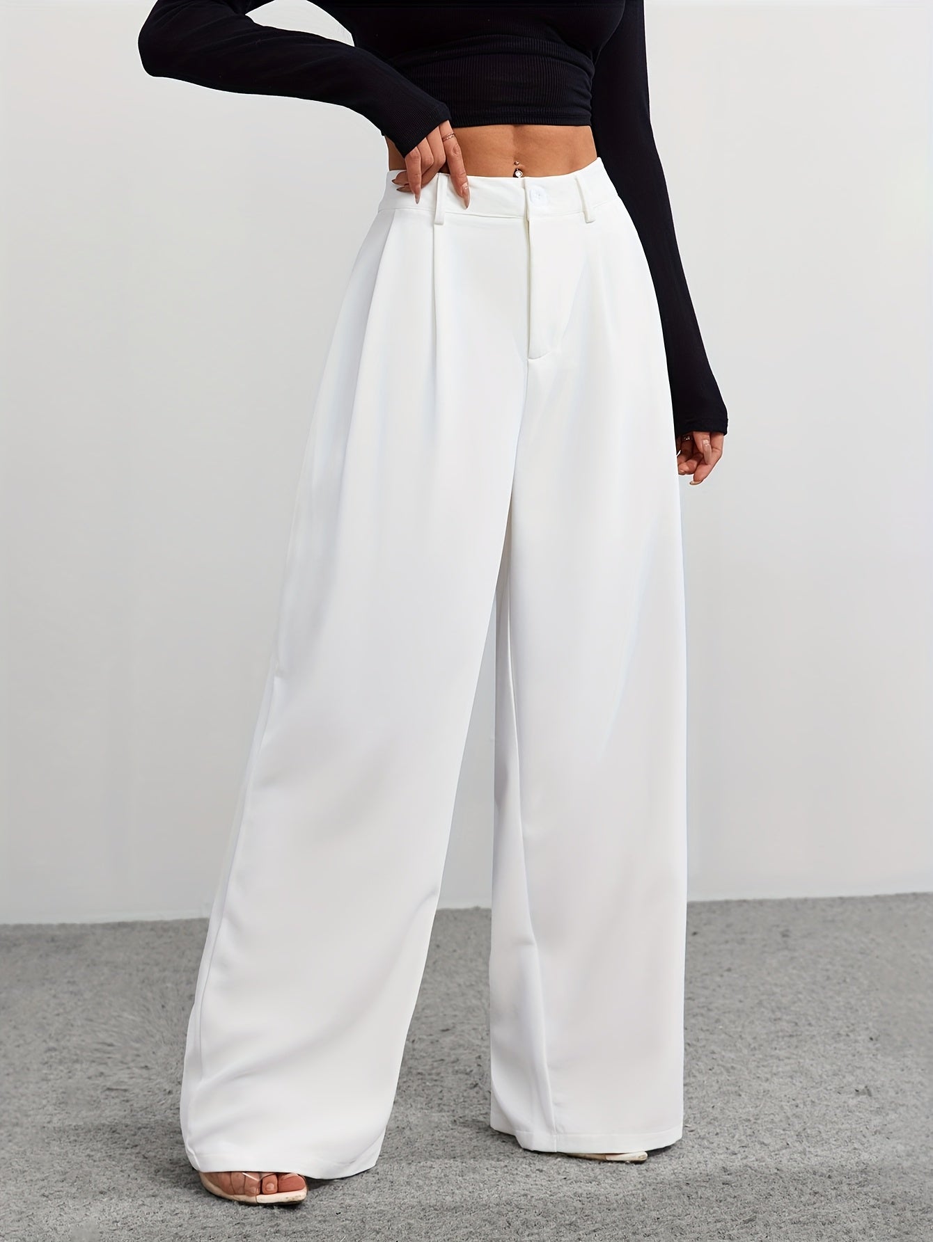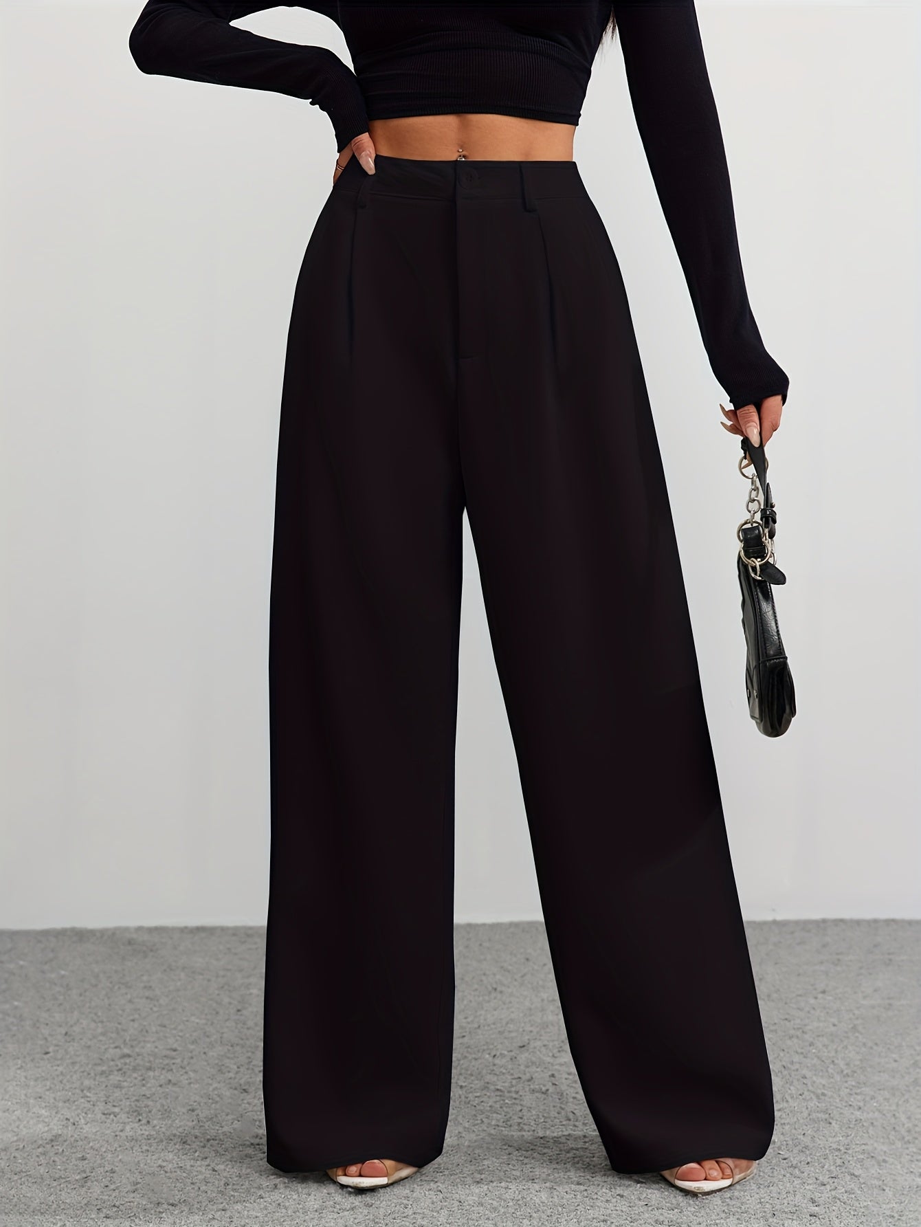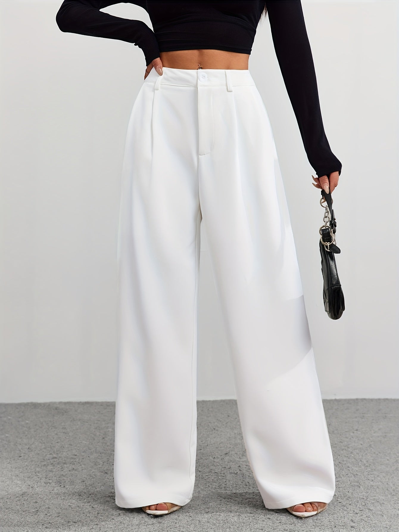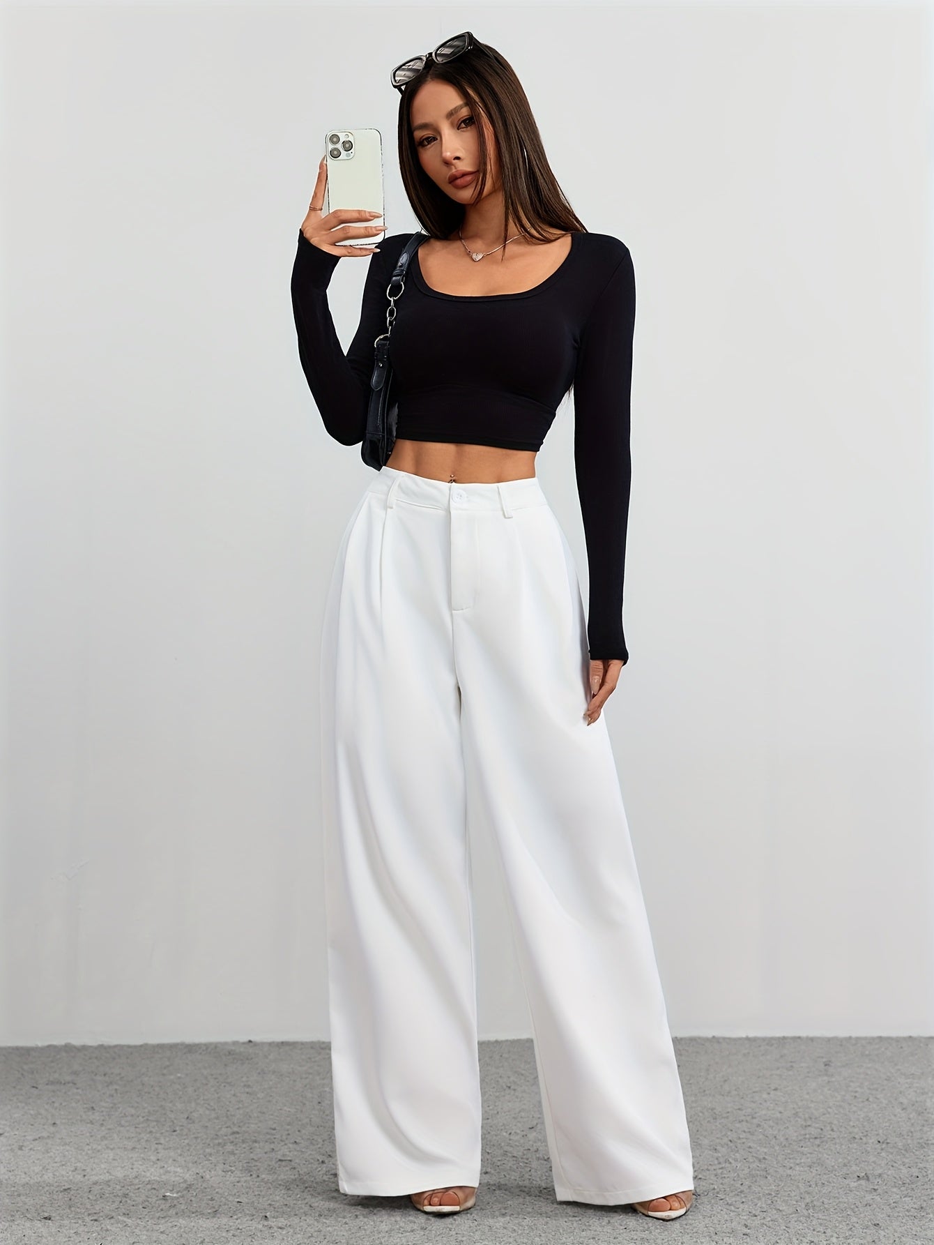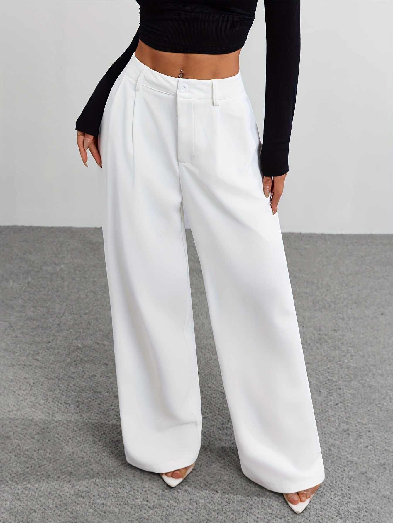 Կանացի առօրյա ուղիղ երկար տաբատ գարնան և ամառի համար՝ գոտկատեղով: