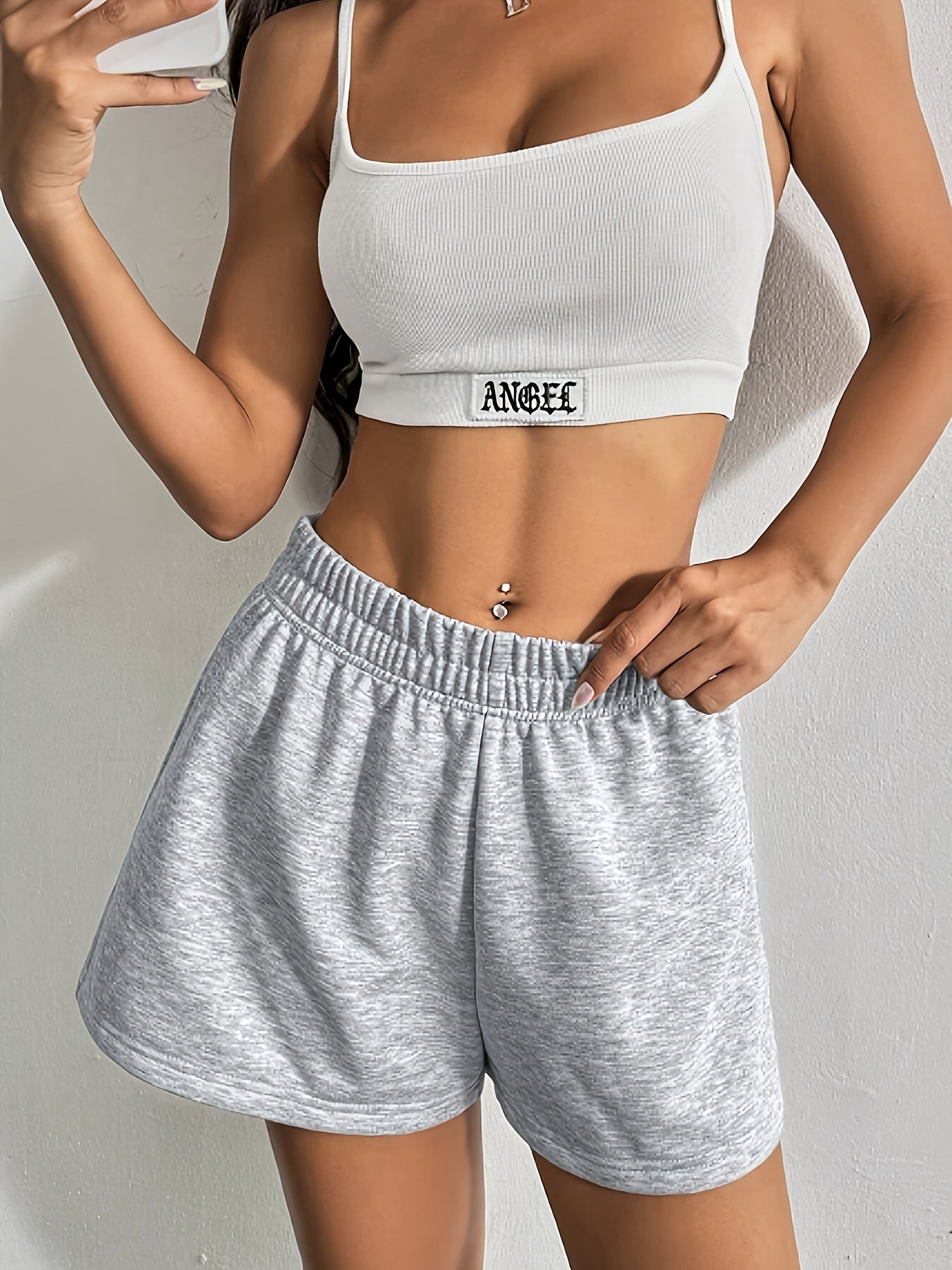 Կանացի շքեղ Heather Grey պատահական շորտեր - առաձգական գոտի, պոլիեսթեր, լվացվող մեքենայում, իդեալական սպորտի և ժամանցի համար, հանգստի համար հագուստ|առաձգական շորտեր|հարթ մակերևույթի գործվածք