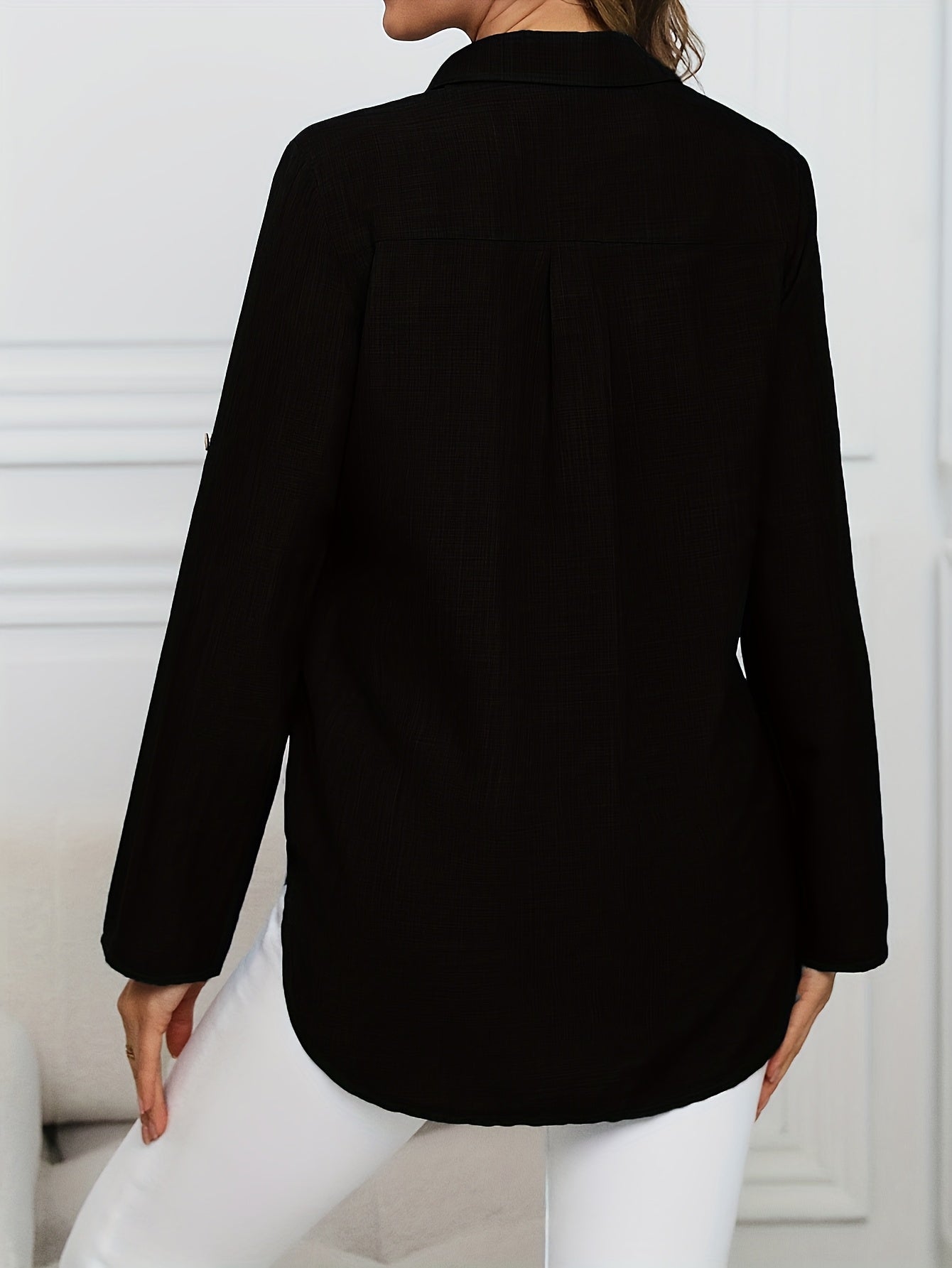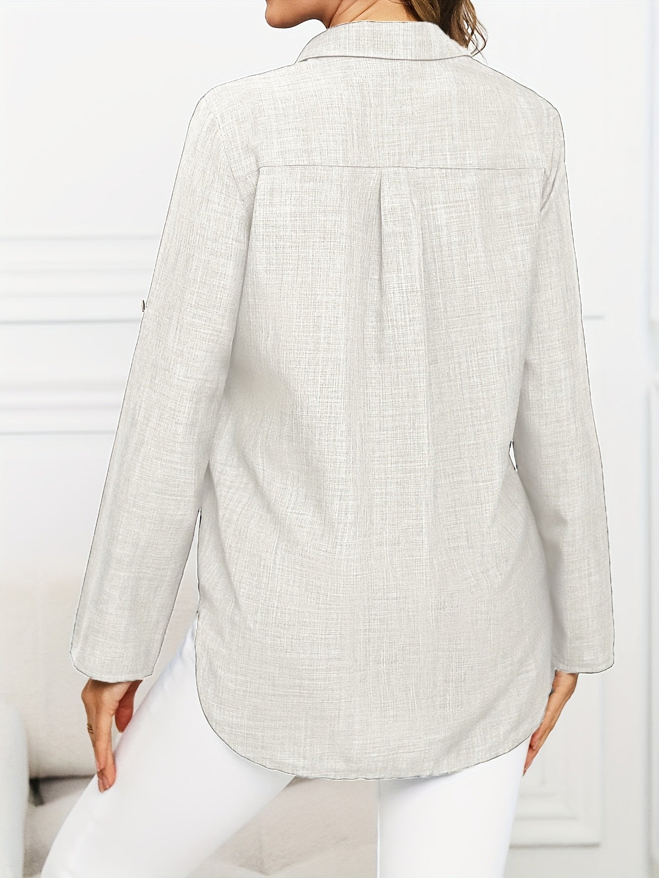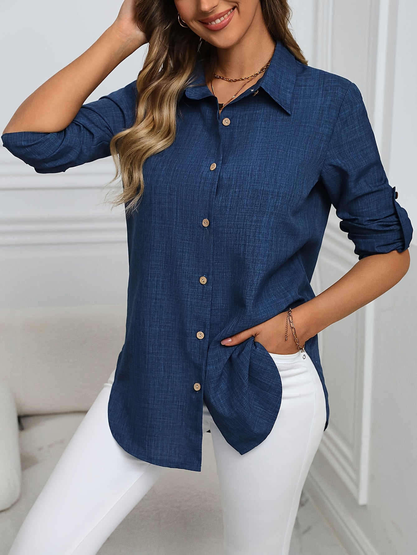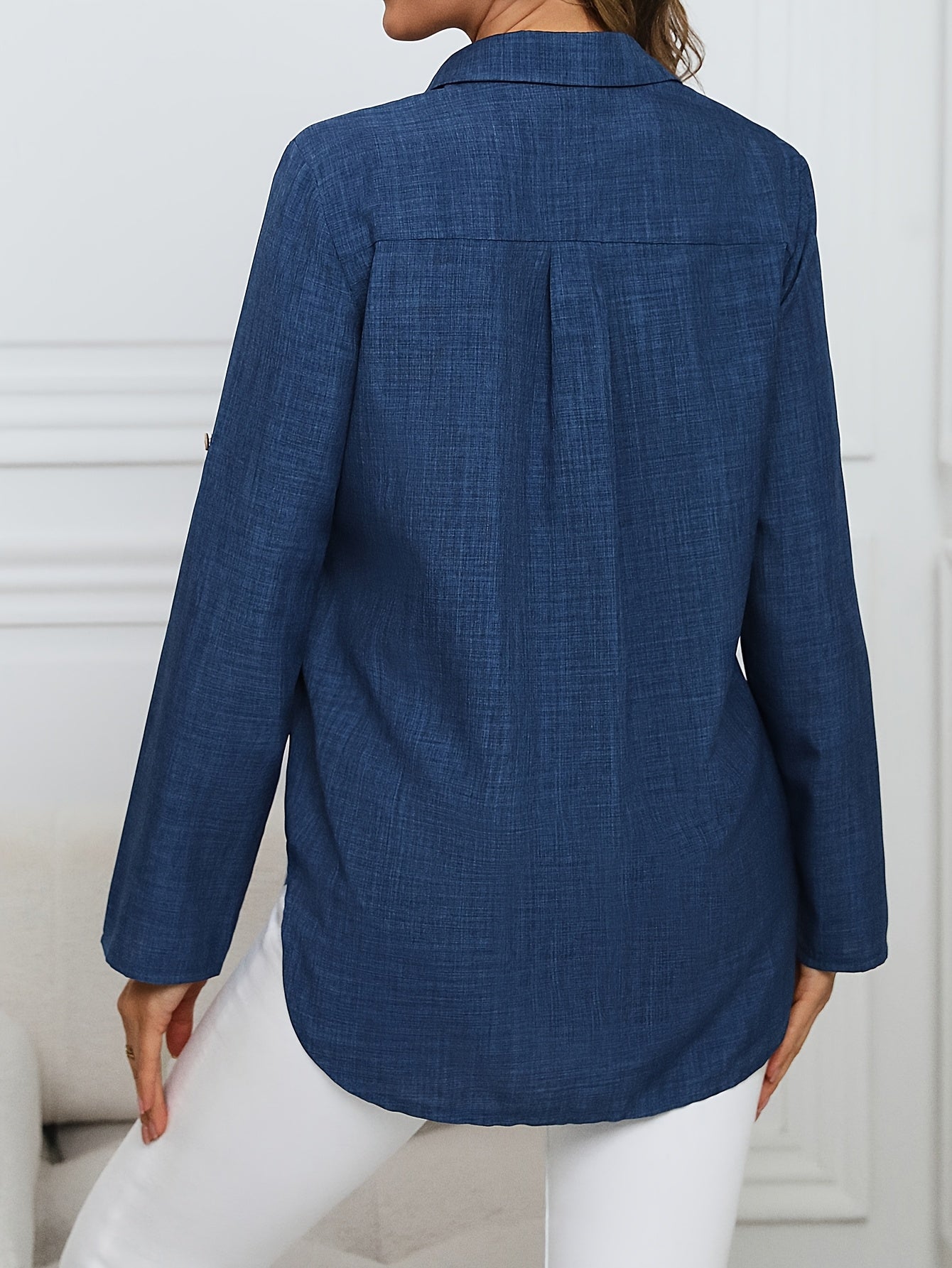 Կանացի դասական կապույտ ջինսե տեսք ունեցող վերնաշապիկ - պոլիեսթեր, կոճակով վերնաշապիկով, օձիքով, լվացվում է մեքենայով - Իդեալական է գարնան/աշունի համար, ամենօրյա վերնաշապիկի համար
