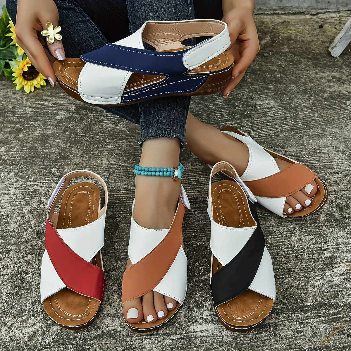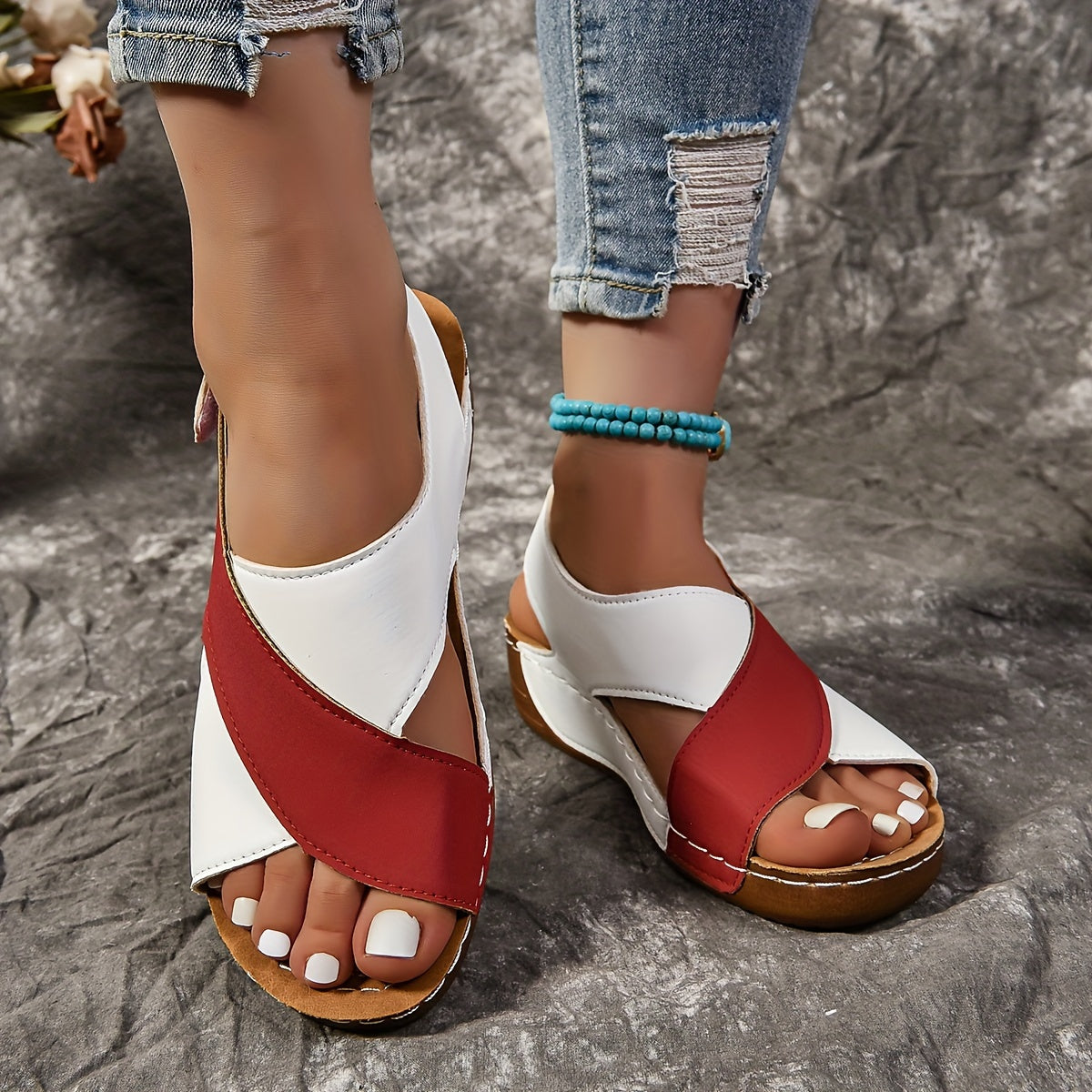 Կանացի Colorblock-ի գերժամանակակից սանդալներ, պլատֆորմի փափուկ ներբան քայլելու կոշիկներ, Comfort Crisscross Wedge Beach կոշիկներ