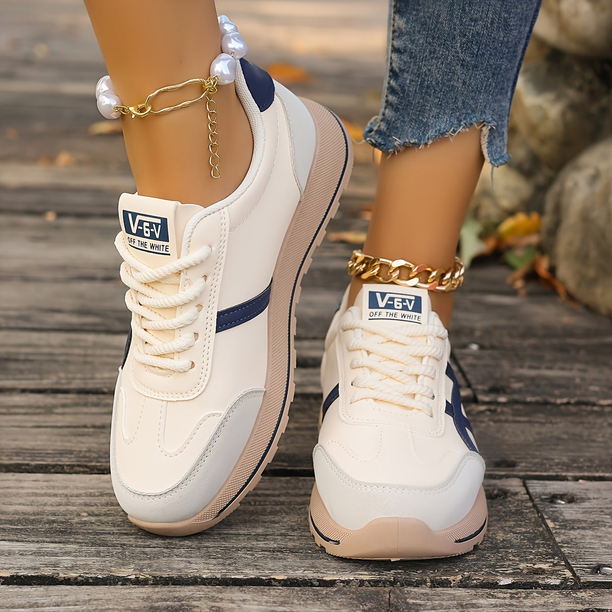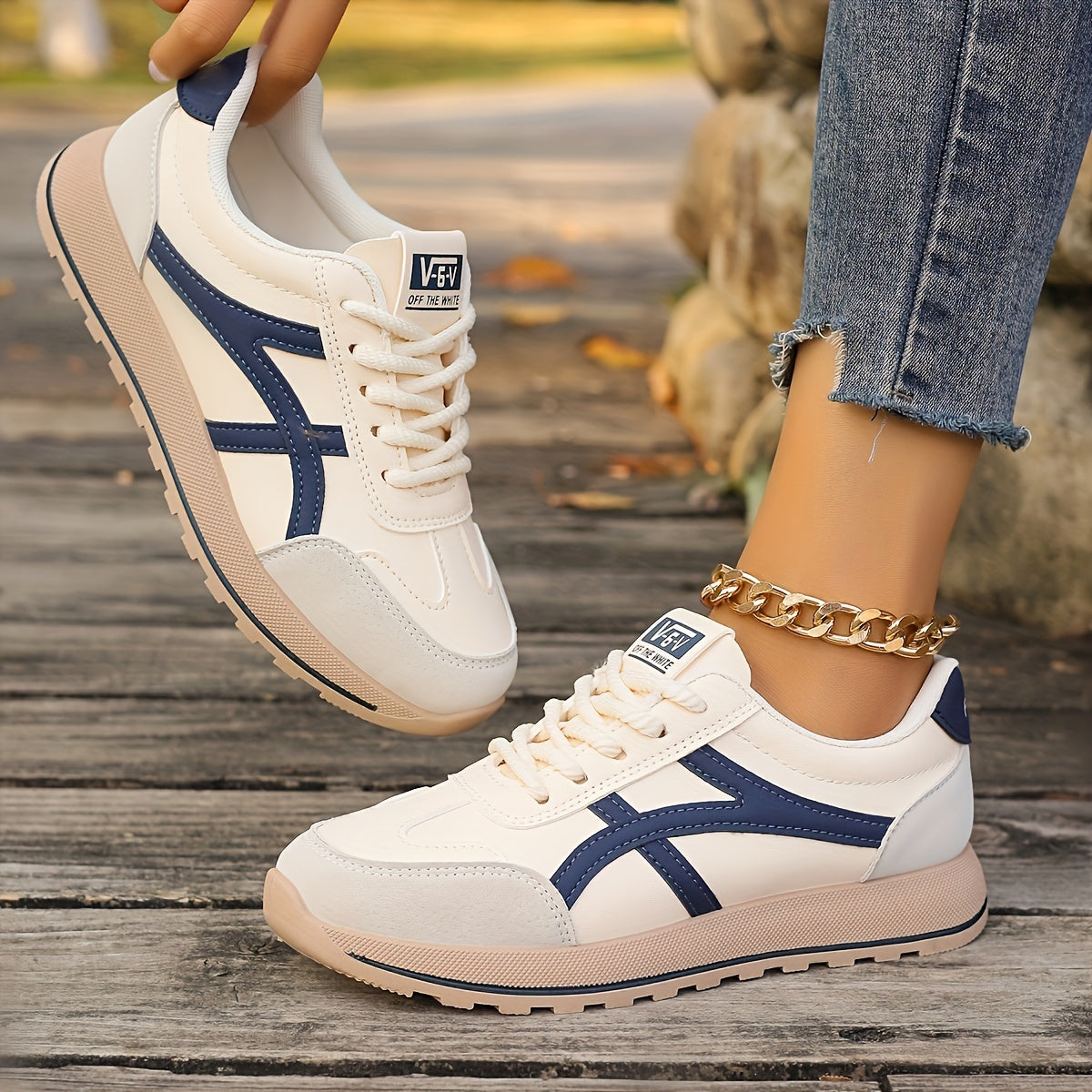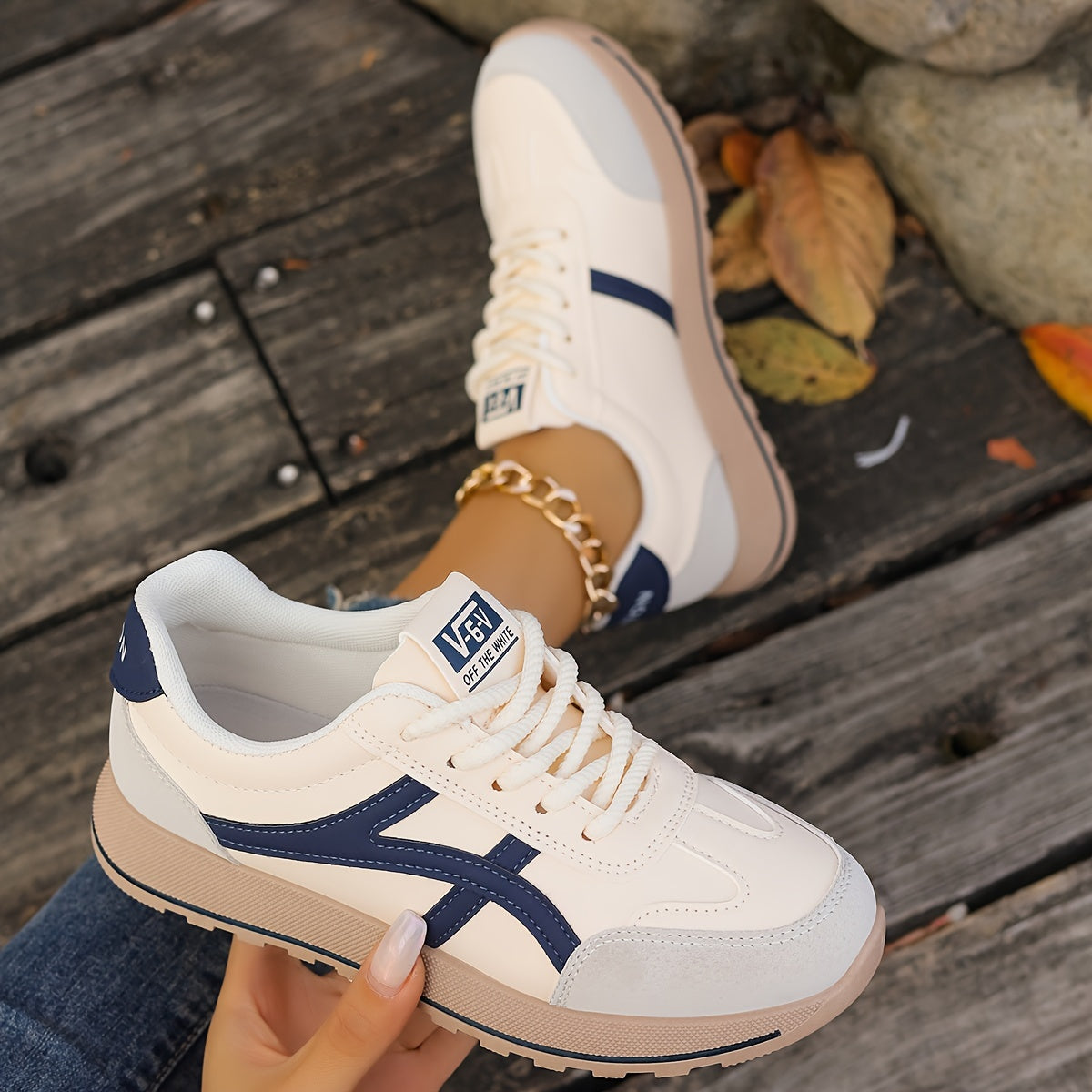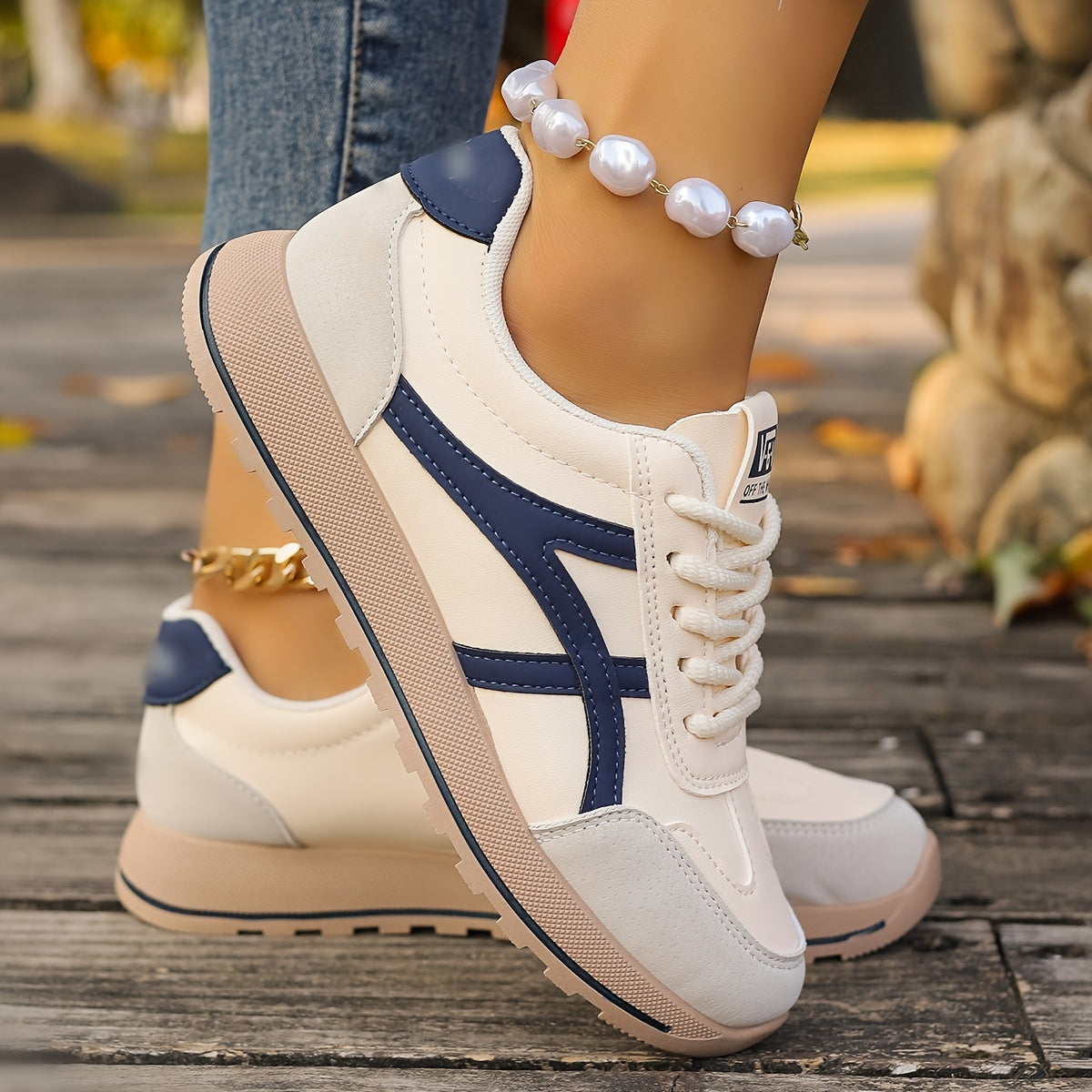 Կանացի Colorblock-ի նորաձև սպորտային կոշիկներ, ժանյակավոր փափուկ ներբան հարթակի ամենօրյա կոշիկներ, ցածր վերնամասով քայլելու հարմարավետ կոշիկներ