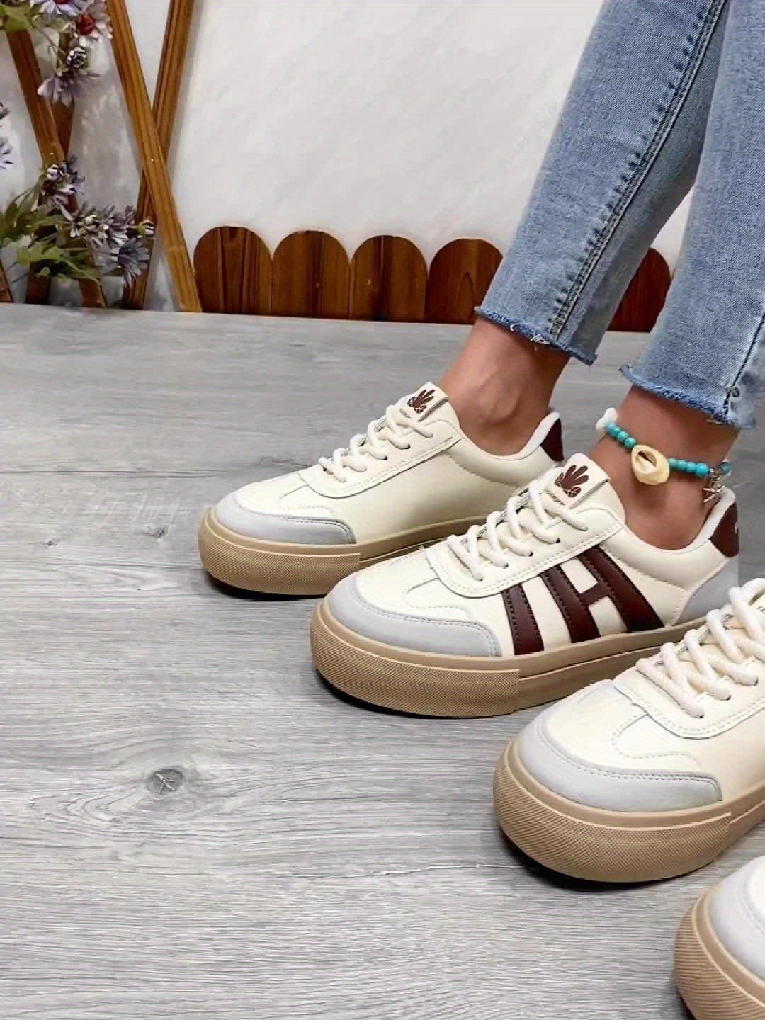 Կանացի Colorblock-ի գերժամանակակից սպորտային կոշիկներ, ժանյակավոր տակացու փափուկ հարթակ Skate կոշիկներ, բազմակողմանի ցածր վերնամասով կոշիկներ