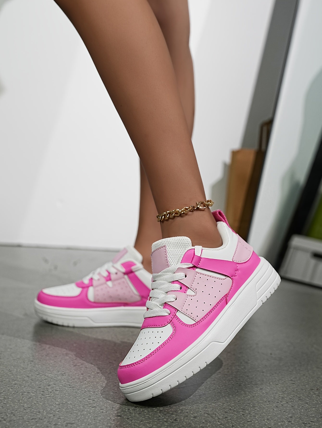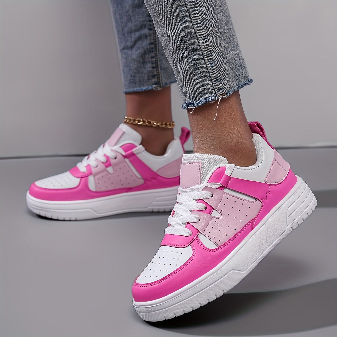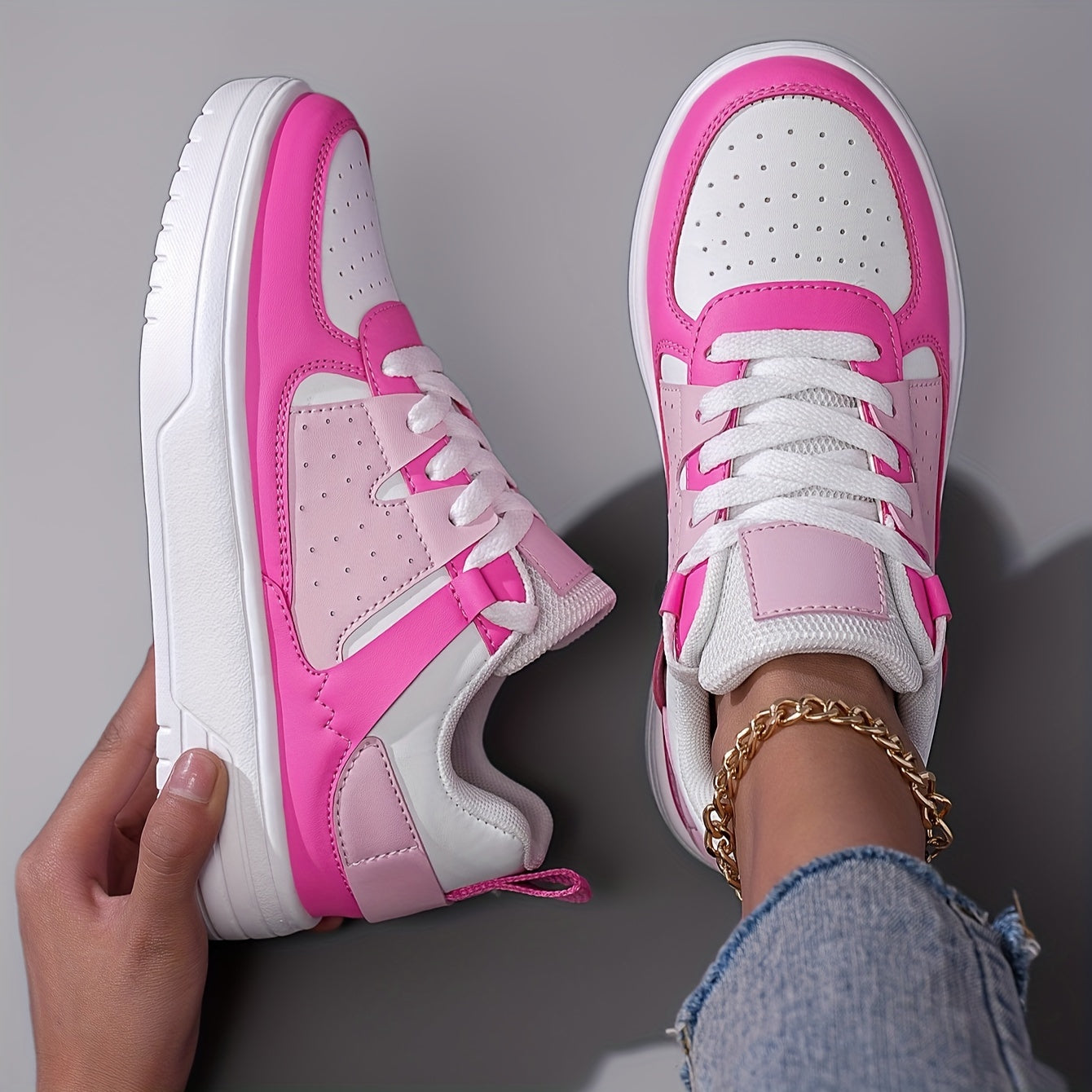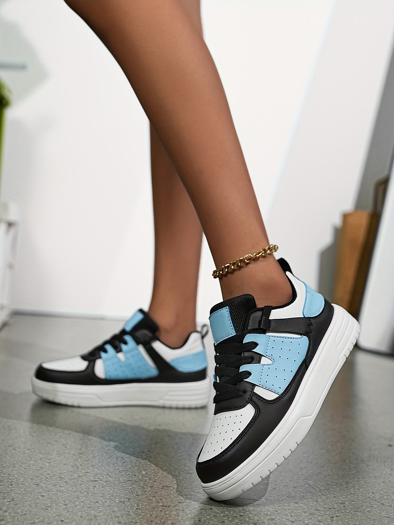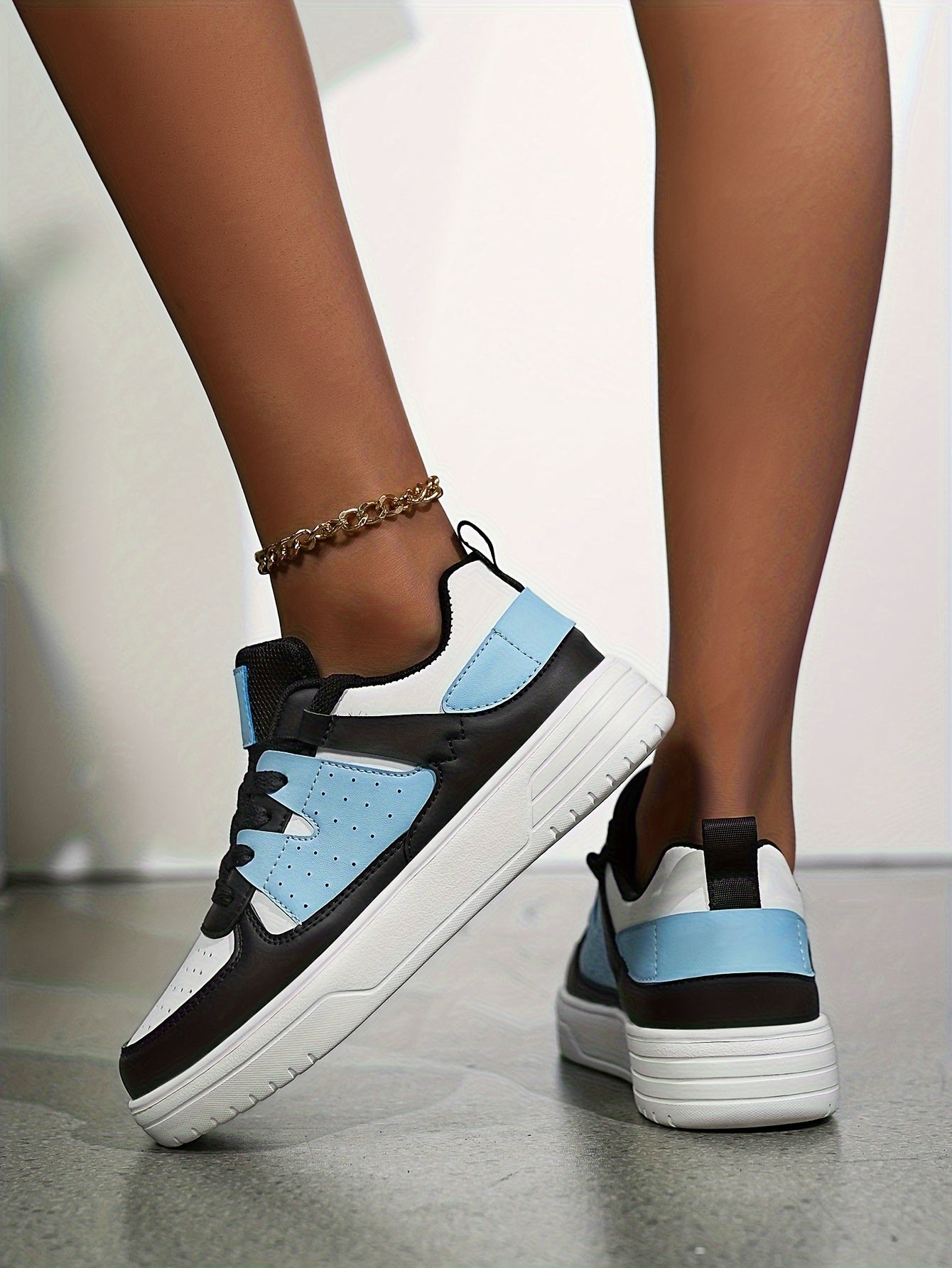 Կանացի կոնտրաստ գունավոր չմուշկներ, սովորական ժանյակավոր բացօթյա կոշիկներ, հարմարավետ ցածր վերնամասով սպորտային կոշիկներ աշնանային