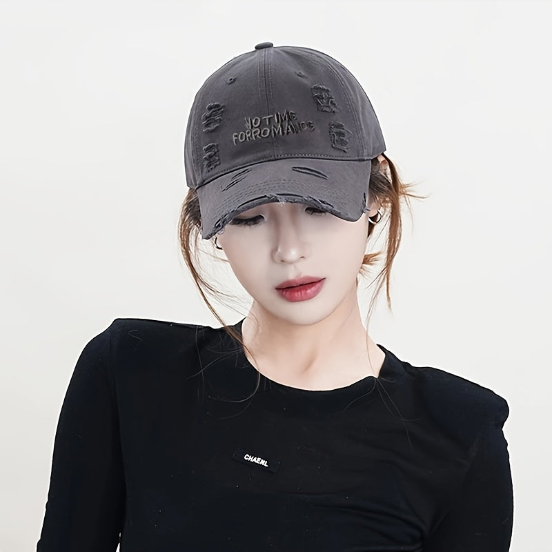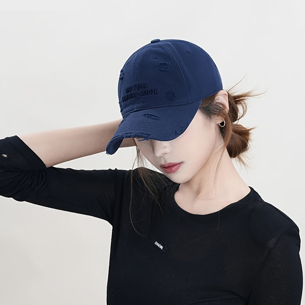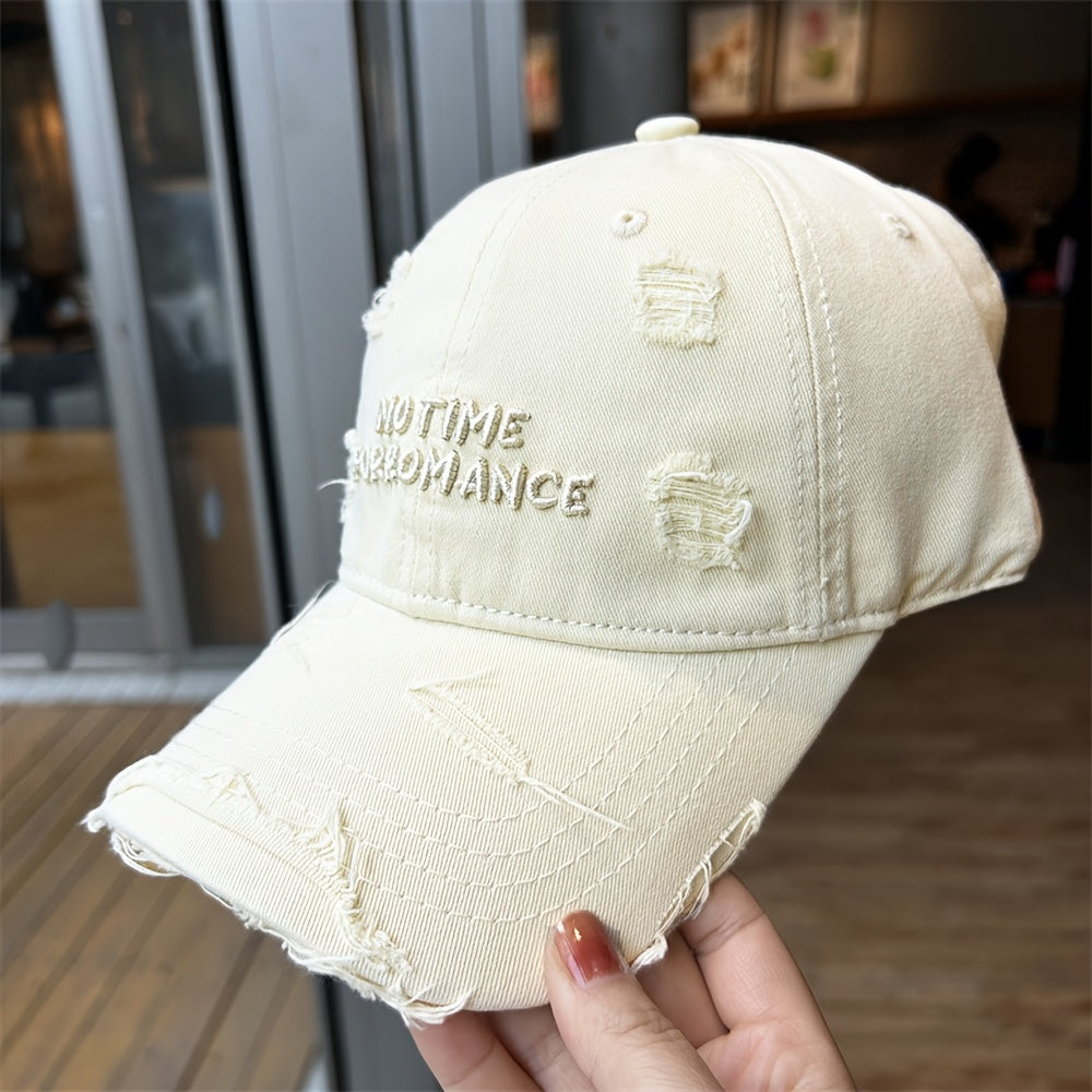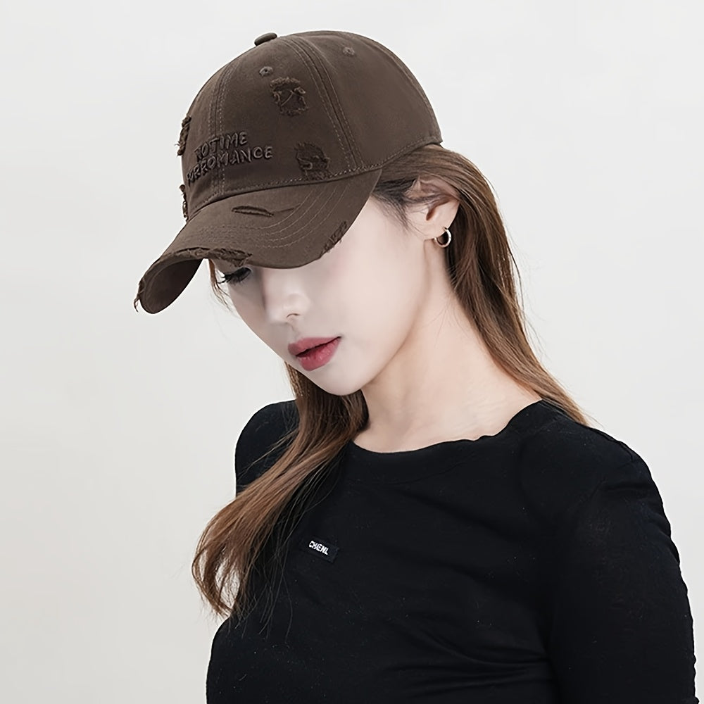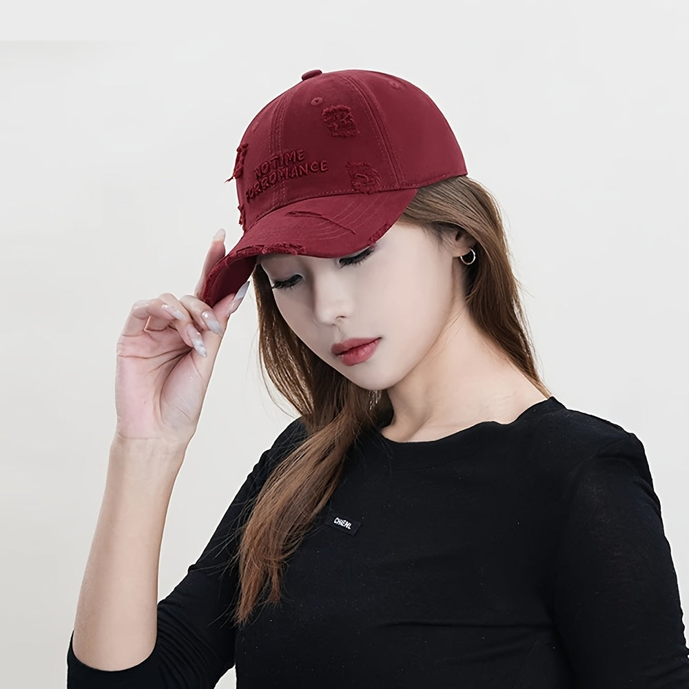 Women's Distressed Embroidered Baseball Cap - Adjustable Lightweight Sun Hat with Wide Brim for Outdoor Travel, Casual Outings & Daily Use, Machine Washable, Outdoor Headwear, Trendy Baseball Cap, Rustic Appeal, Summer Access
