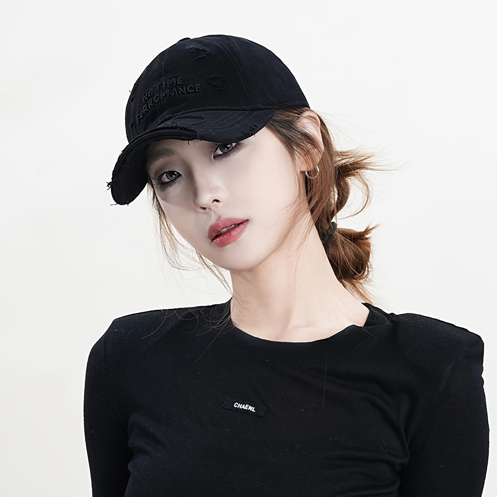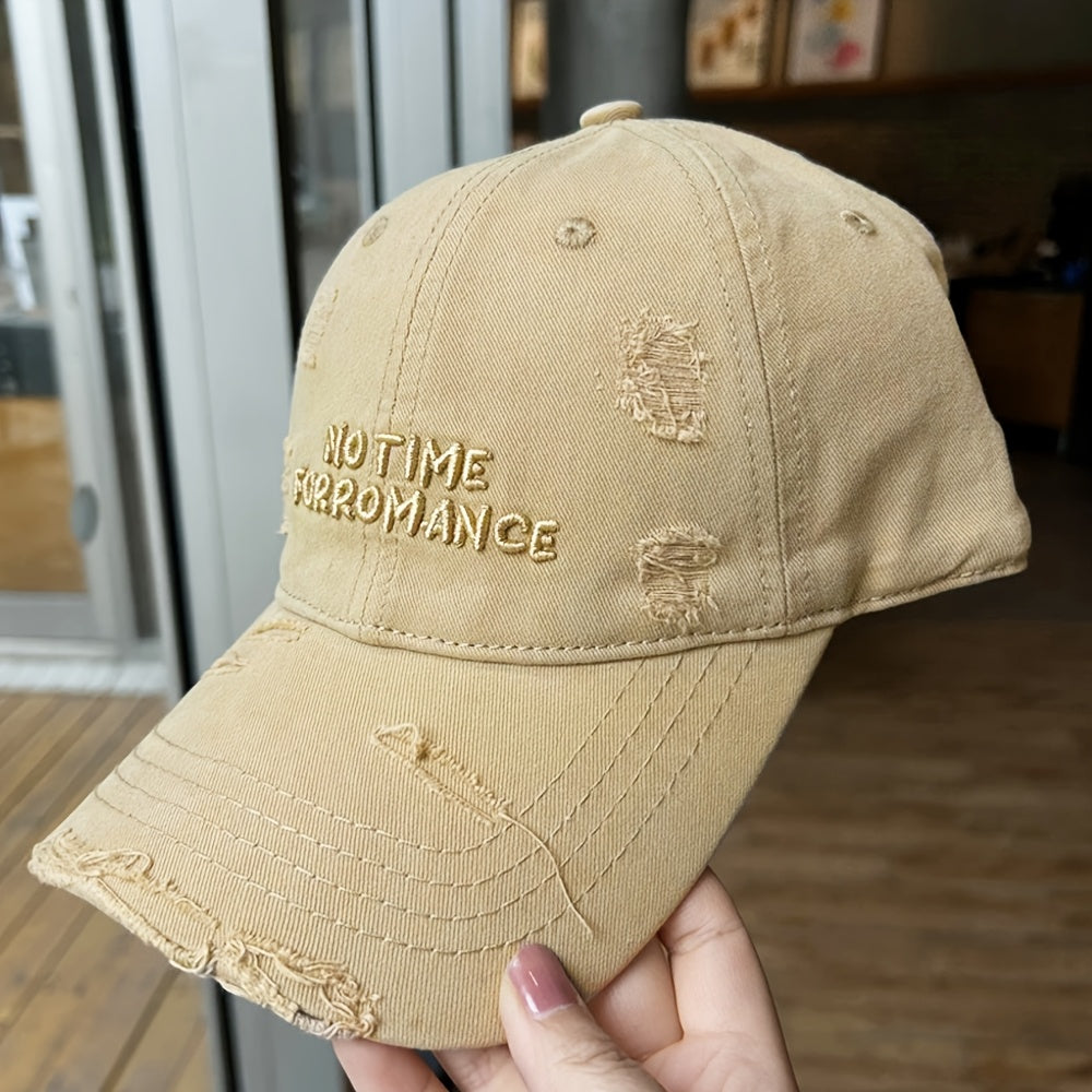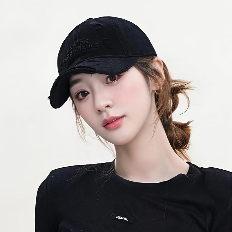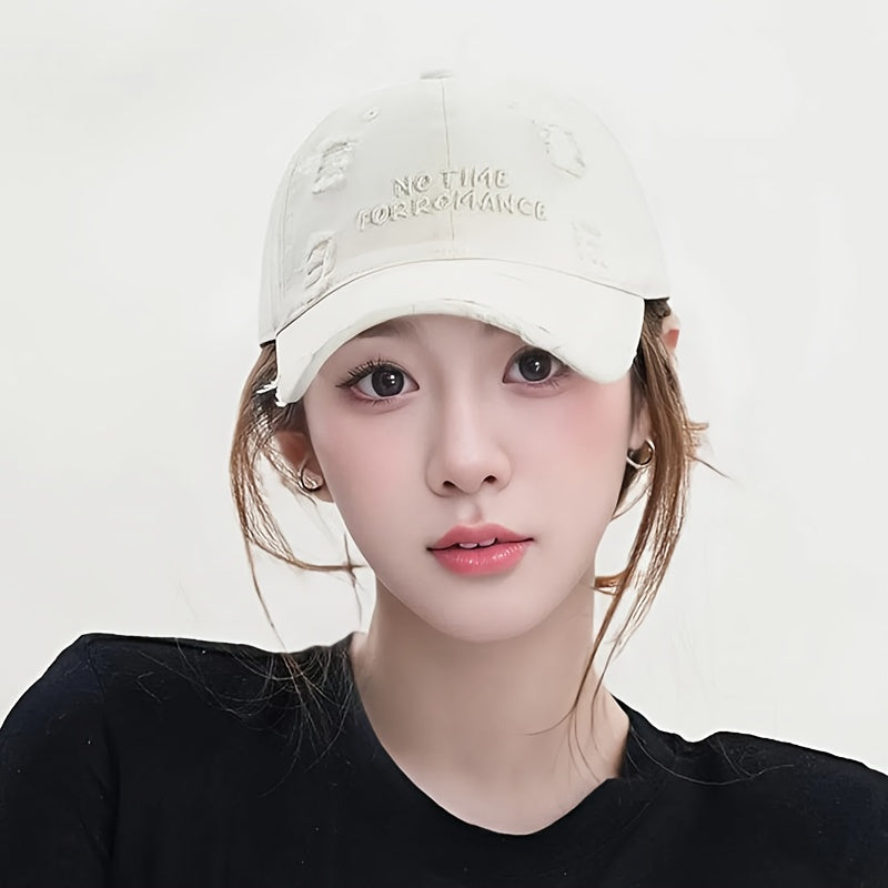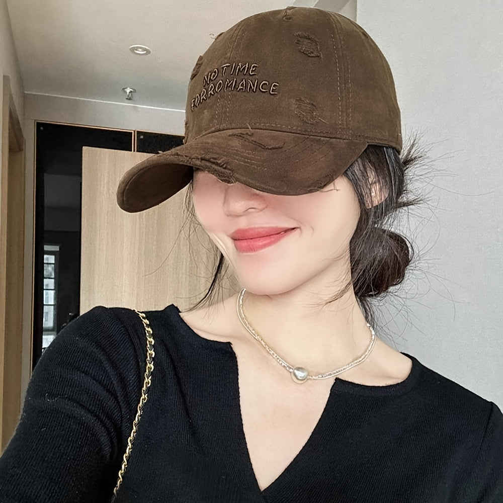 Women's Distressed Embroidered Baseball Cap - Adjustable Lightweight Sun Hat with Wide Brim for Outdoor Travel, Casual Outings & Daily Use, Machine Washable, Outdoor Headwear, Trendy Baseball Cap, Rustic Appeal, Summer Access