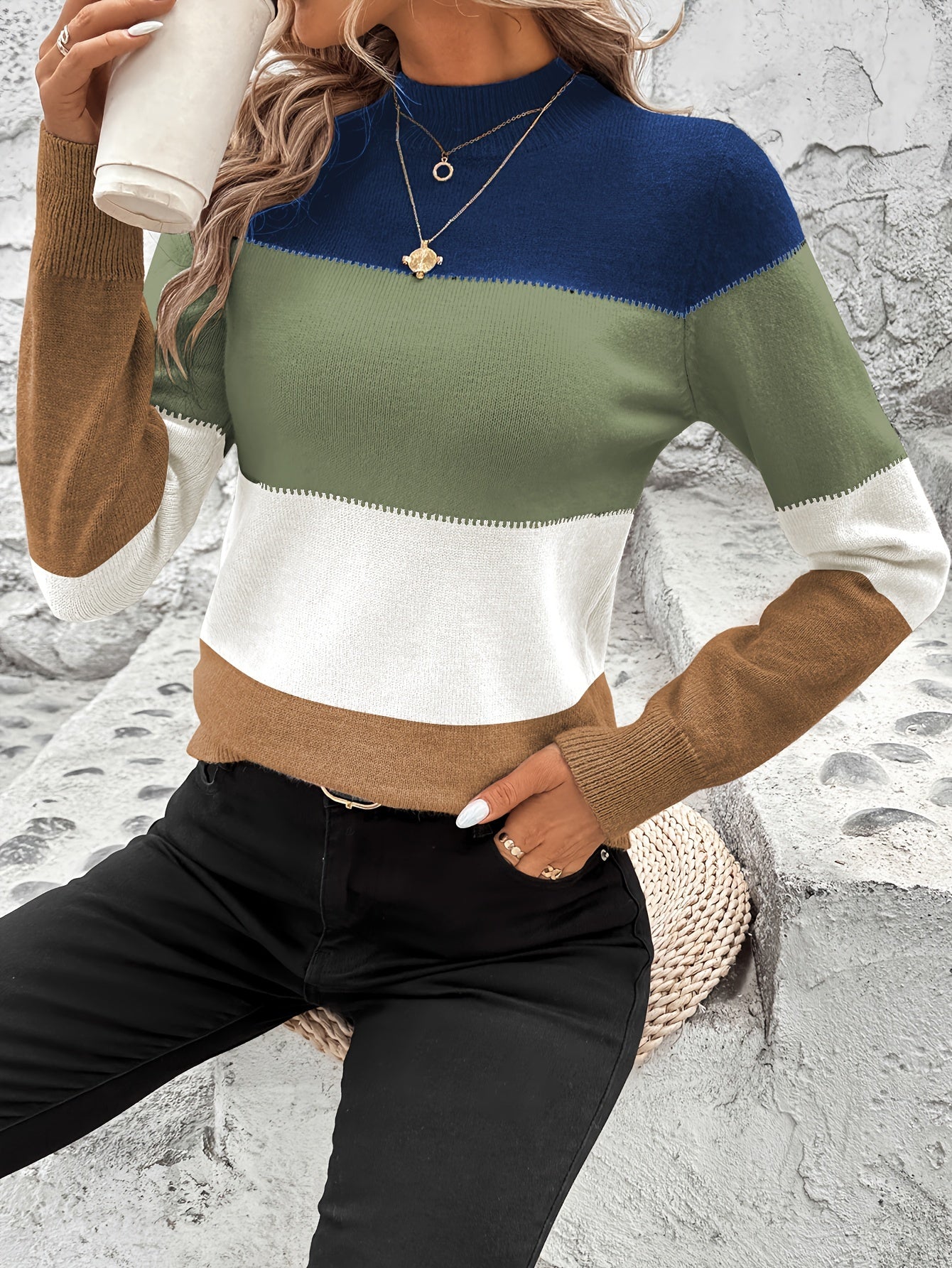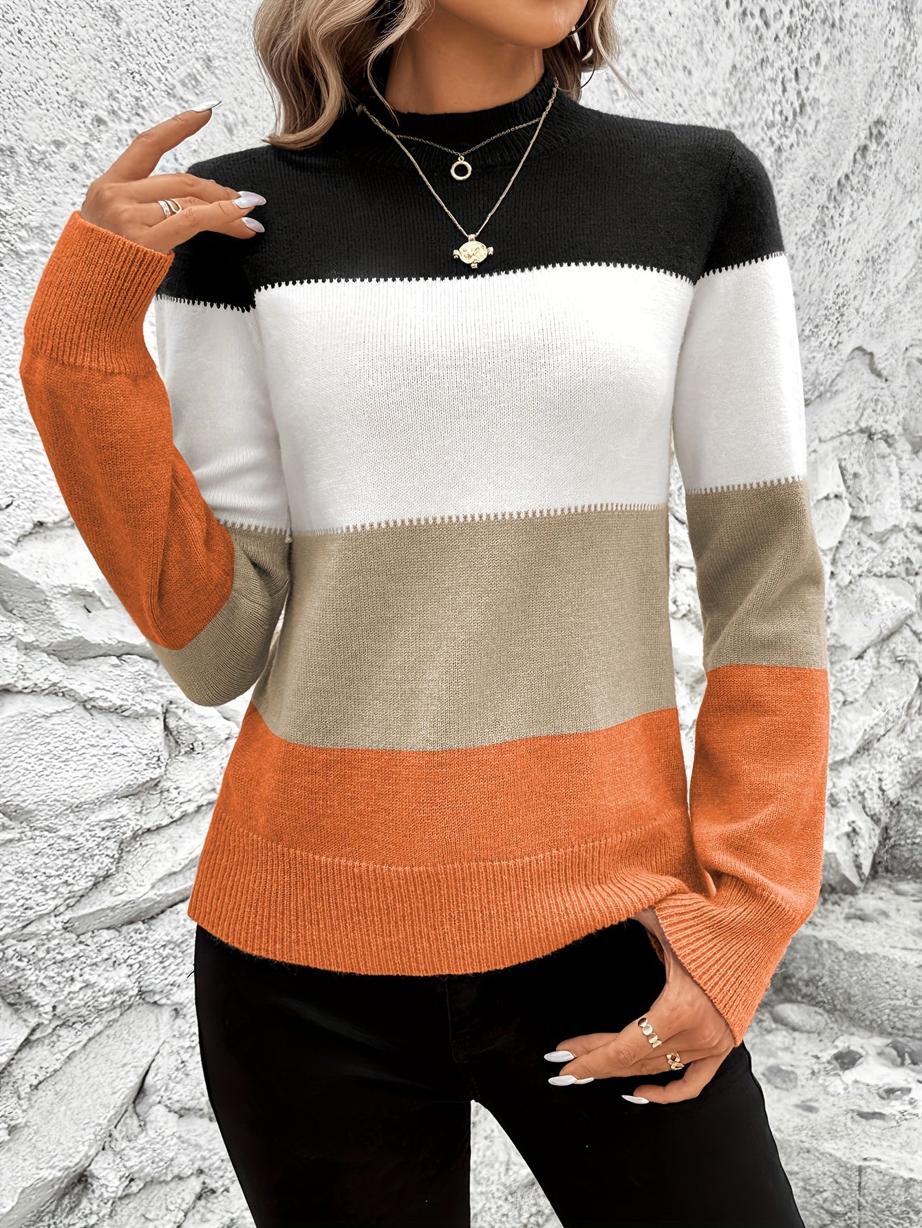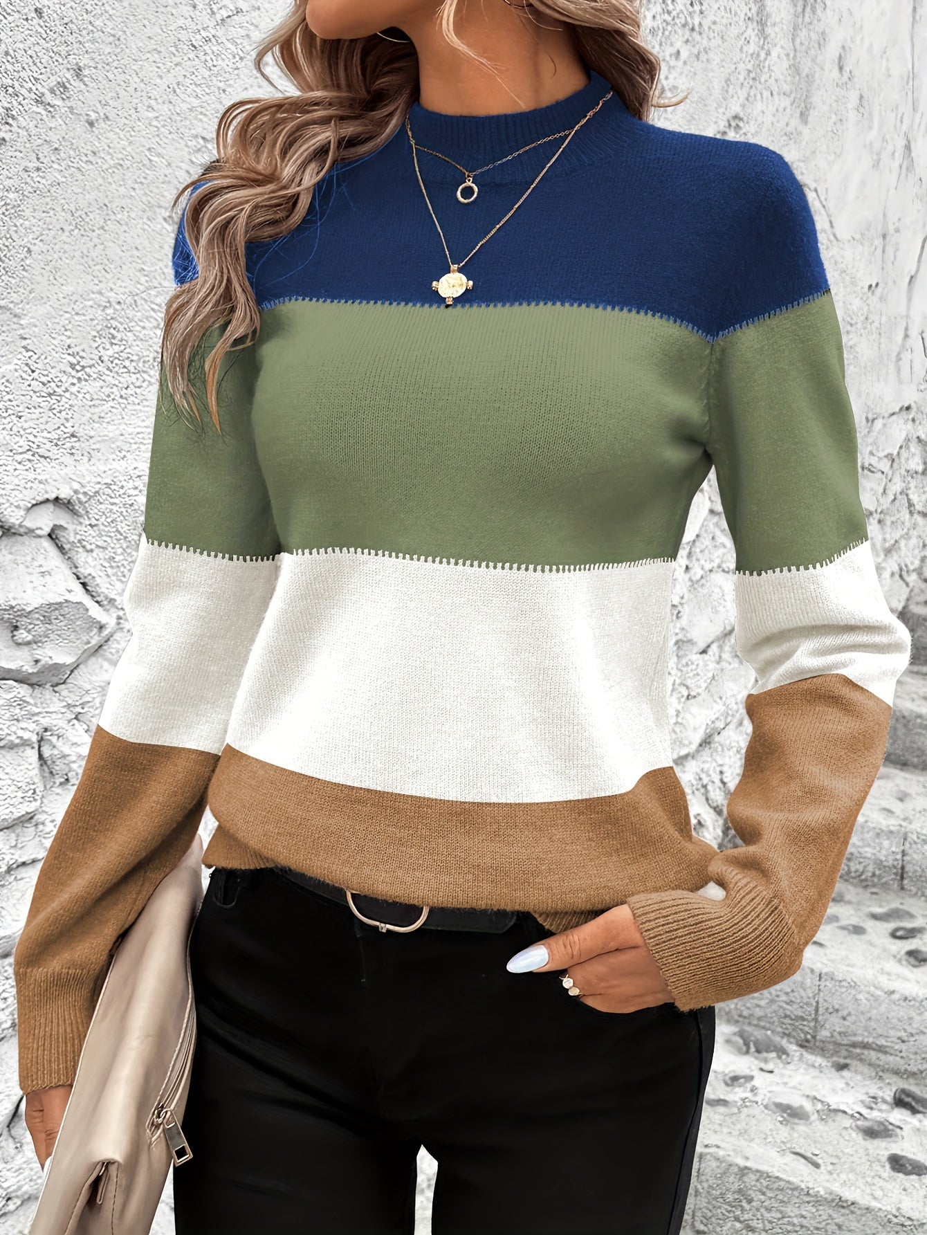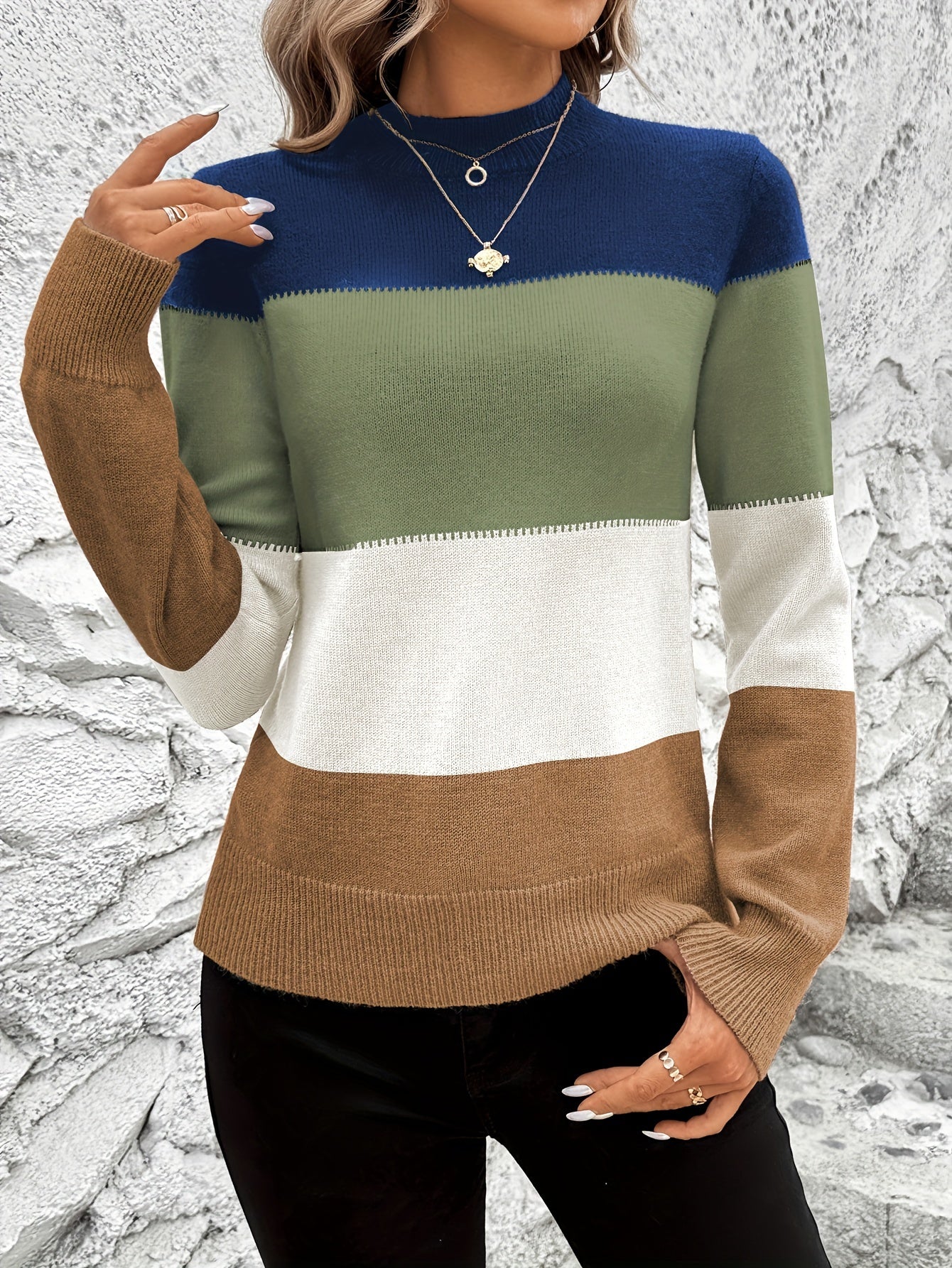 Կանացի էլեգանտ Color Block Crew պարանոցի սվիտեր՝ երկարաթև, ձգվող ակրիլային խառնուրդ, շերտավոր դետալներ, կատարյալ բոլոր սեզոնների համար