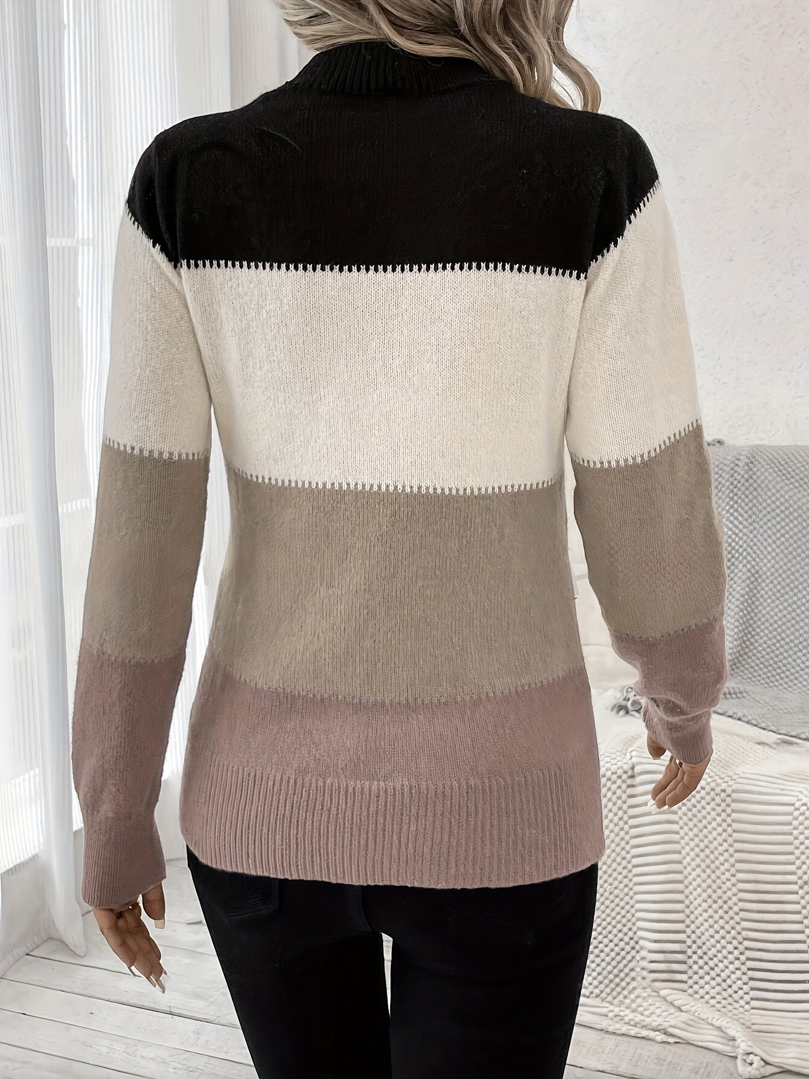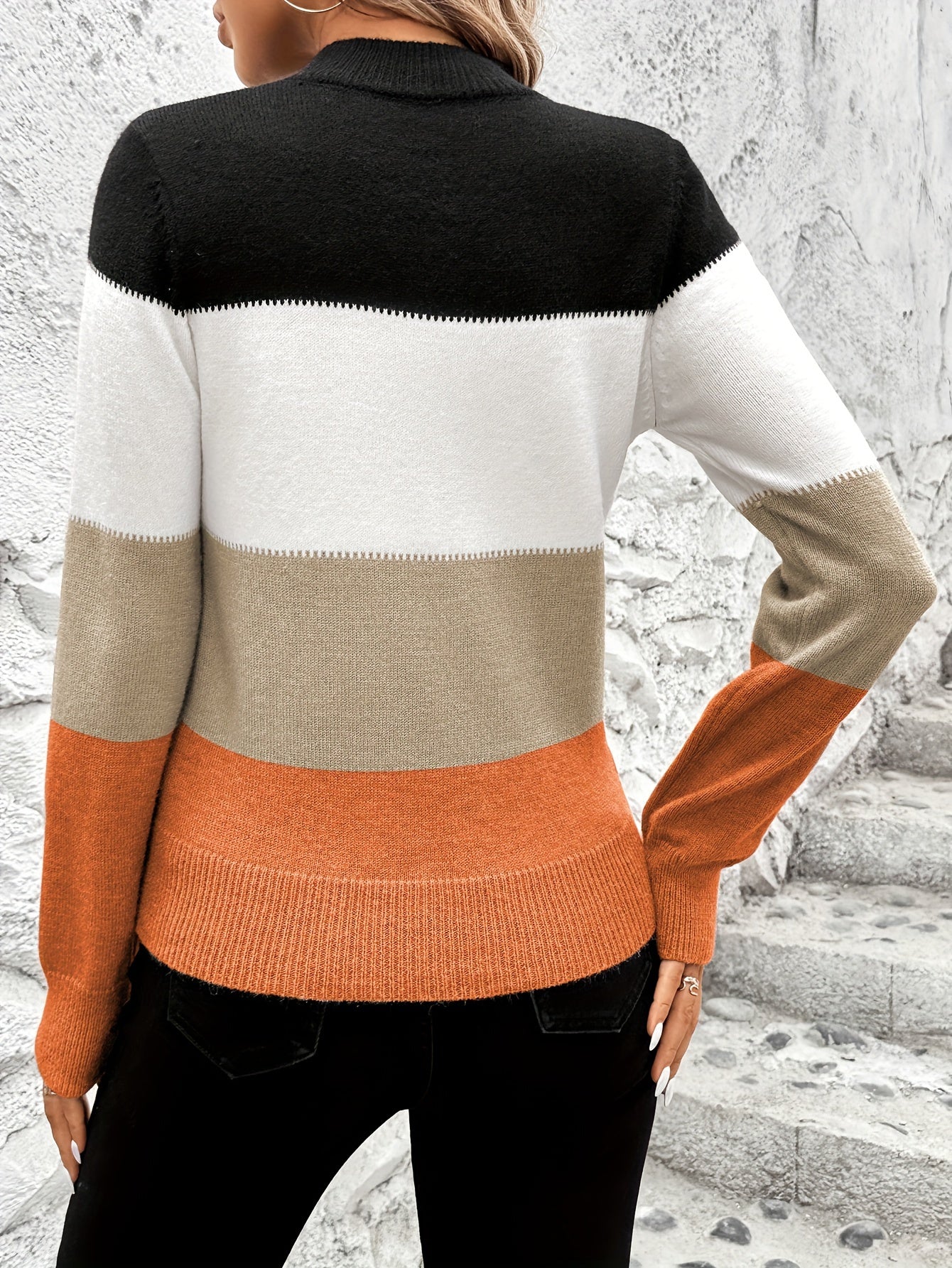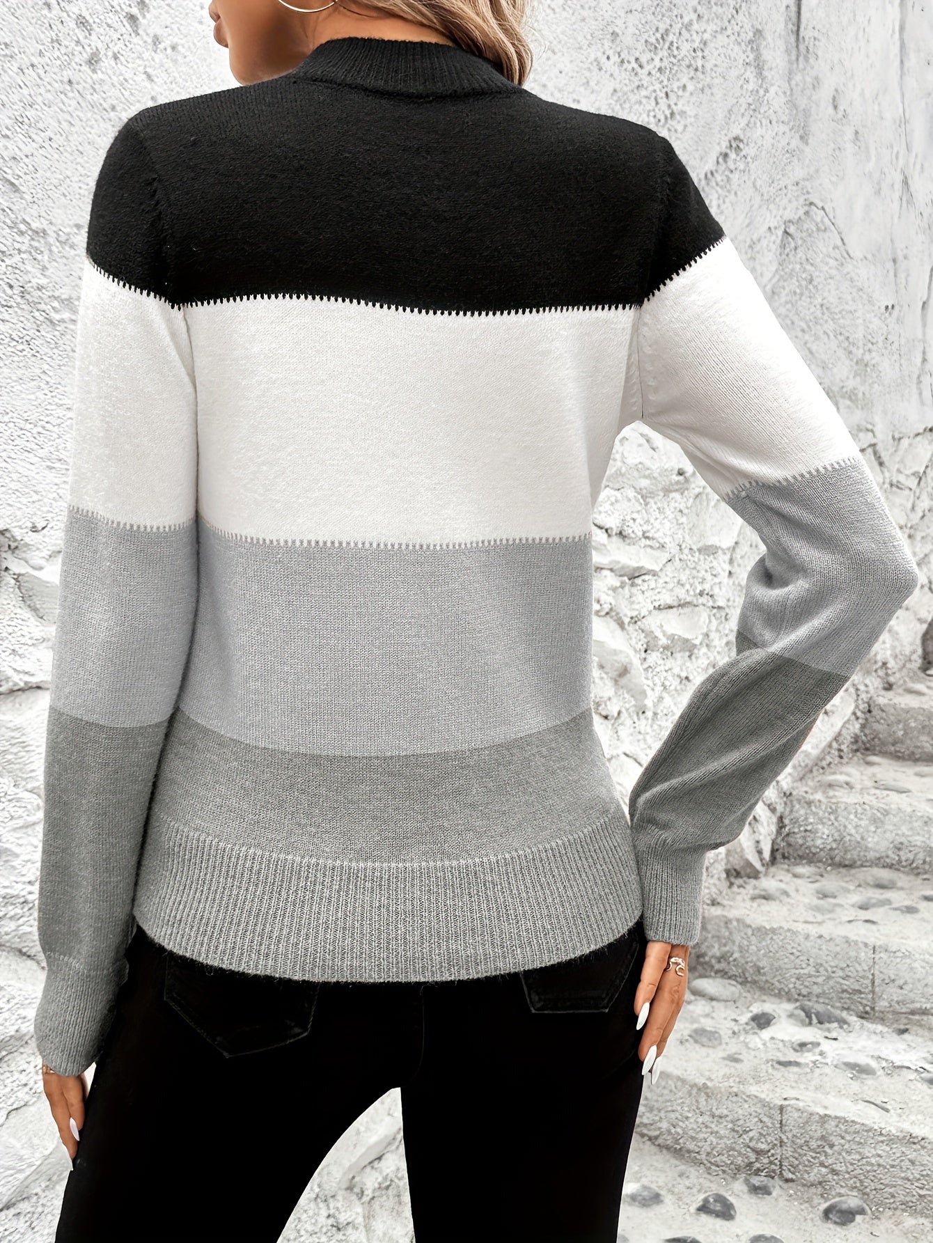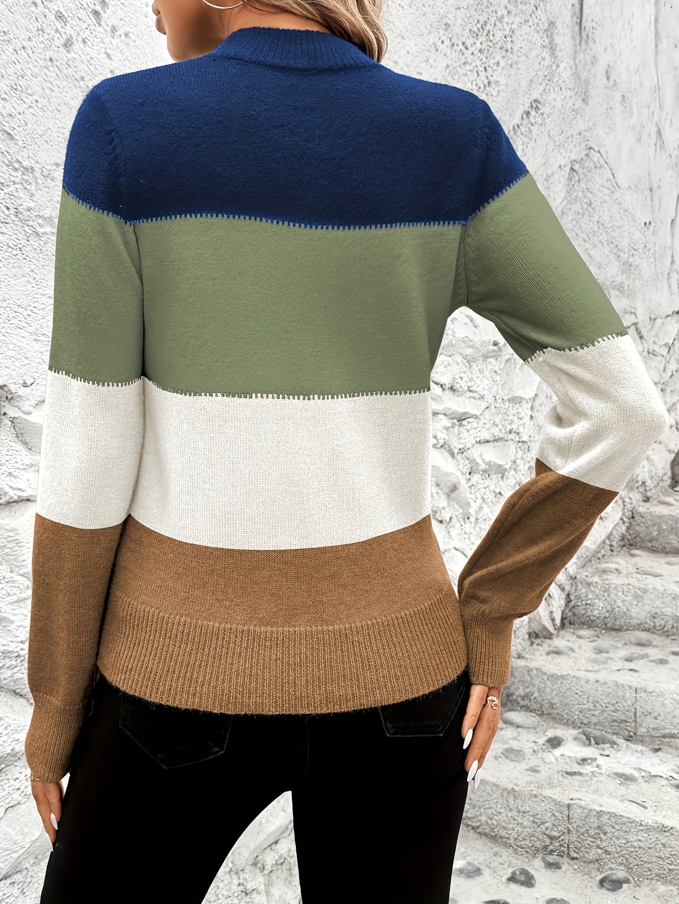 Կանացի էլեգանտ Color Block Crew պարանոցի սվիտեր՝ երկարաթև, ձգվող ակրիլային խառնուրդ, շերտավոր դետալներ, կատարյալ բոլոր սեզոնների համար