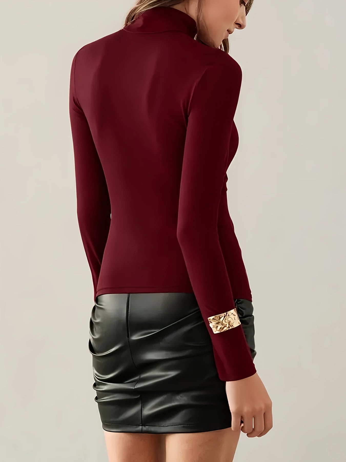 Կանացի էլեգանտ, բարձր վզնոցով երկար թևքերով մարզաշապիկ - փափուկ, ձգվող, միագույն վերնաշապիկ գարուն-ամառ-աշուն համար, բազմակողմանի, առօրյա և պաշտոնական հագուստի համար, լվացքի մեքենայով, սեզոնային նորաձևություն, նրբագեղ ոճ, հարմարավետ չափս, նորաձև բլուզ, F