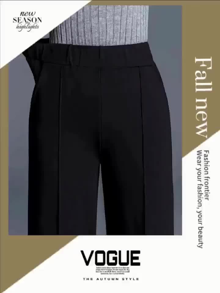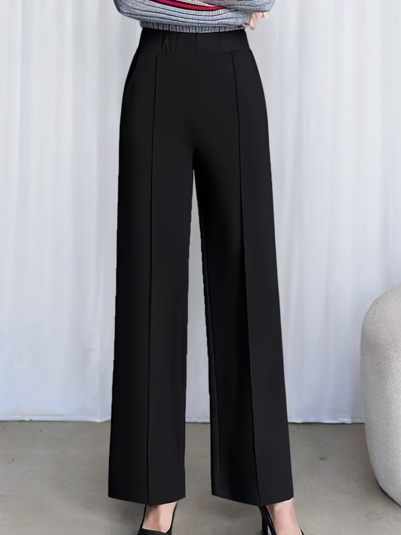 Կանացի էլեգանտ բարձր գոտկատեղով ձգվող տաբատ՝ թեք գրպաններով, լայն ոտքով ուղիղ տաբատ, իդեալական աշխատանքի և ամենօրյա ճանապարհորդության համար, պոլիեսթեր