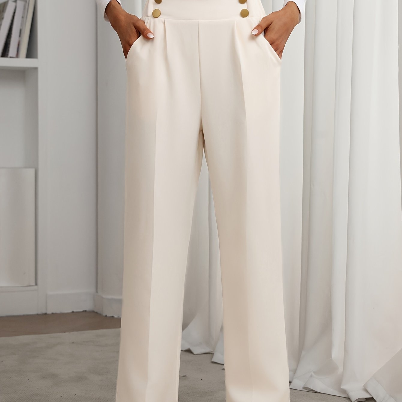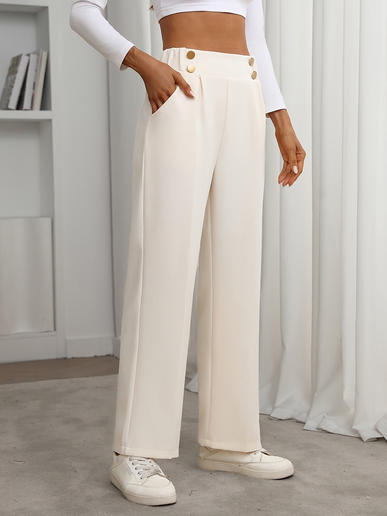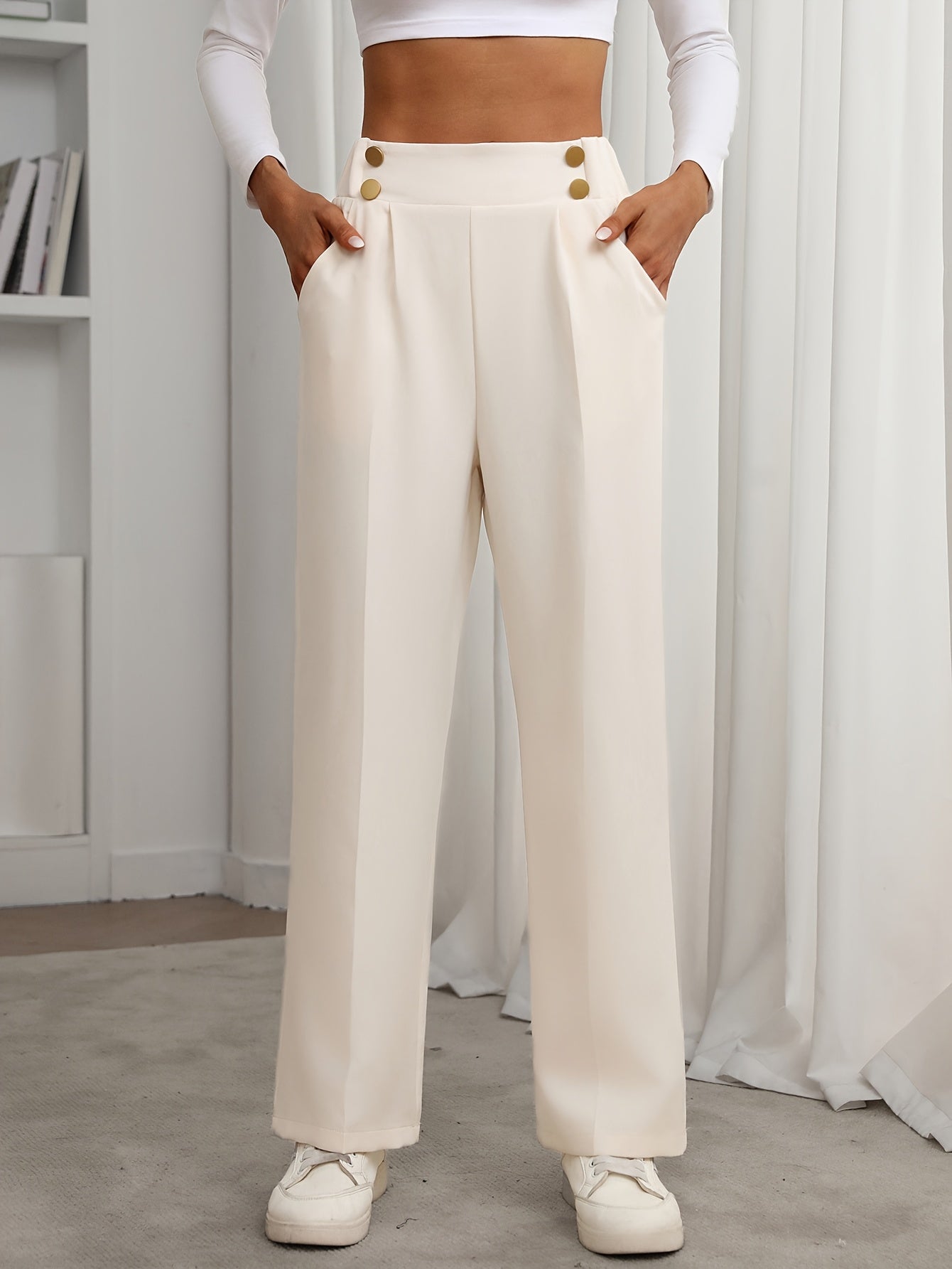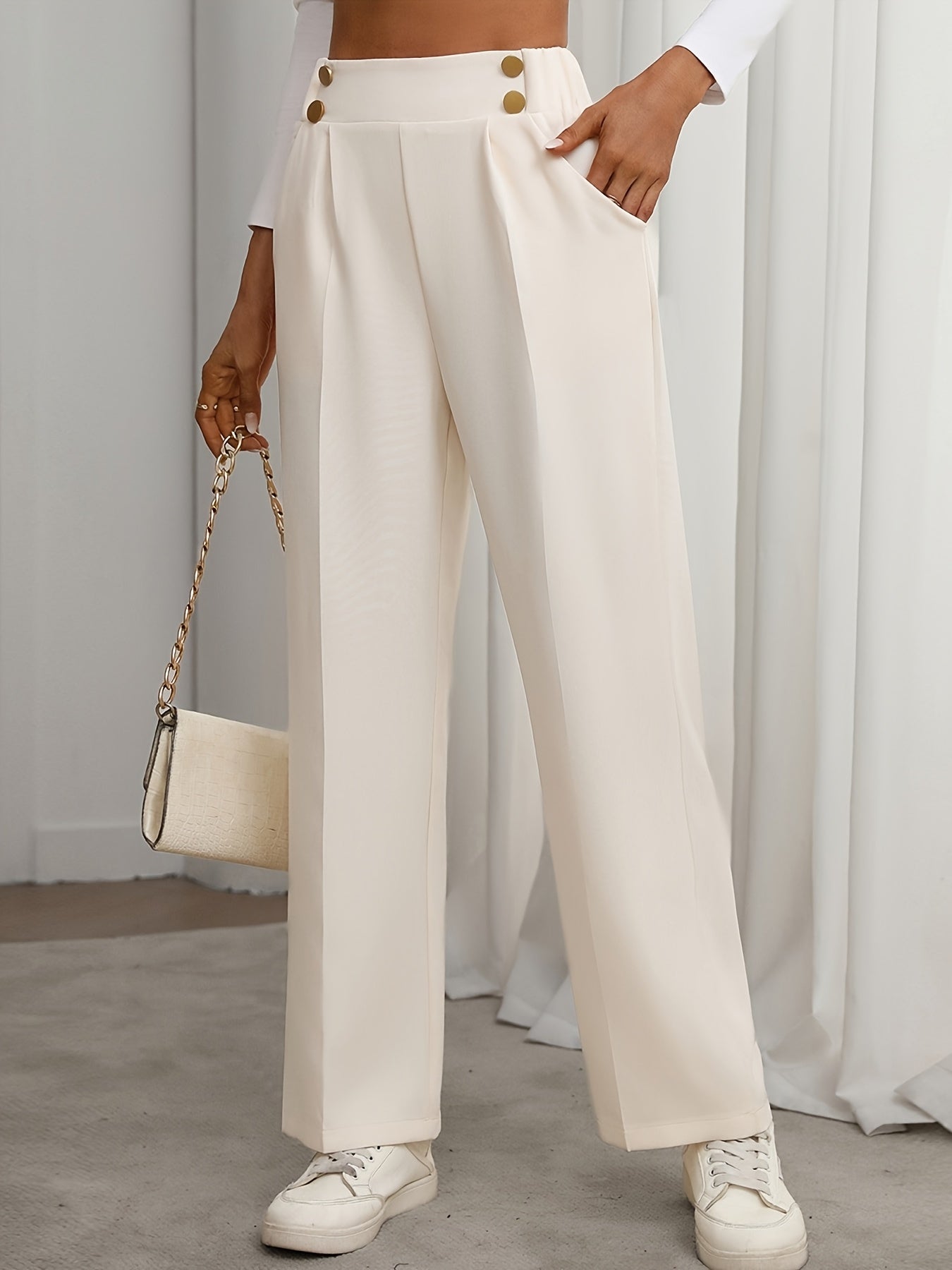 Կանացի էլեգանտ բարձր գոտկատեղով լայն ոտքերով տաբատ, թեթև կրեմ պոլիեսթեր, սովորական շքեղ գրասենյակային ուղիղ տաբատ՝ կրկնակի կրծքով կոճակներով, կանացի տաբատ