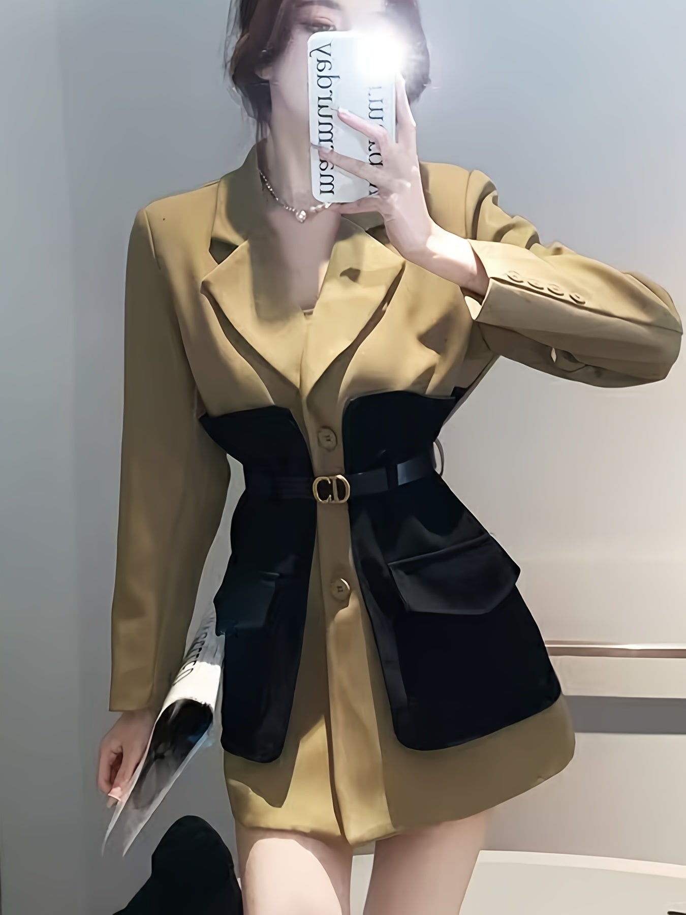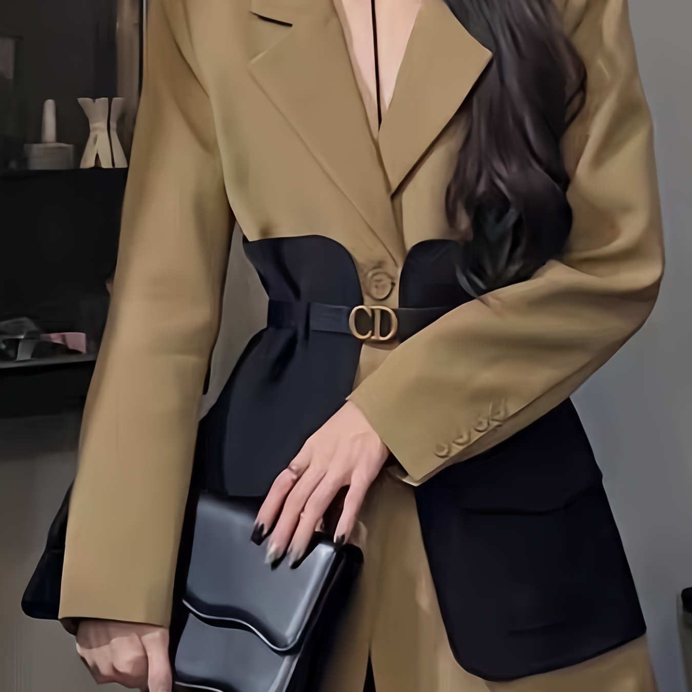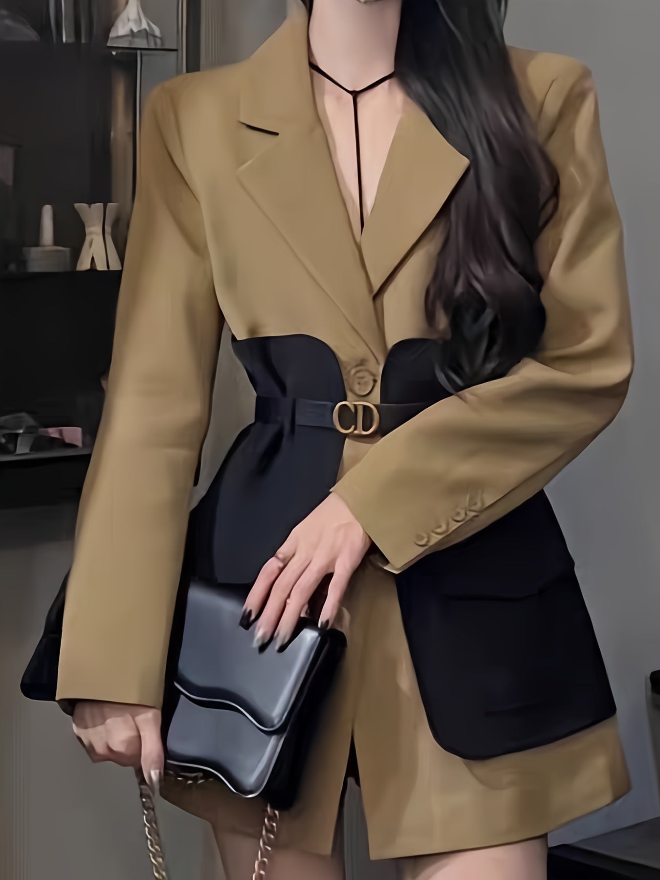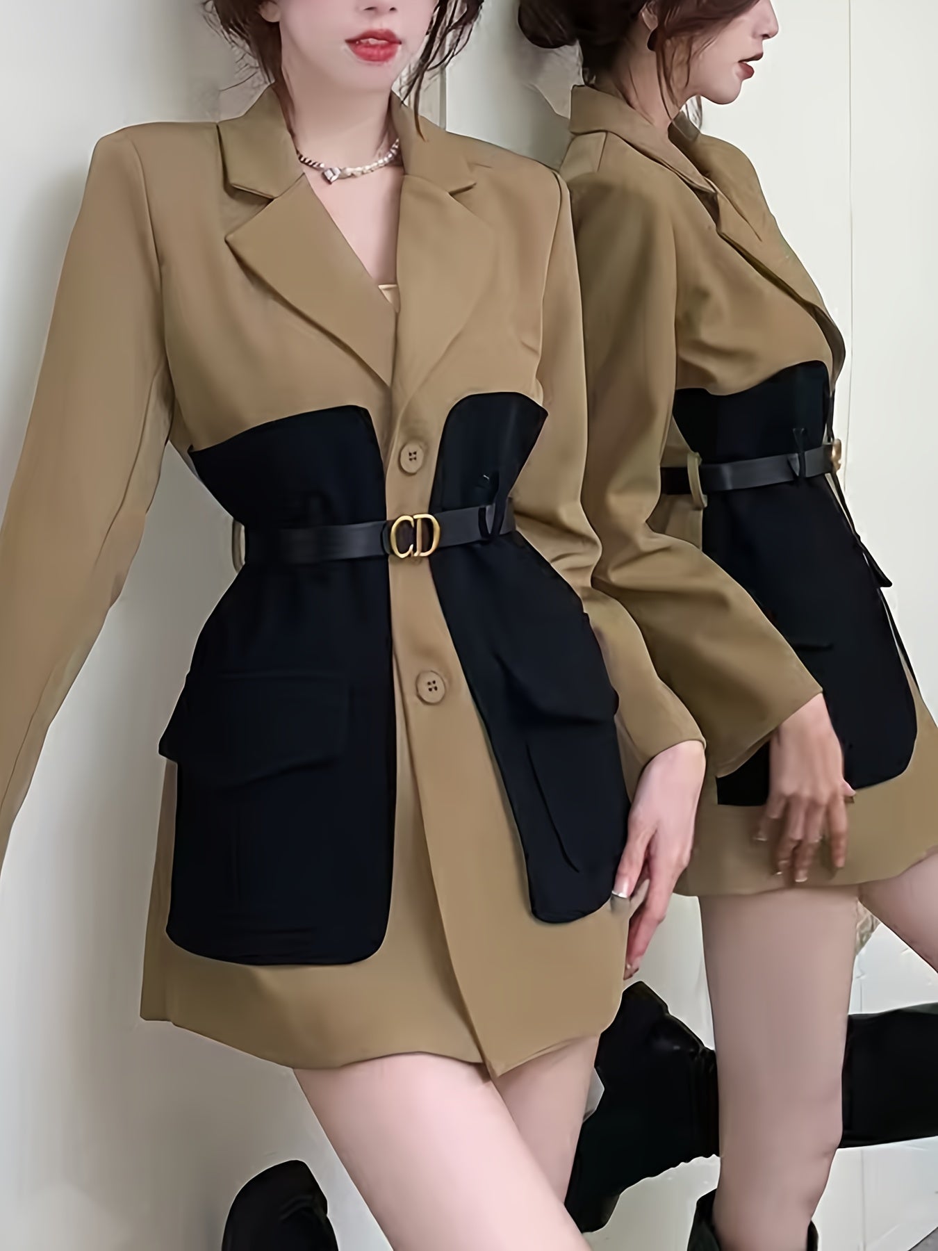 Կանացի էլեգանտ Midi Blazer, միաձույլ գույնի պոլիեսթեր 100% երկարաթև բաճկոն գոտիով դետալներով, X-Contour միայնակ կրծքով վերարկու, գարուն/ամառ նորաձև վերարկու