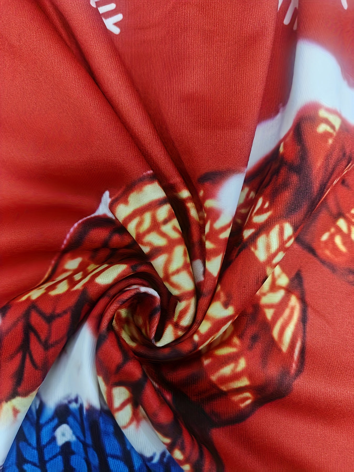 Women's Elegant Red & White Winter Snowflake & Snowman Print A-Line Dress with Square Neckline - Machine Washable Floor-Length Party Dress for Christmas, New Year's Eve, Everyday Winter Outfits - Festive Party Attire with Poi