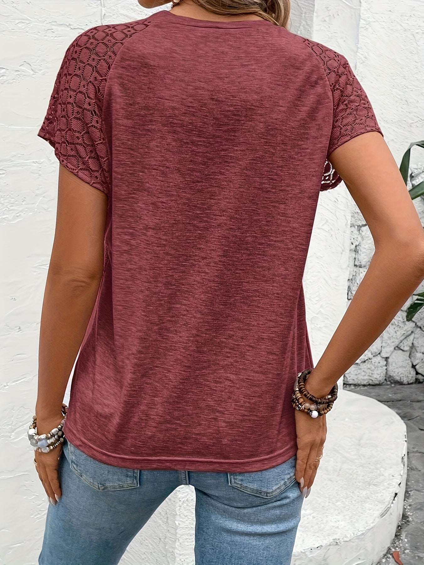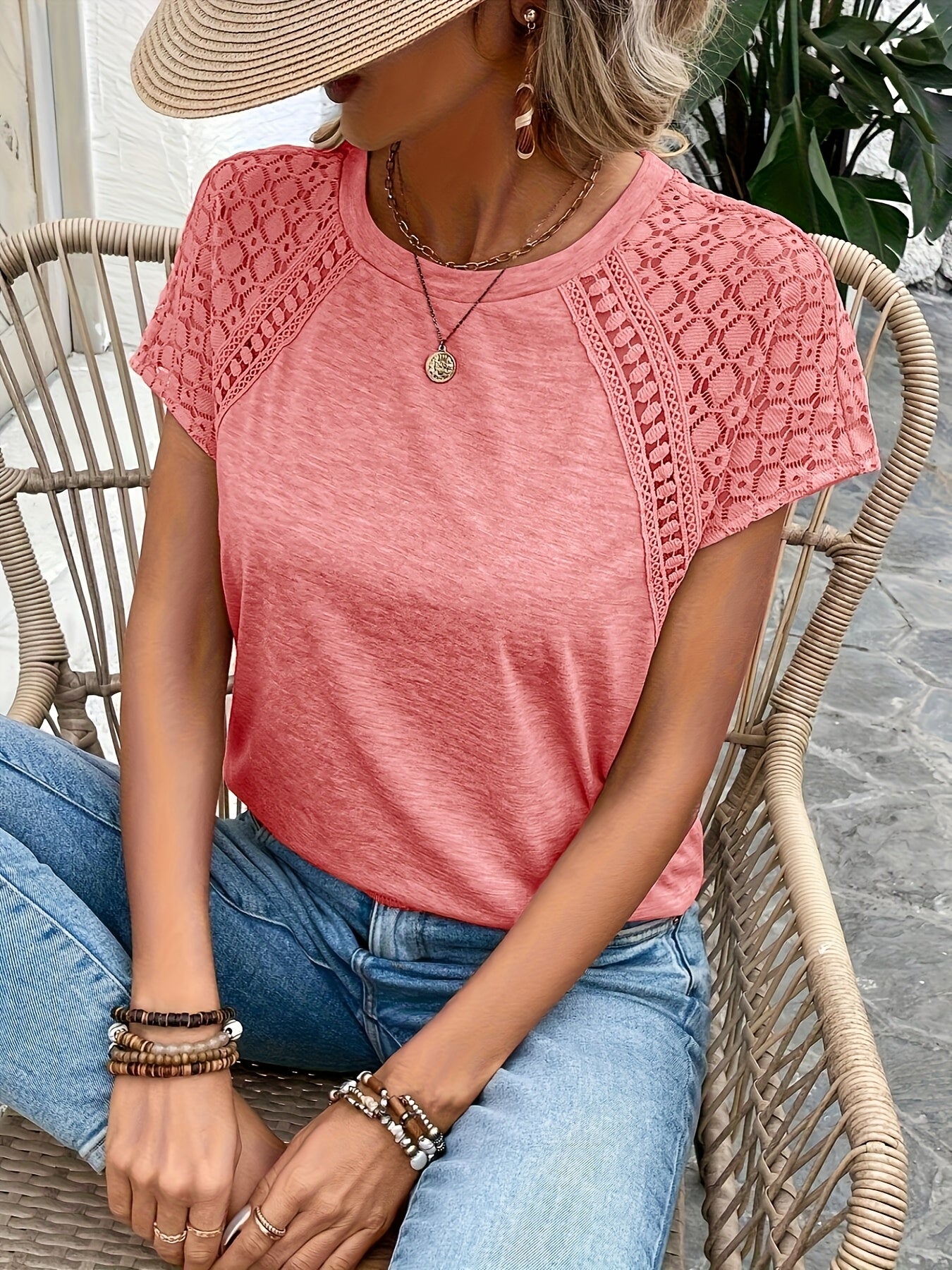 Կանացի էլեգանտ միագույն ժանյակավոր թևքերով մարզաշապիկ - Ամառային առօրյա, շքեղ բլուզ՝ շնչող գործվածքով, լվացվող մեքենայով, բազմակողմանի՝ առօրյա և պաշտոնական հանդերձանքների համար, կարճ կտրված մարզաշապիկ | Փափուկ հյուսվածքով վերնաշապիկ, կանացի մարզաշապիկներ