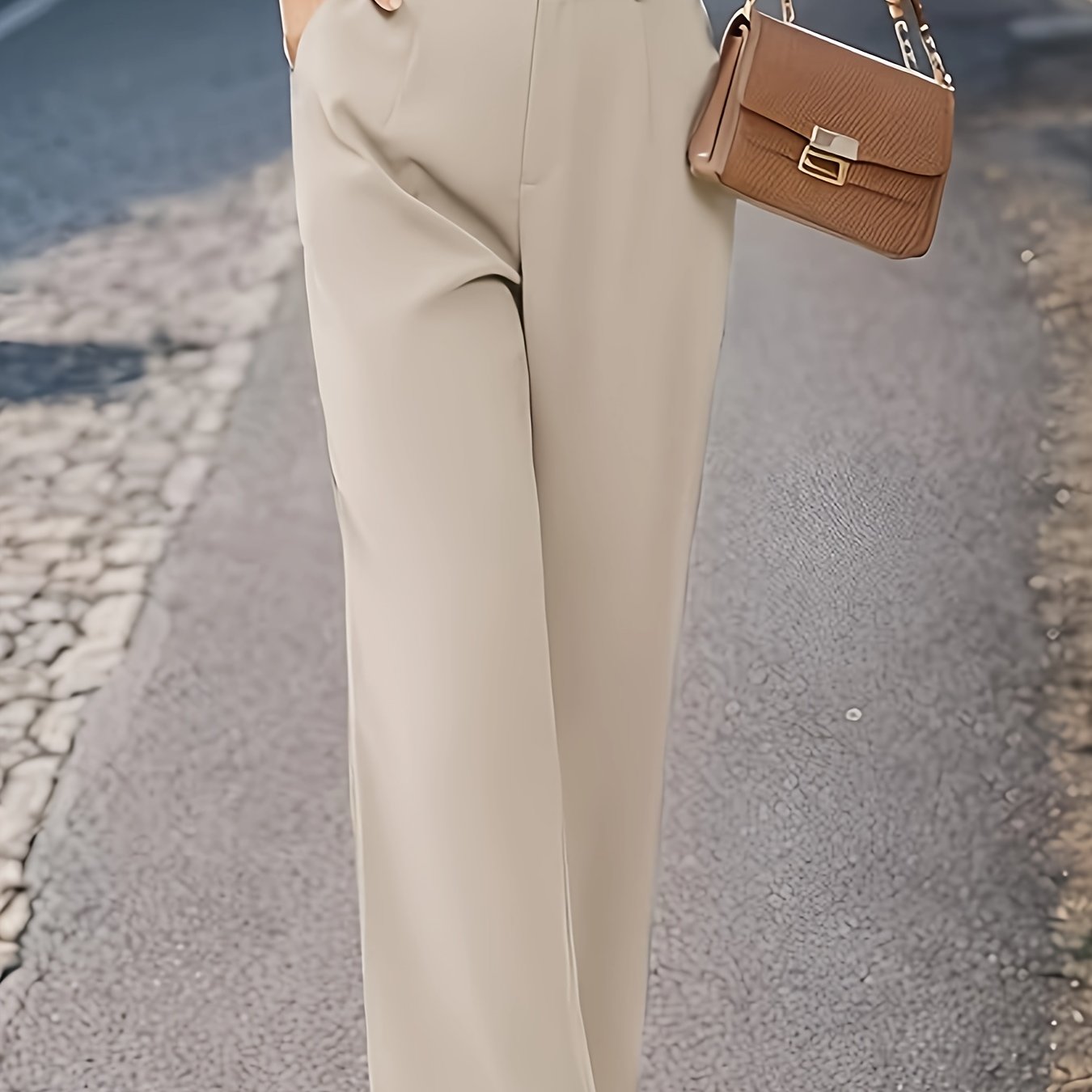 Կանացի էլեգանտ միագույն ուղիղ շալվար, նորաձև գրասենյակային և ամենօրյա հագուստ
