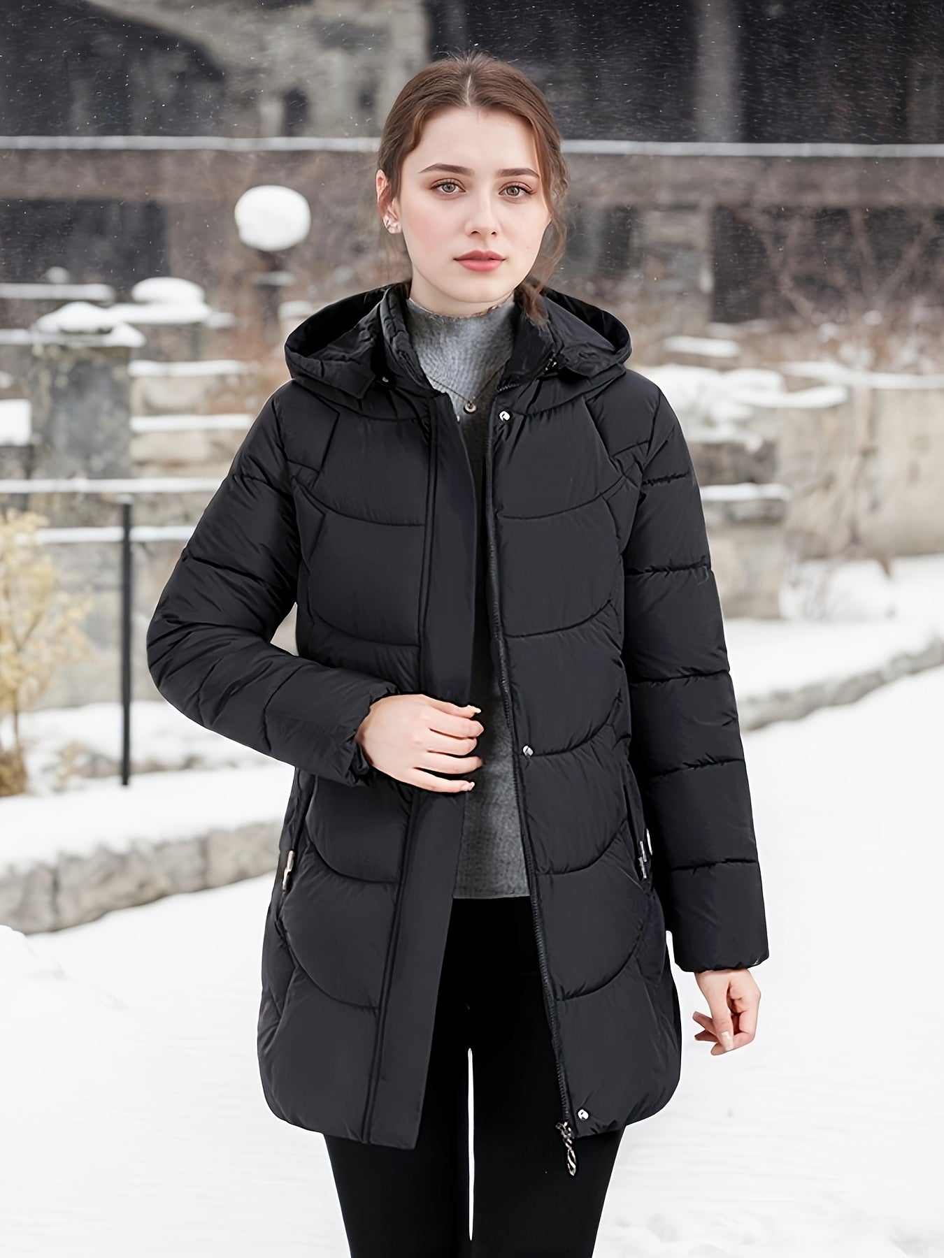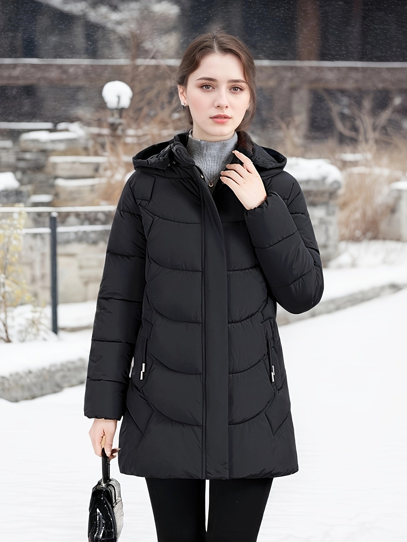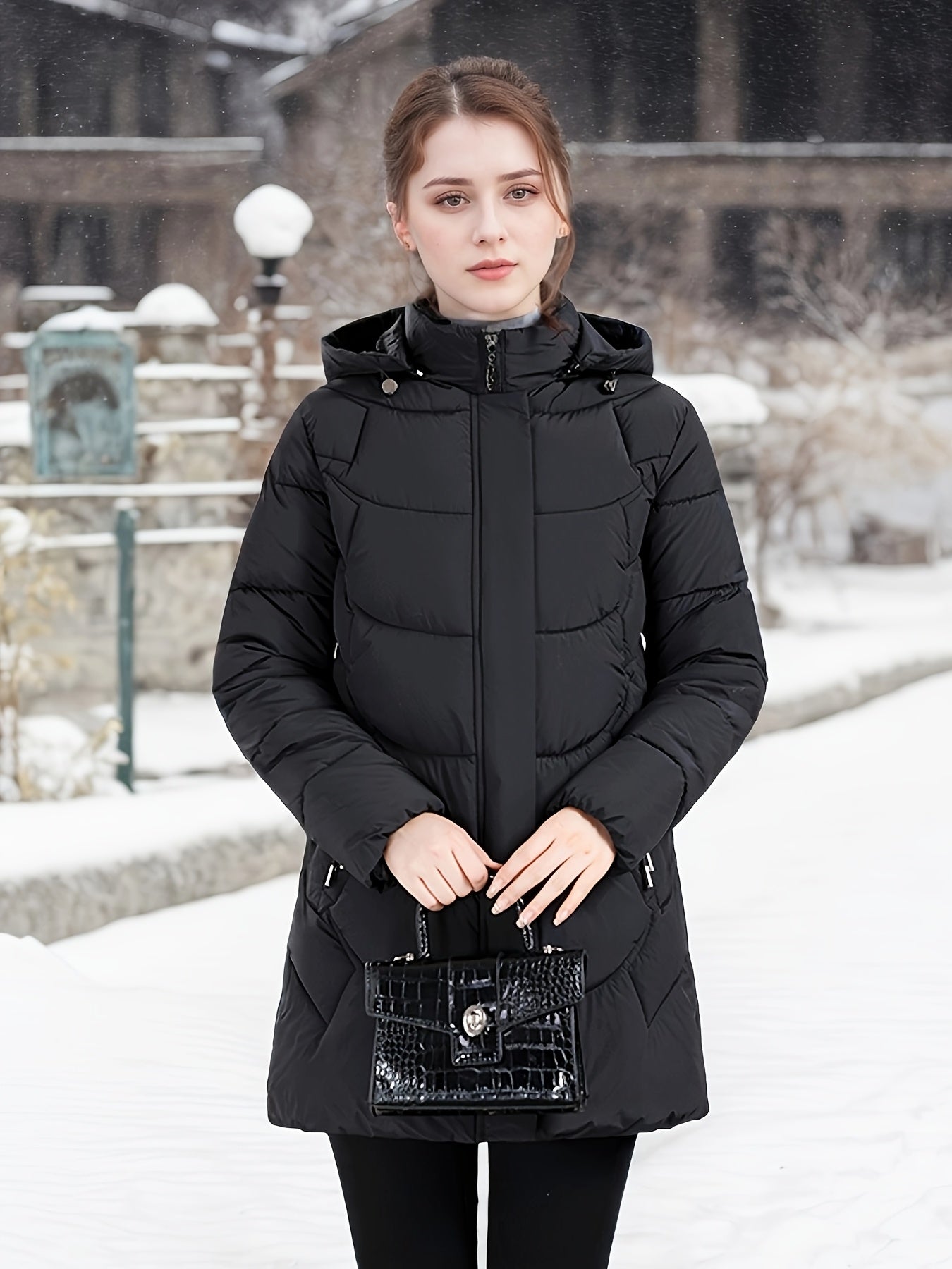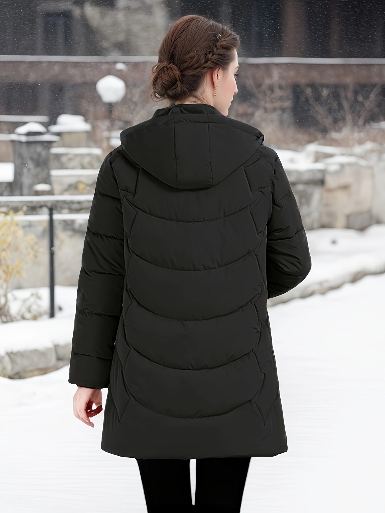 Կանացի էլեգանտ ձմեռային բաճկոն - Մազերի նման ուլունքաձև կոճակներով փակվող վերարկու, փքված չէ, ձեռքով լվացվող երկար թևքերով վերնազգեստ ցուրտ եղանակի համար (անկանոն և պաշտոնական) - սև բաճկոն առանց գոտու/պարագաների (պատրաստի կրելու), ձմեռային Ջա