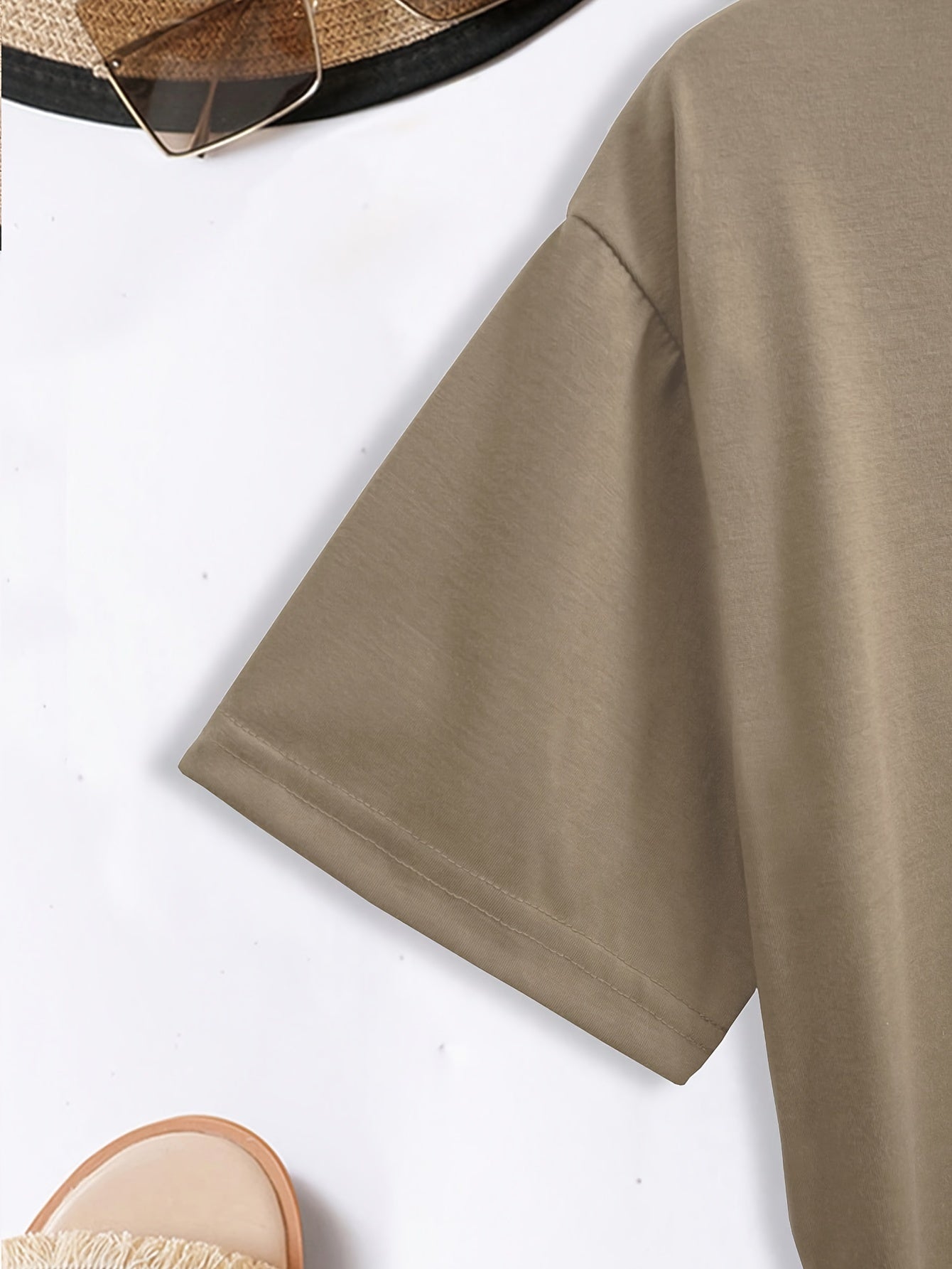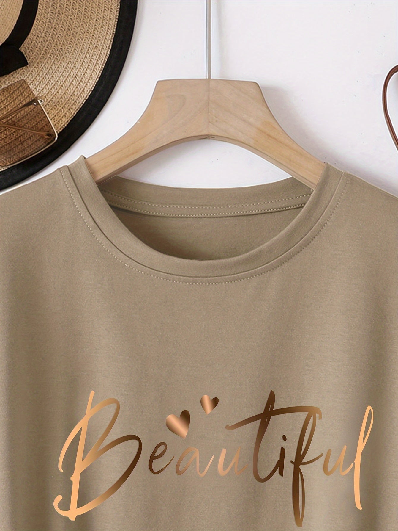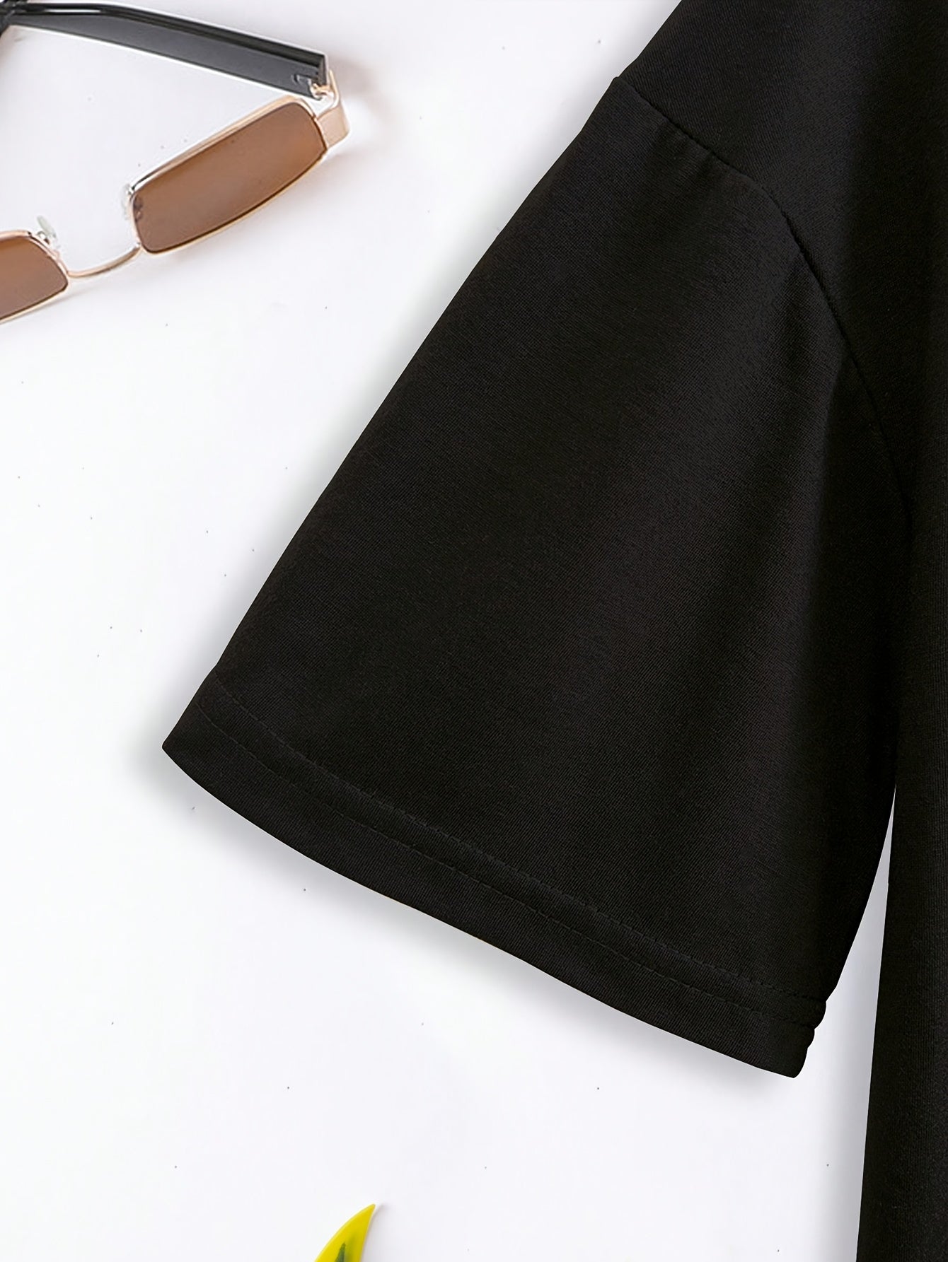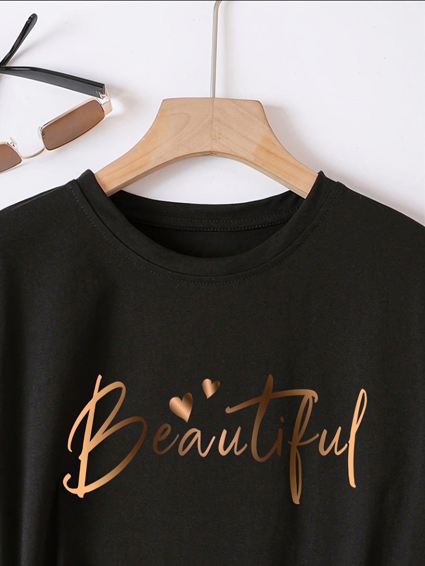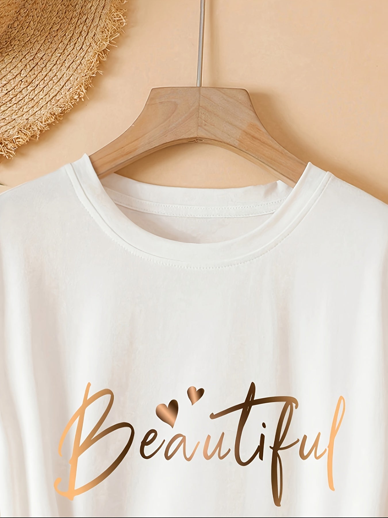 Կանացի նորաձև կարճաթև շապիկ՝ տառատեսակով, կլոր վզով, սովորական երկարությամբ, գարուն/ամառ/աշուն, պոլիեսթեր տրիկոտաժե գործվածք, թիկնոց