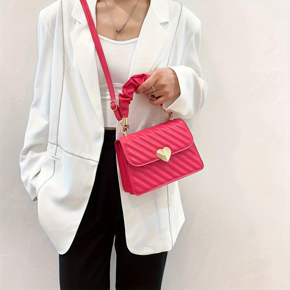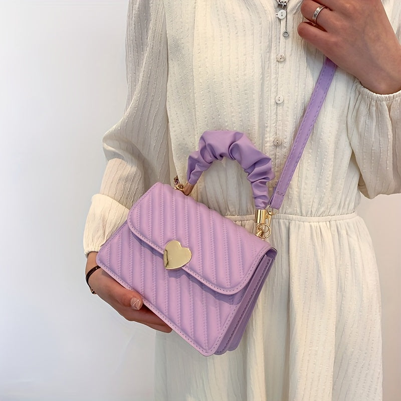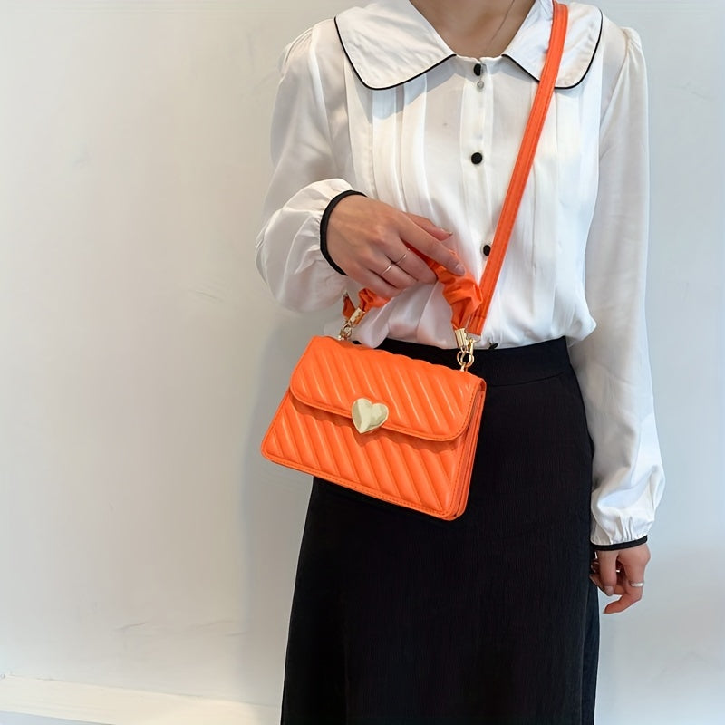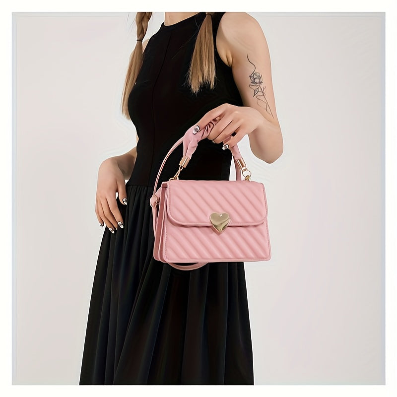 Կանացի նորաձև ուսի պայուսակ, կորեական տարբերակ, արհեստական կաշվից, կարված միագույն, սրտիկ նախշերով, հանվող ժապավենով, մագնիսական փակմամբ, արհեստական կաշվից աստառով, ներկված եզրերով, բազմակողմանի, խաչաձև պայուսակ - հասանելի է սև, R գույներով։
