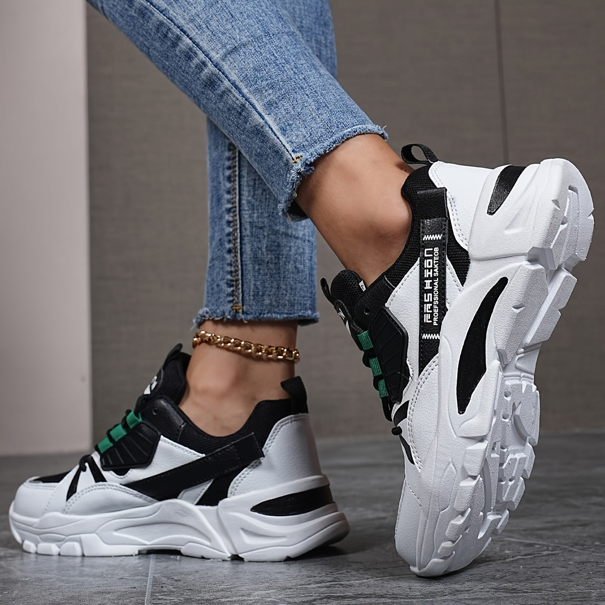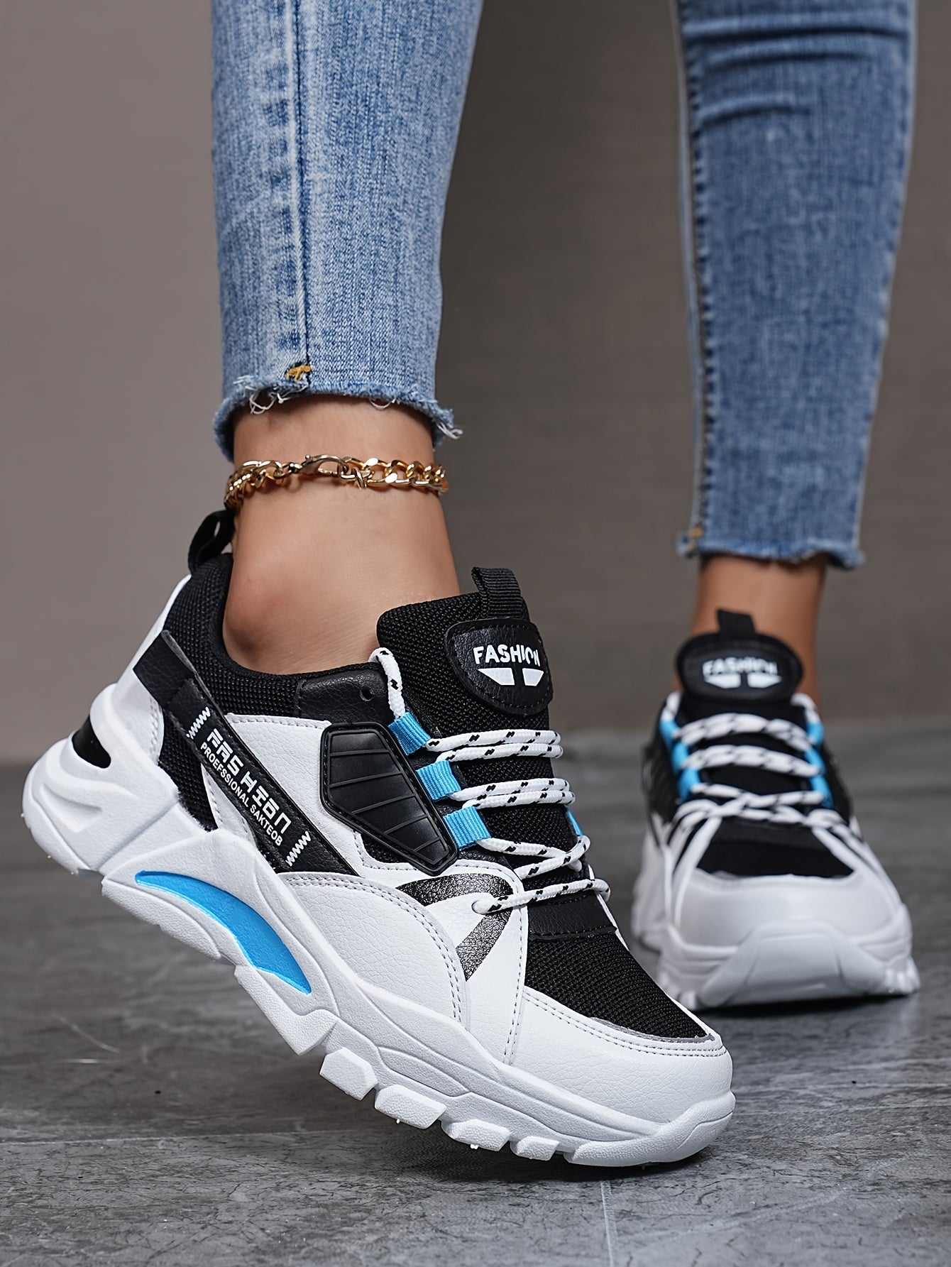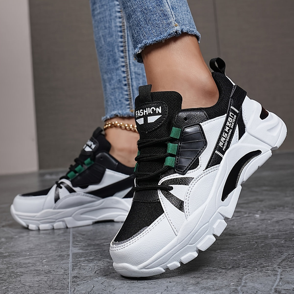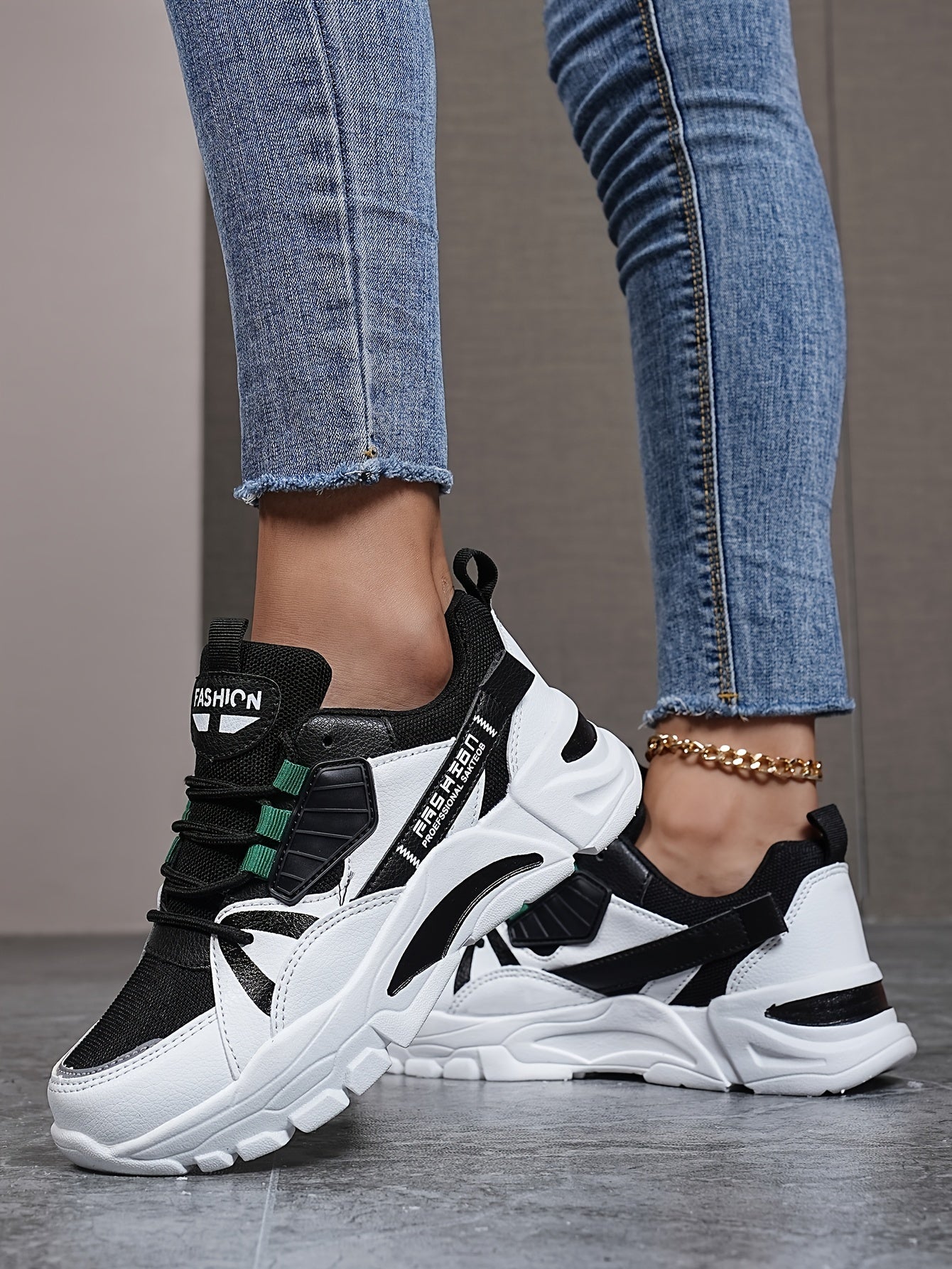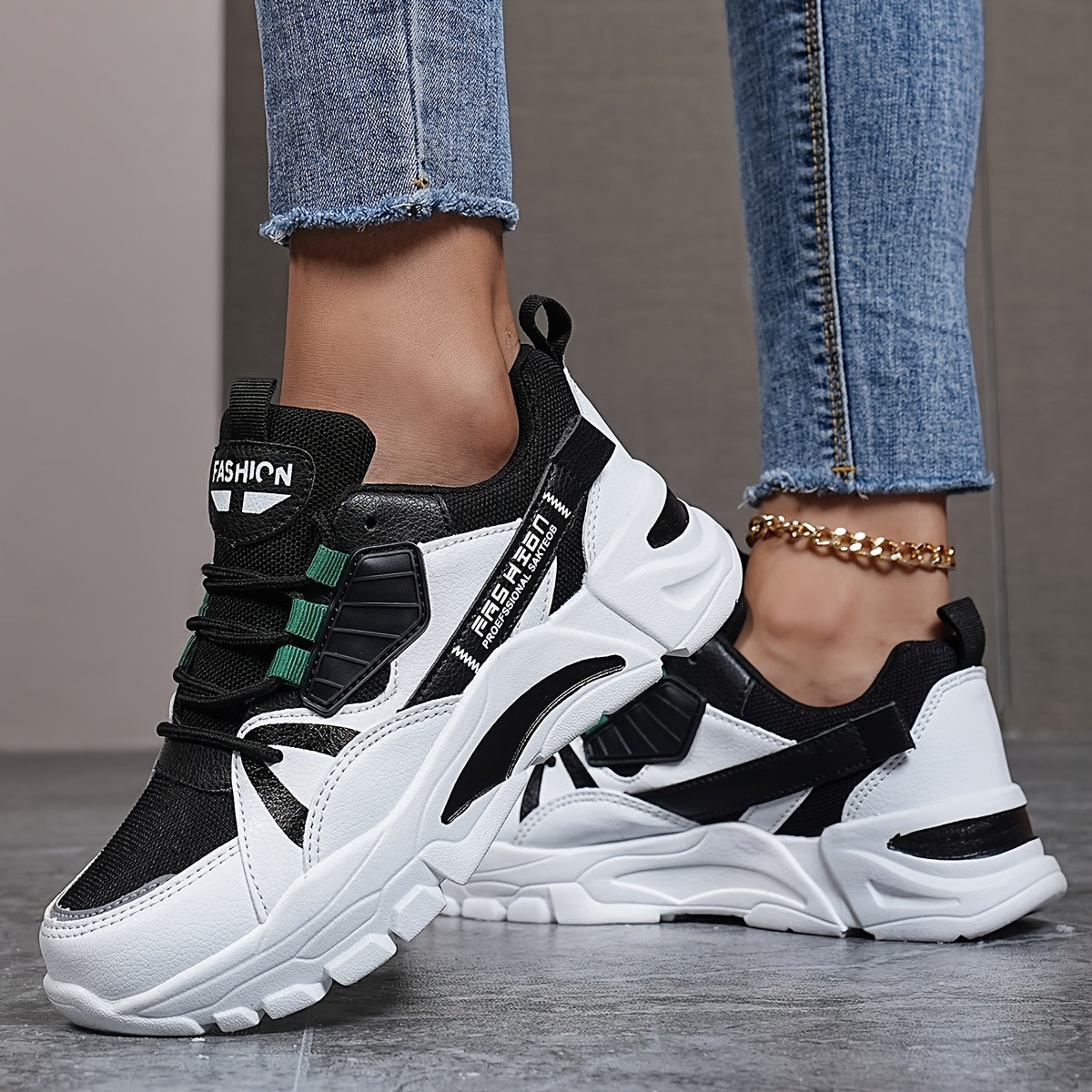 Կանացի նորաձև սպորտային կոշիկներ՝ երկրաչափական նախշերով, EVA ներբանով, կապիչներով, ամենօրյա սպորտային կոշիկներ, ձեռքով լվացվող գործվածքից ներքին մաս, բոլոր եղանակների հարմարավետ կոշիկներ՝ պարզ քթով դիզայնով։