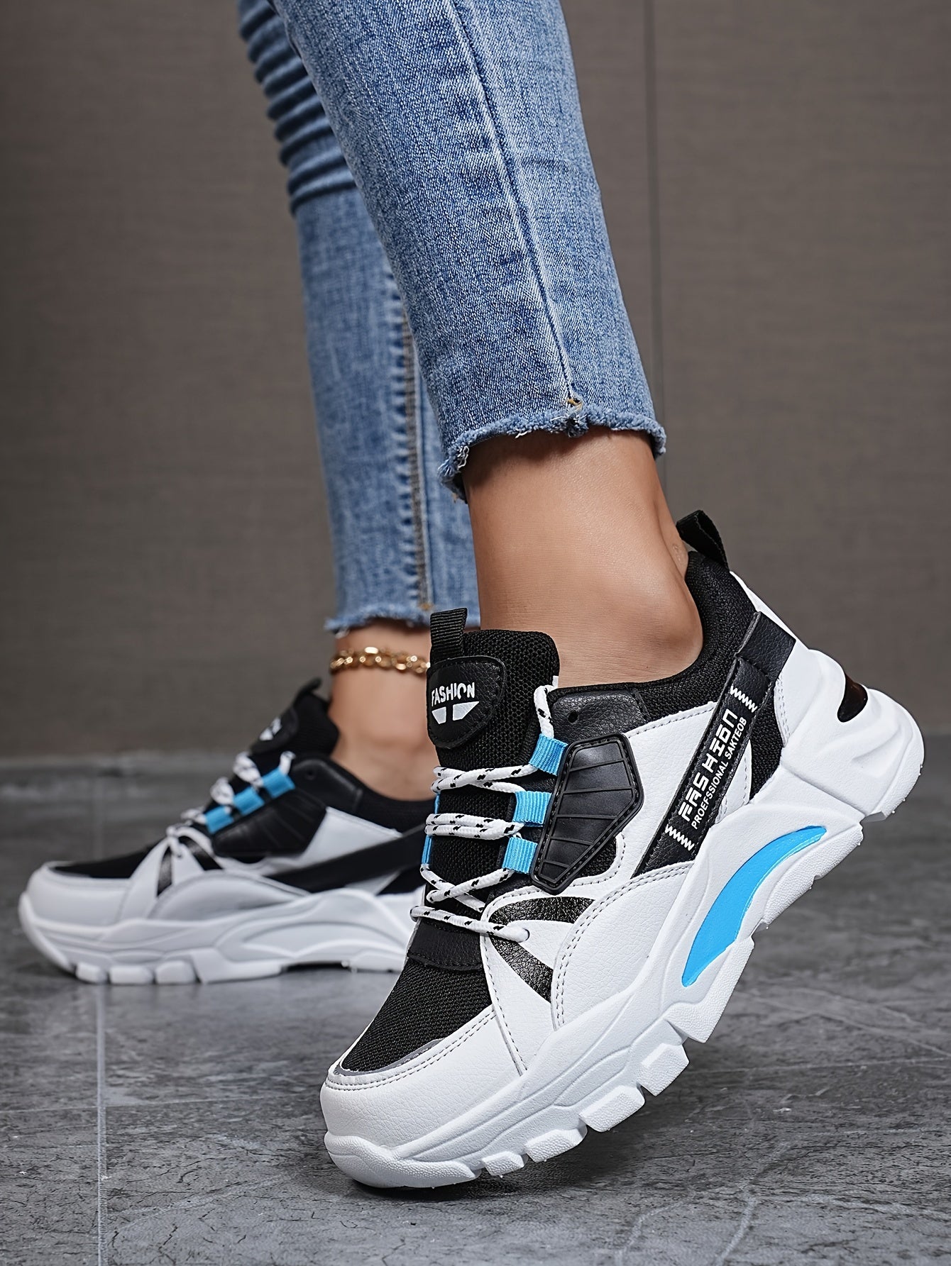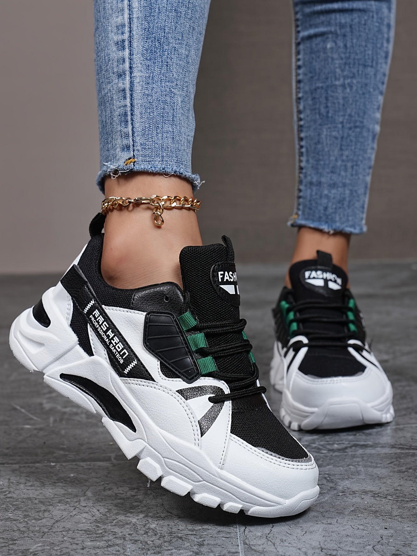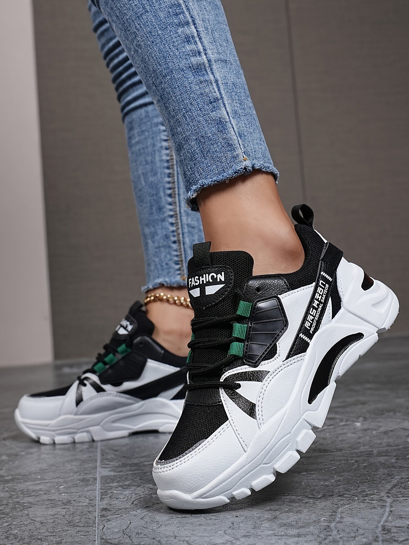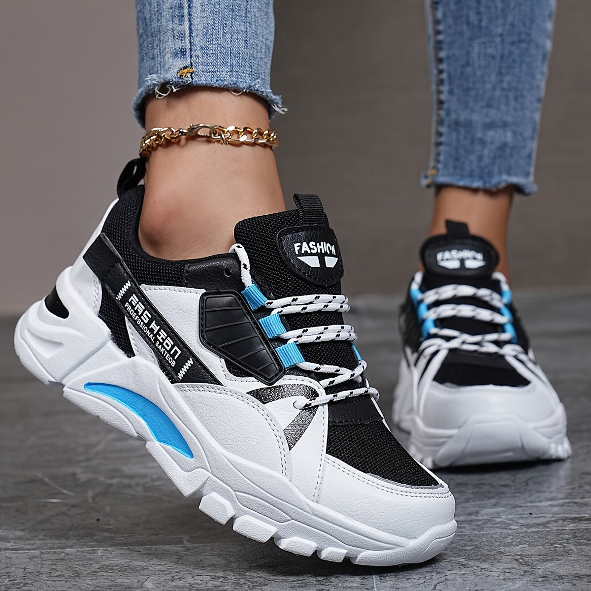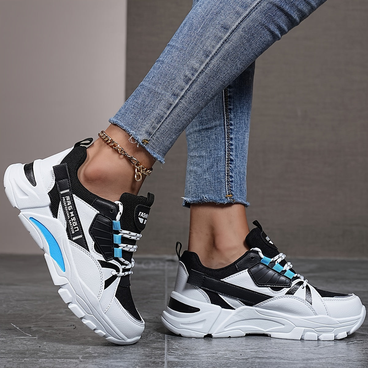 Կանացի նորաձև սպորտային կոշիկներ՝ երկրաչափական նախշերով, EVA ներբանով, կապիչներով, ամենօրյա սպորտային կոշիկներ, ձեռքով լվացվող գործվածքից ներքին մաս, բոլոր եղանակների հարմարավետ կոշիկներ՝ պարզ քթով դիզայնով։