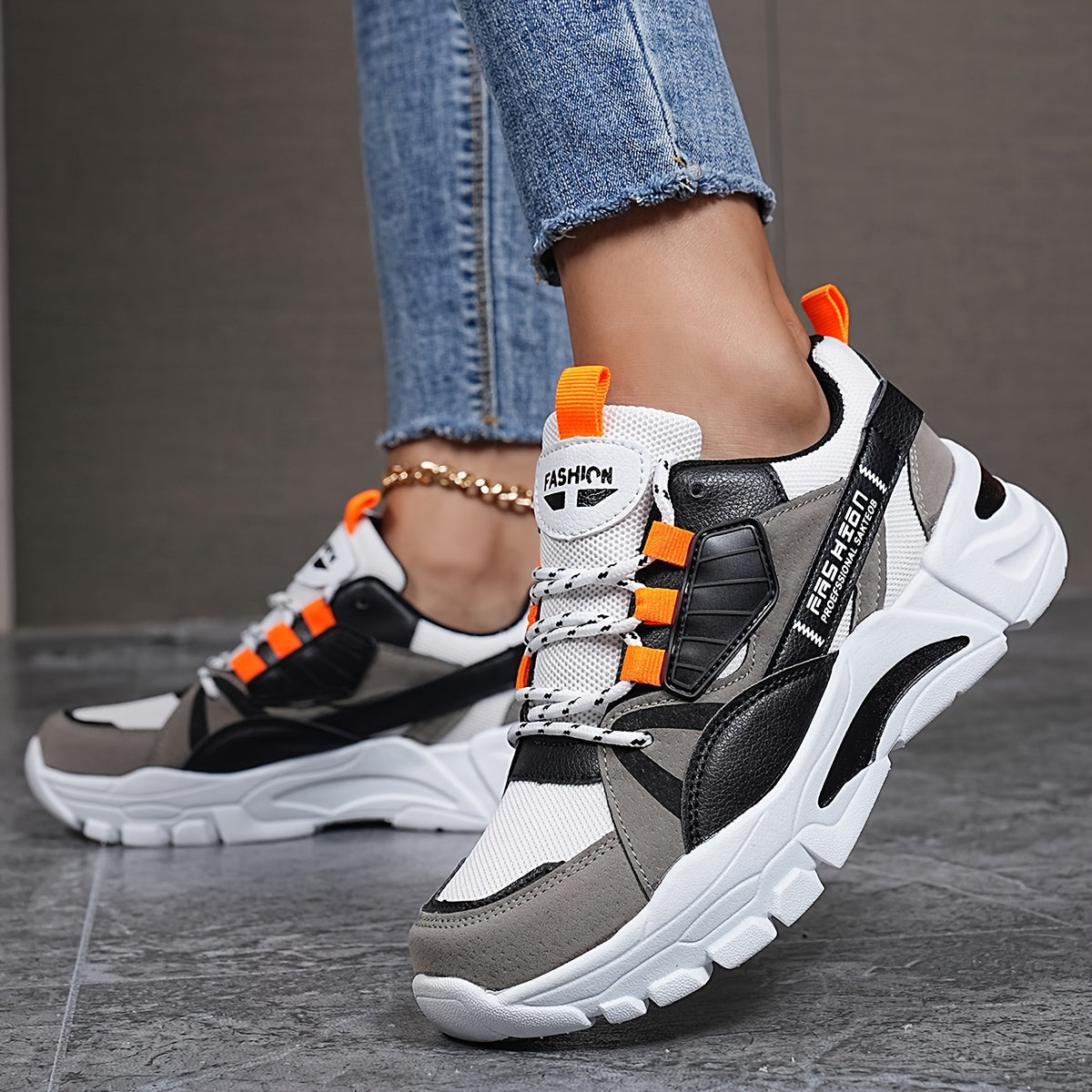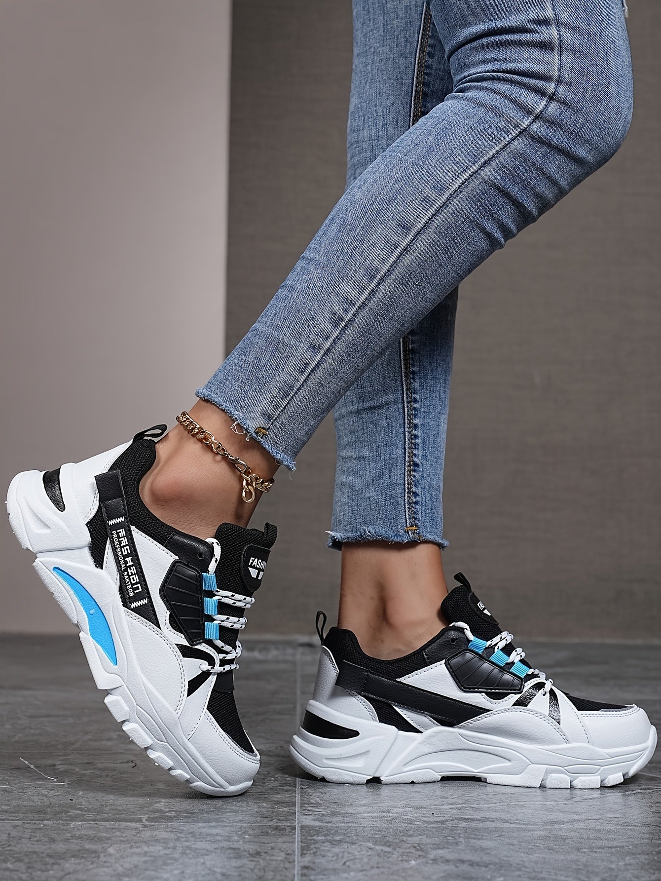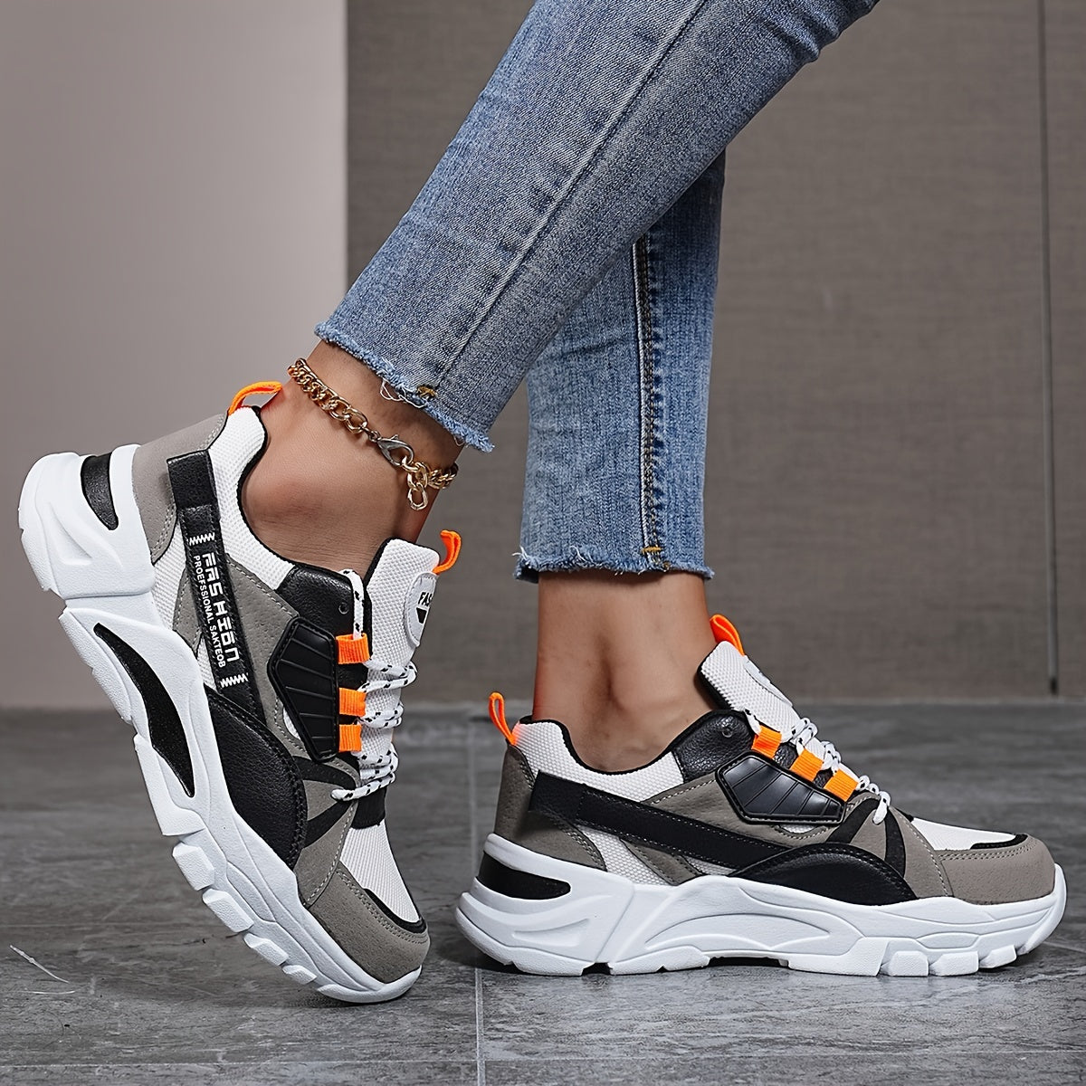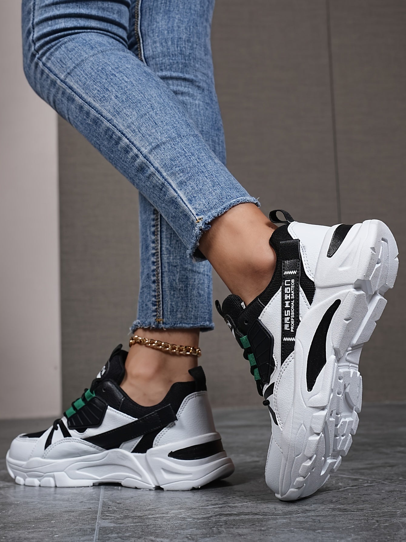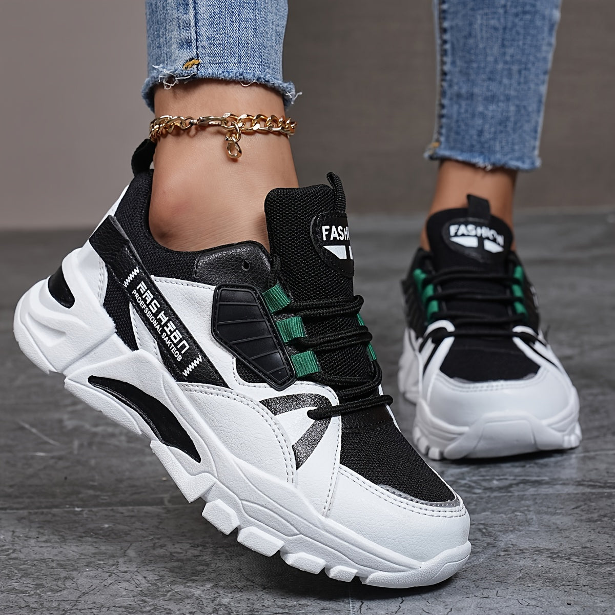 Կանացի նորաձև սպորտային կոշիկներ՝ երկրաչափական նախշերով, EVA ներբանով, կապիչներով, ամենօրյա սպորտային կոշիկներ, ձեռքով լվացվող գործվածքից ներքին մաս, բոլոր եղանակների հարմարավետ կոշիկներ՝ պարզ քթով դիզայնով։