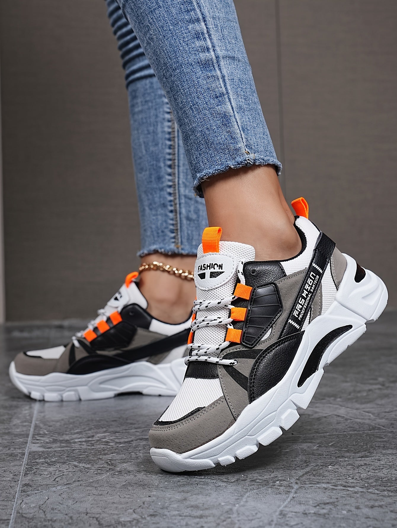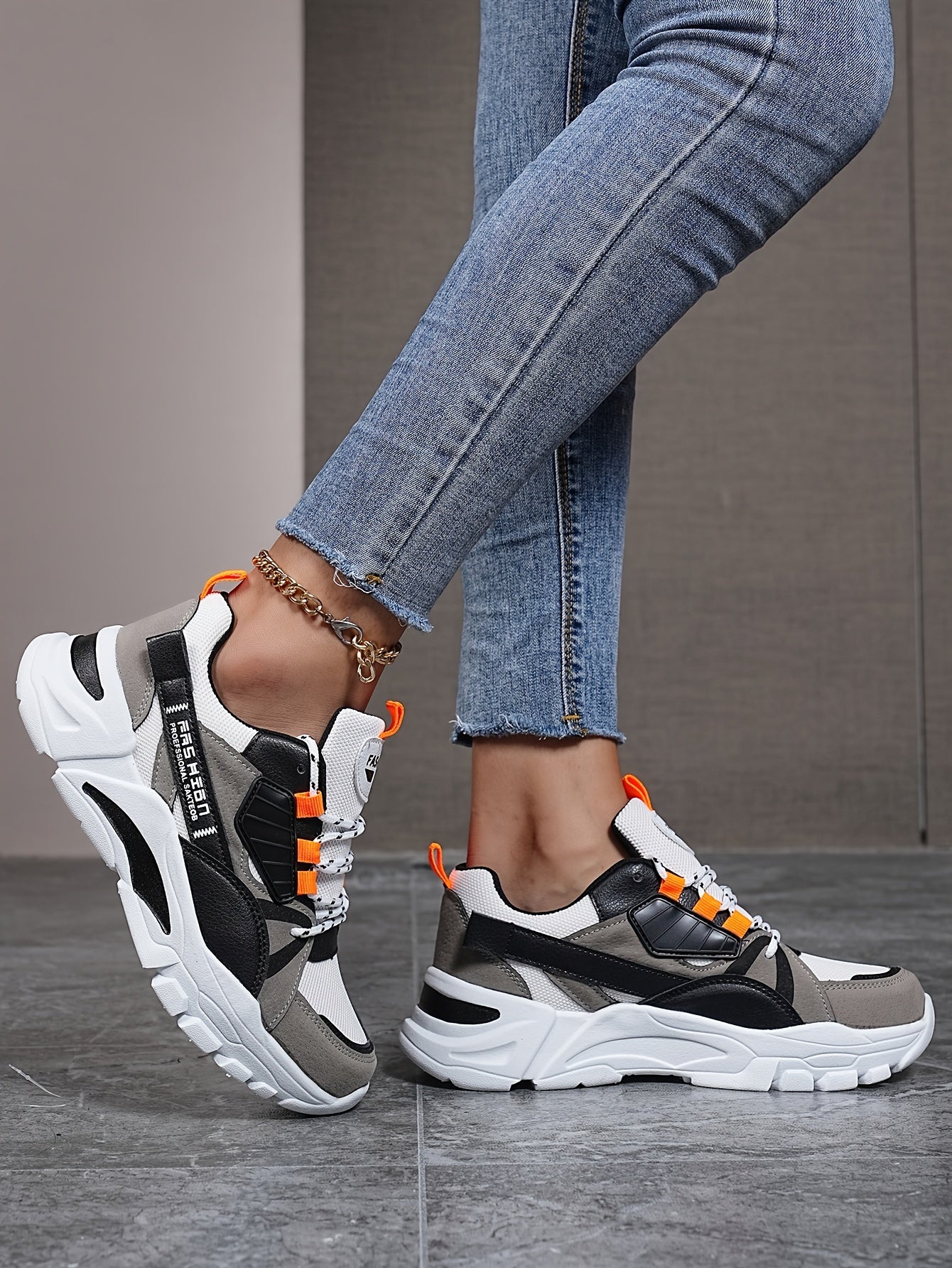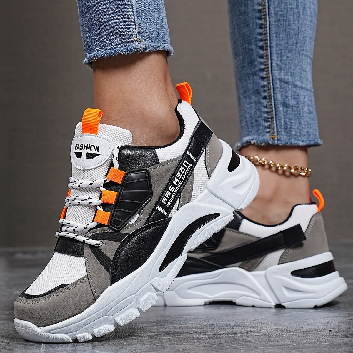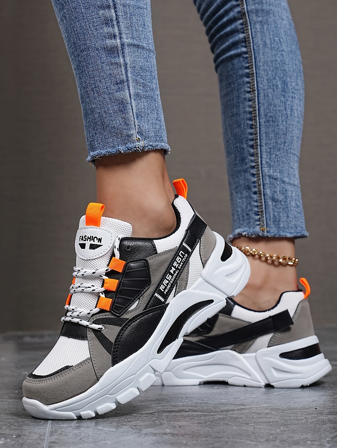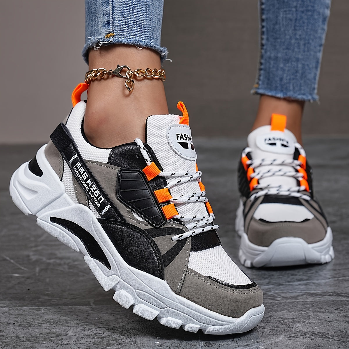 Կանացի նորաձև սպորտային կոշիկներ՝ երկրաչափական նախշերով, EVA ներբանով, կապիչներով, ամենօրյա սպորտային կոշիկներ, ձեռքով լվացվող գործվածքից ներքին մաս, բոլոր եղանակների հարմարավետ կոշիկներ՝ պարզ քթով դիզայնով։
