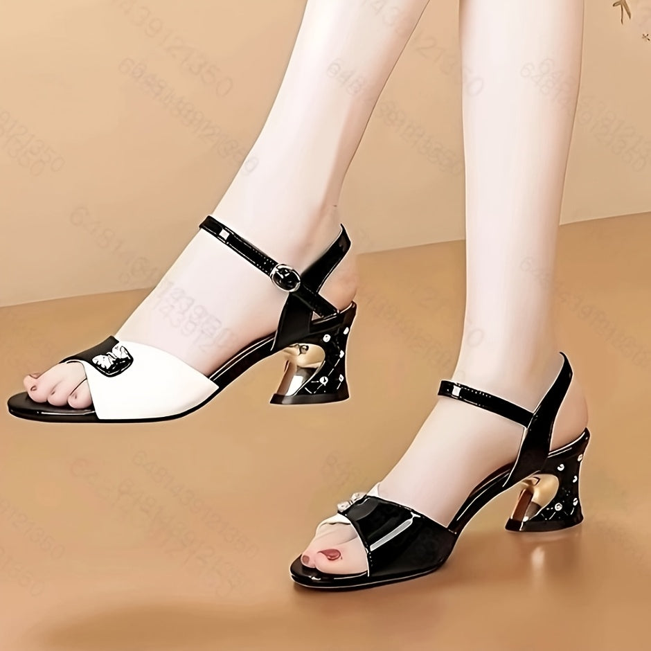 Կանացի նորաձև միագույն միջին կրունկով, բաց քթով, ճարմանդով սանդալներ, պոլիուրեթանային վերնամաս, պոլիուրեթանային ներբան, ռետինե ներբան, ձեռքով լվացվող, կանանց համար