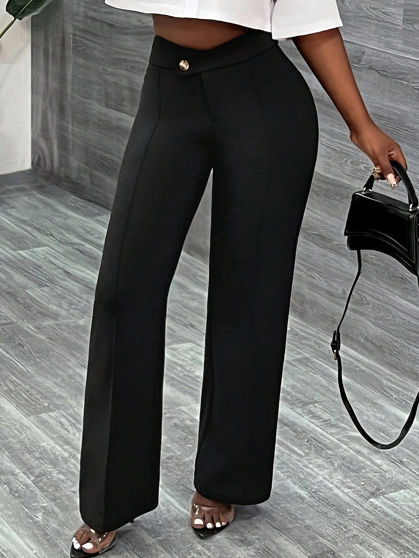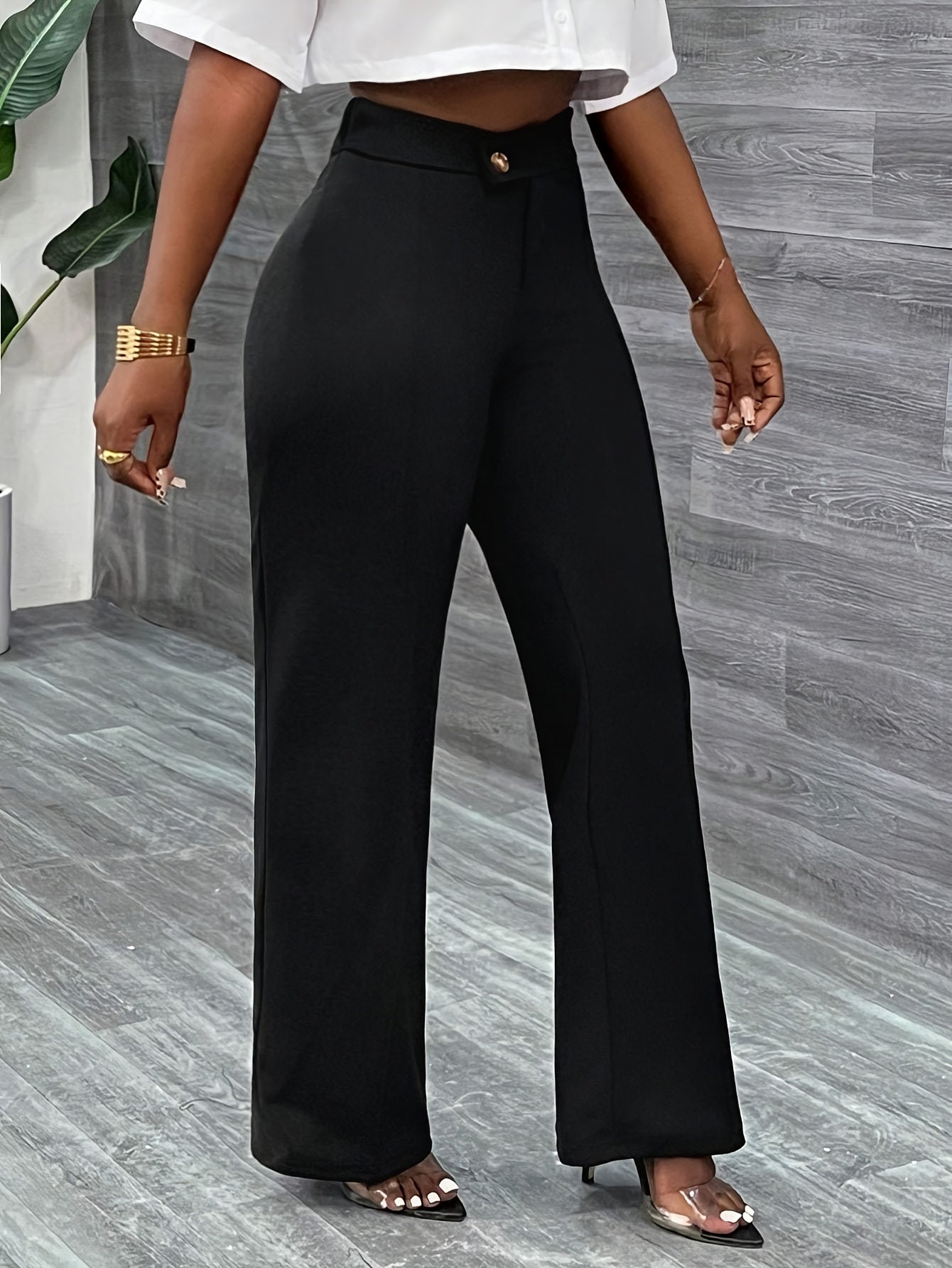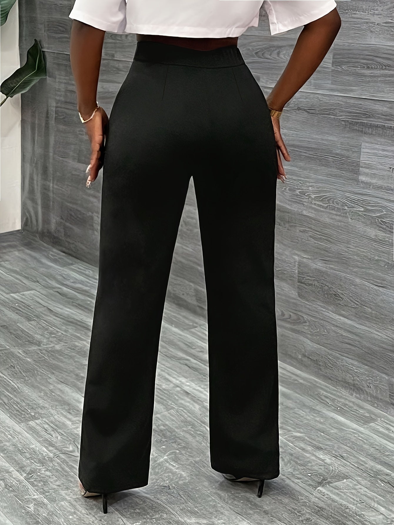 Կանացի նորաձև ուղիղ շալվար, միաձույլ գույն, պատահական ոճ, պոլիեսթեր, բոլոր սեզոնային, մեծահասակների համար, հյուսված գործվածք