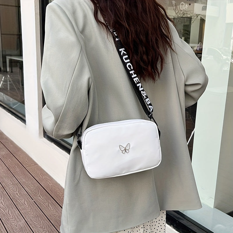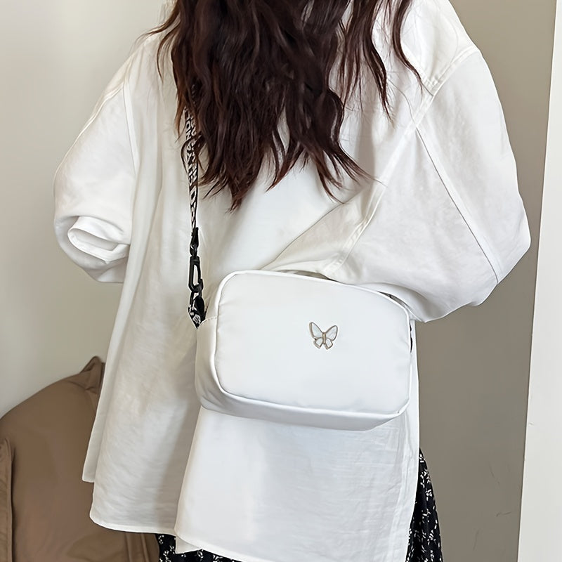 Կանացի նորաձև բազմակողմանի խաչաձև պելմենի մինի պայուսակ, պատահական ուղևորային ուսի դրամապանակ ժապավենով, նեյլոնե նյութից պայուսակ (18,8 սմ x 5,84 սմ)