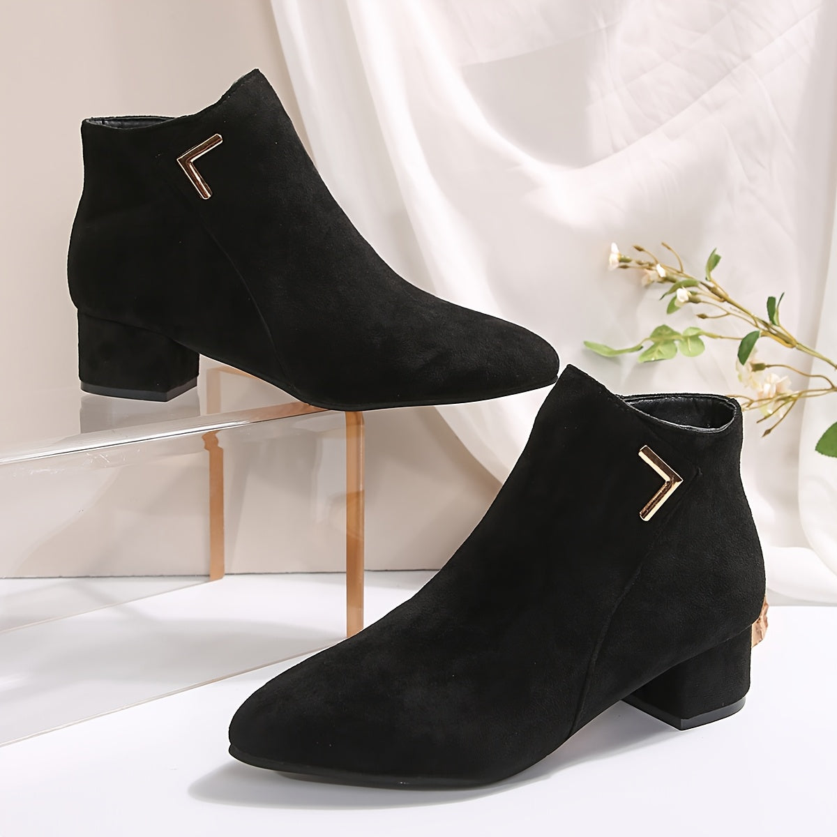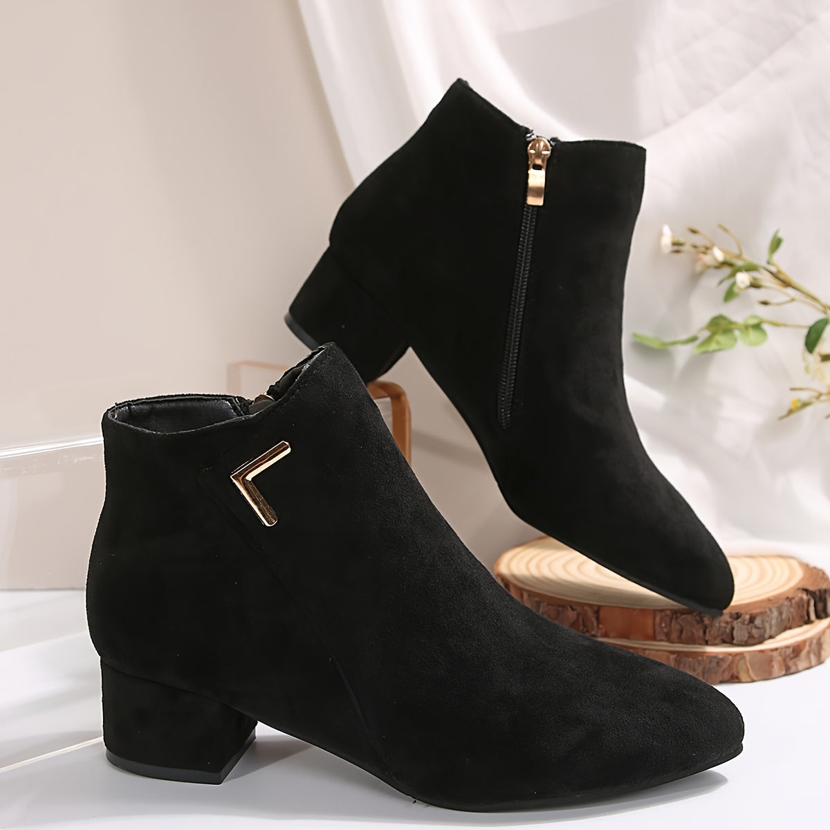 Կանացի ֆլանելային կոճ կոշիկներ, սրածայր բութ, կողային կայծակաճարմանդ, միաձույլ գույն, ցածր կրունկ, կտորից աստառով և PU ներբանով, բոլոր սեզոնային հարմարավետության համար, Taizhou Origin