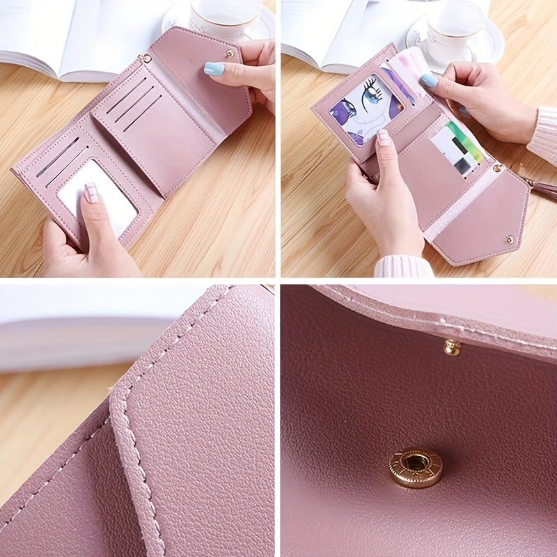 Կանացի ձեռքի պայուսակ՝ ջերմային և թակած աքսեսուարներով, թրենդային կարճ եռապատ դրամապանակ, կարճ դրամապանակ