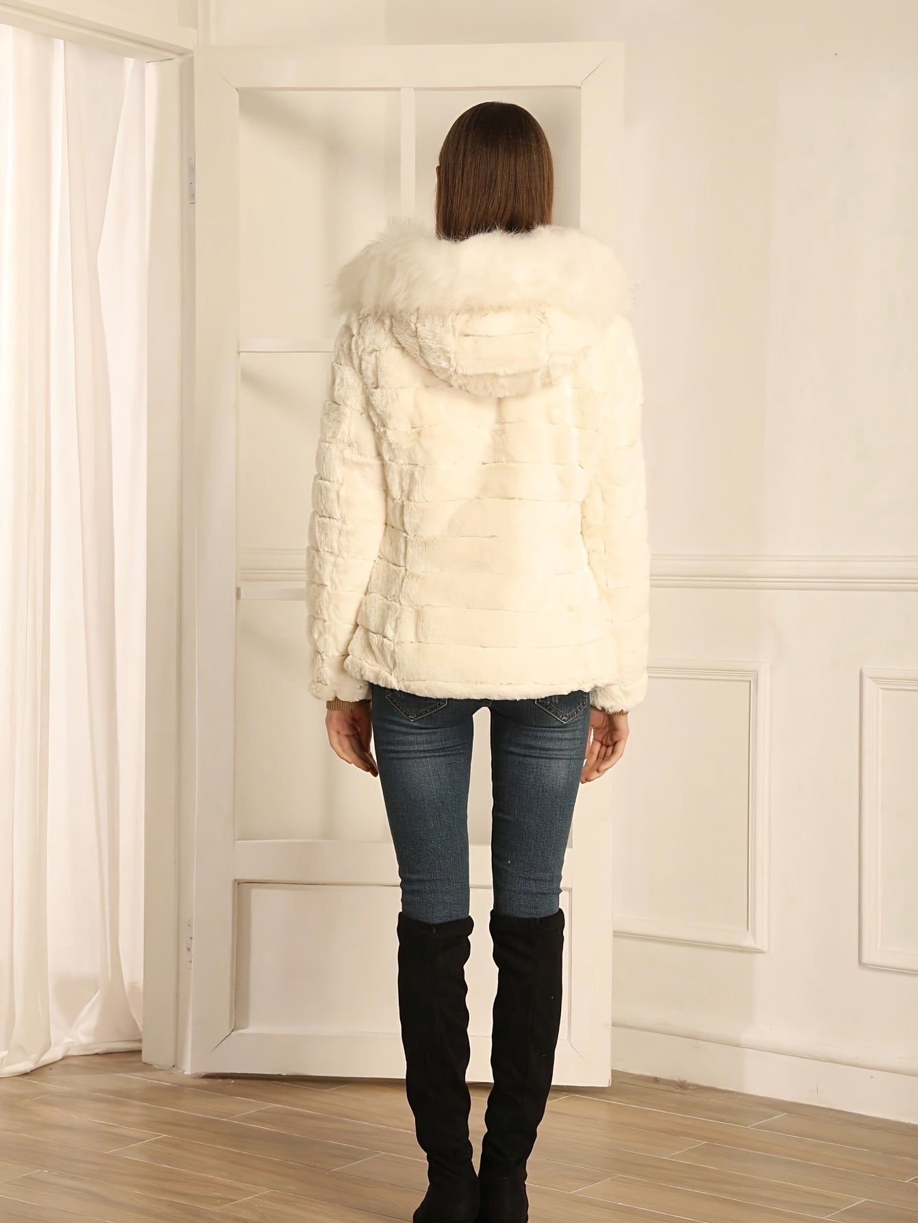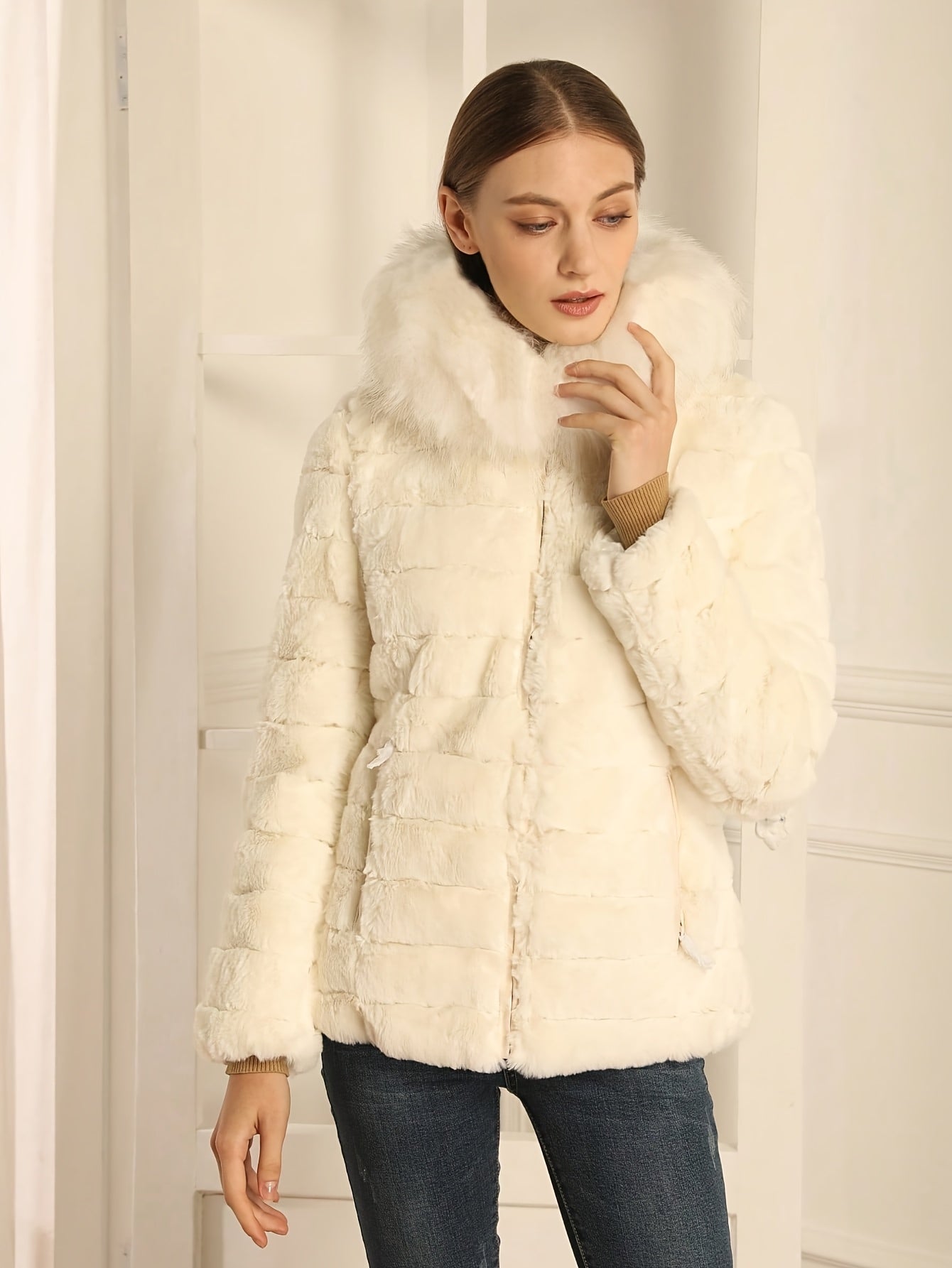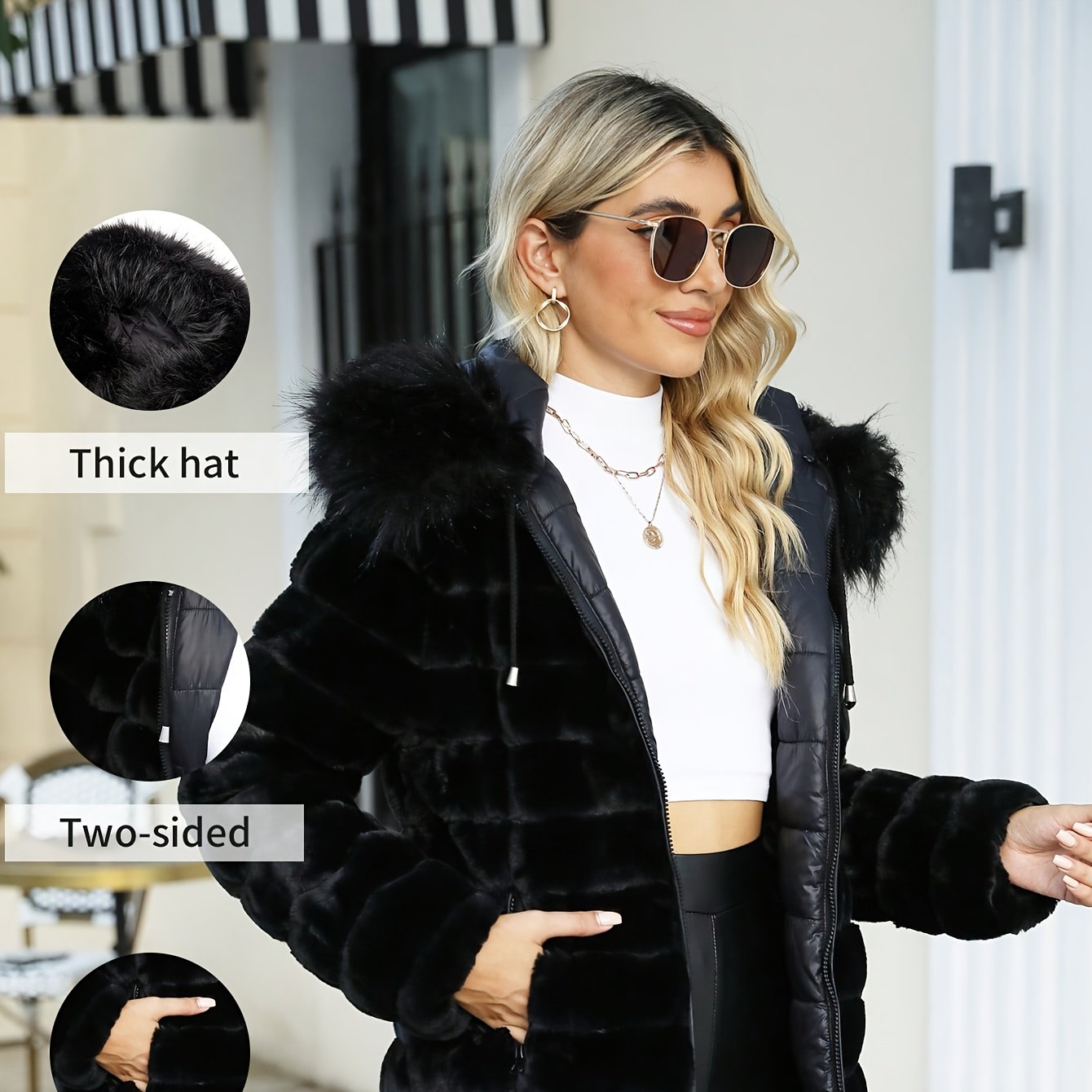 Women'S Heavyweight Winter Coat - Dual-Sided Reversible Jacket with Full-Zip Front, Hooded Collar, Two-Way Zipper Closure - Warm Outerwear for Cold Weather, Office, Travel - Elegant Brown Coat (Size & Wash Label in Pocket), L