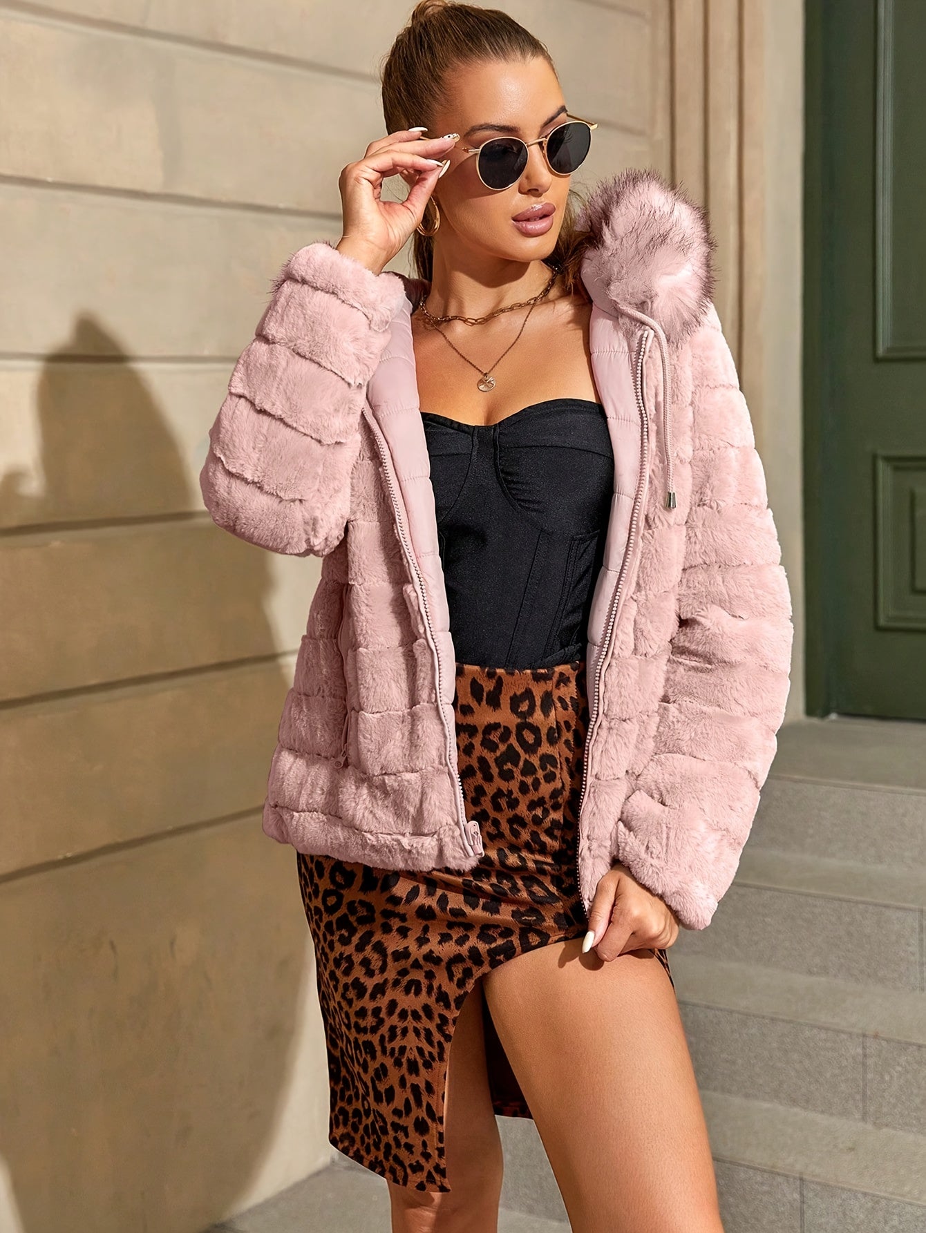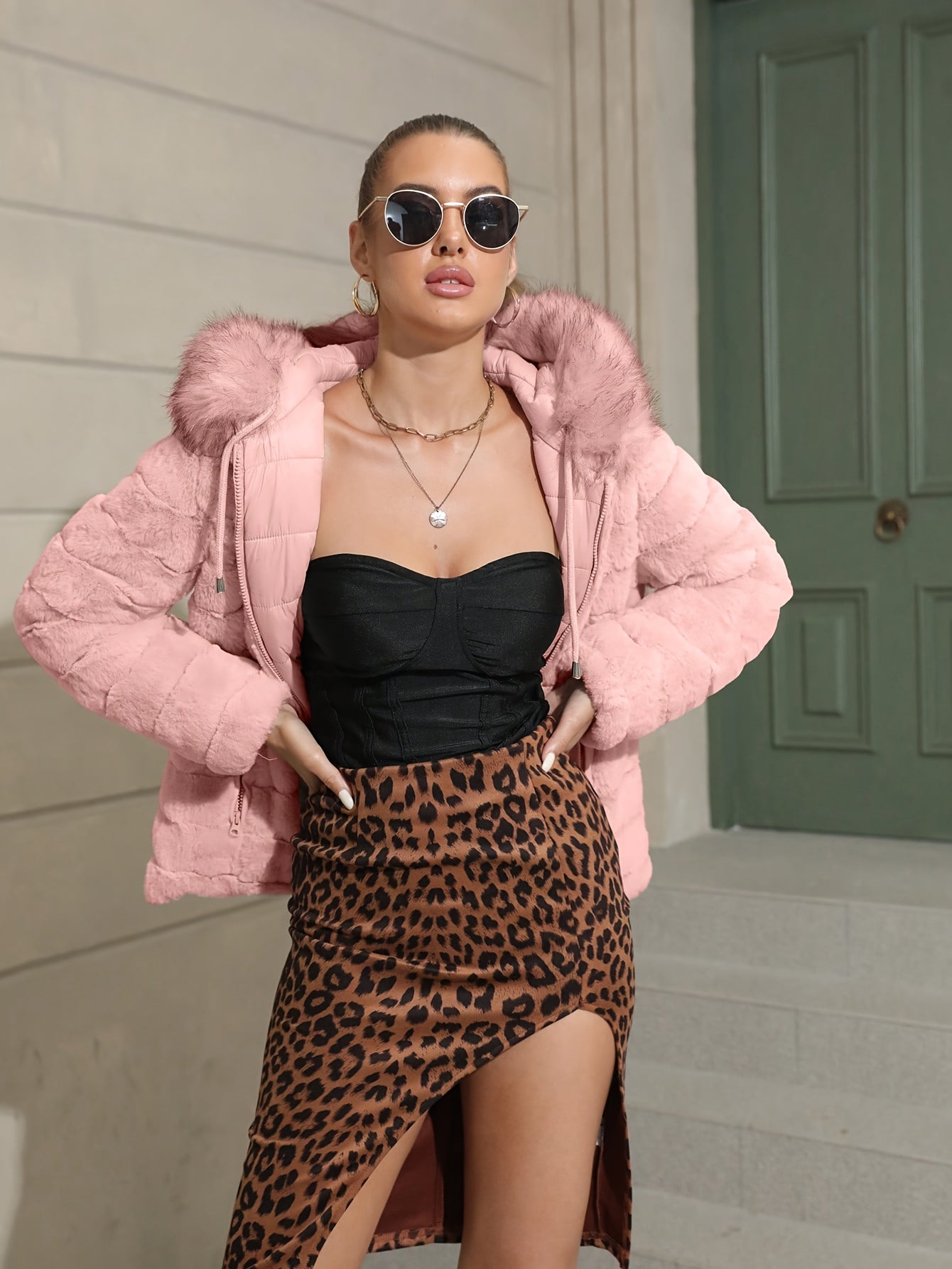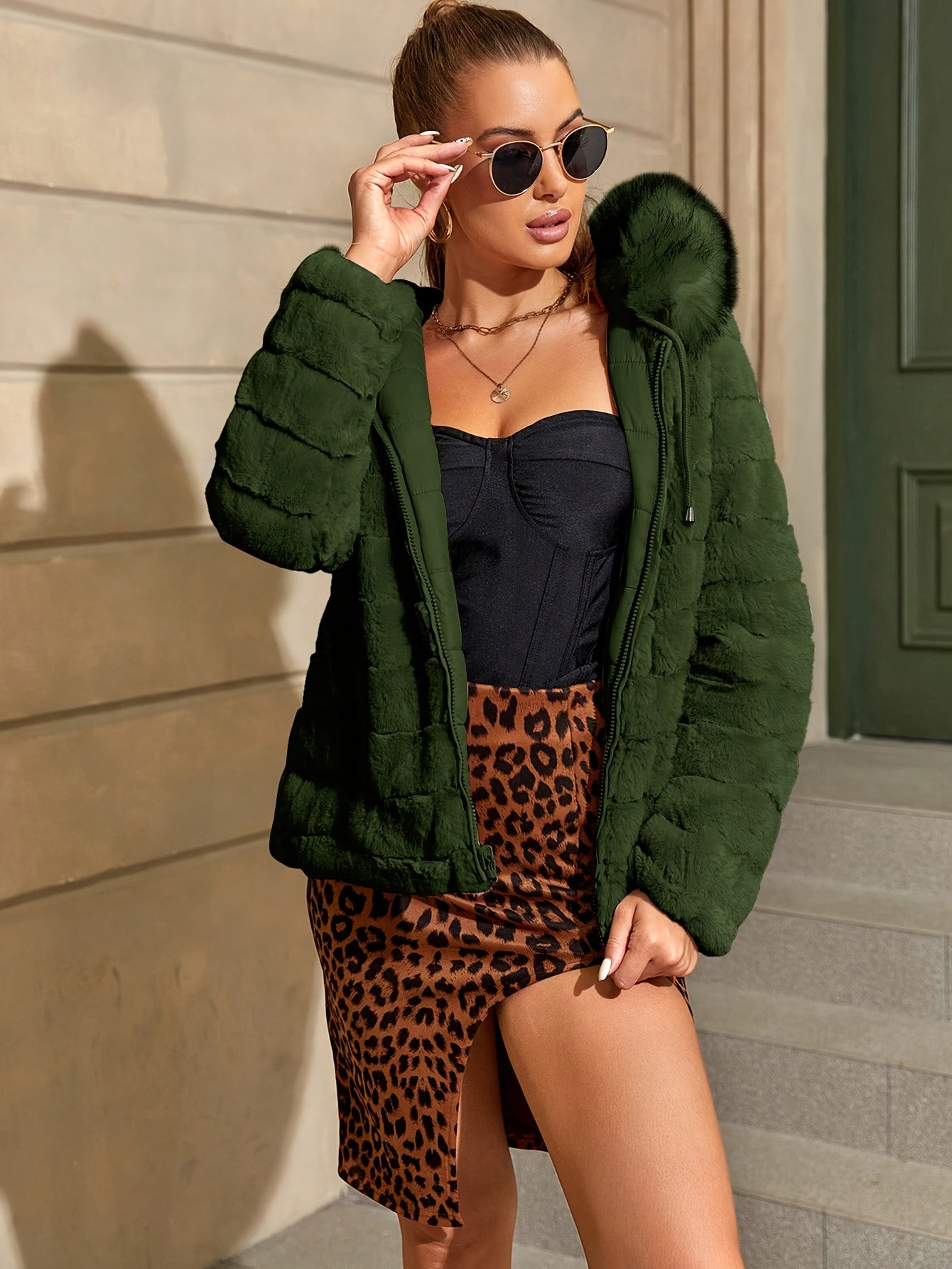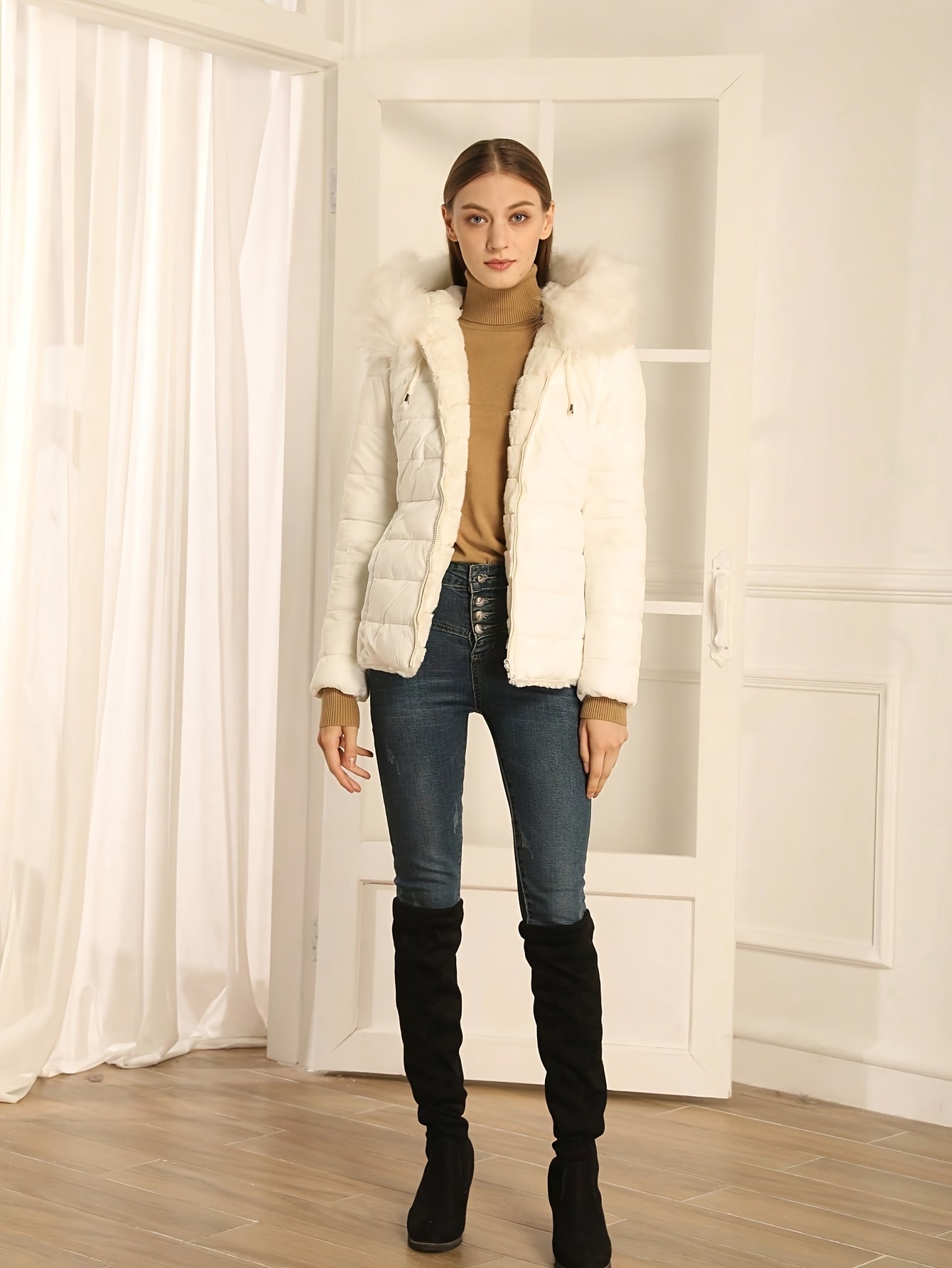 Women'S Heavyweight Winter Coat - Dual-Sided Reversible Jacket with Full-Zip Front, Hooded Collar, Two-Way Zipper Closure - Warm Outerwear for Cold Weather, Office, Travel - Elegant Brown Coat (Size & Wash Label in Pocket), L