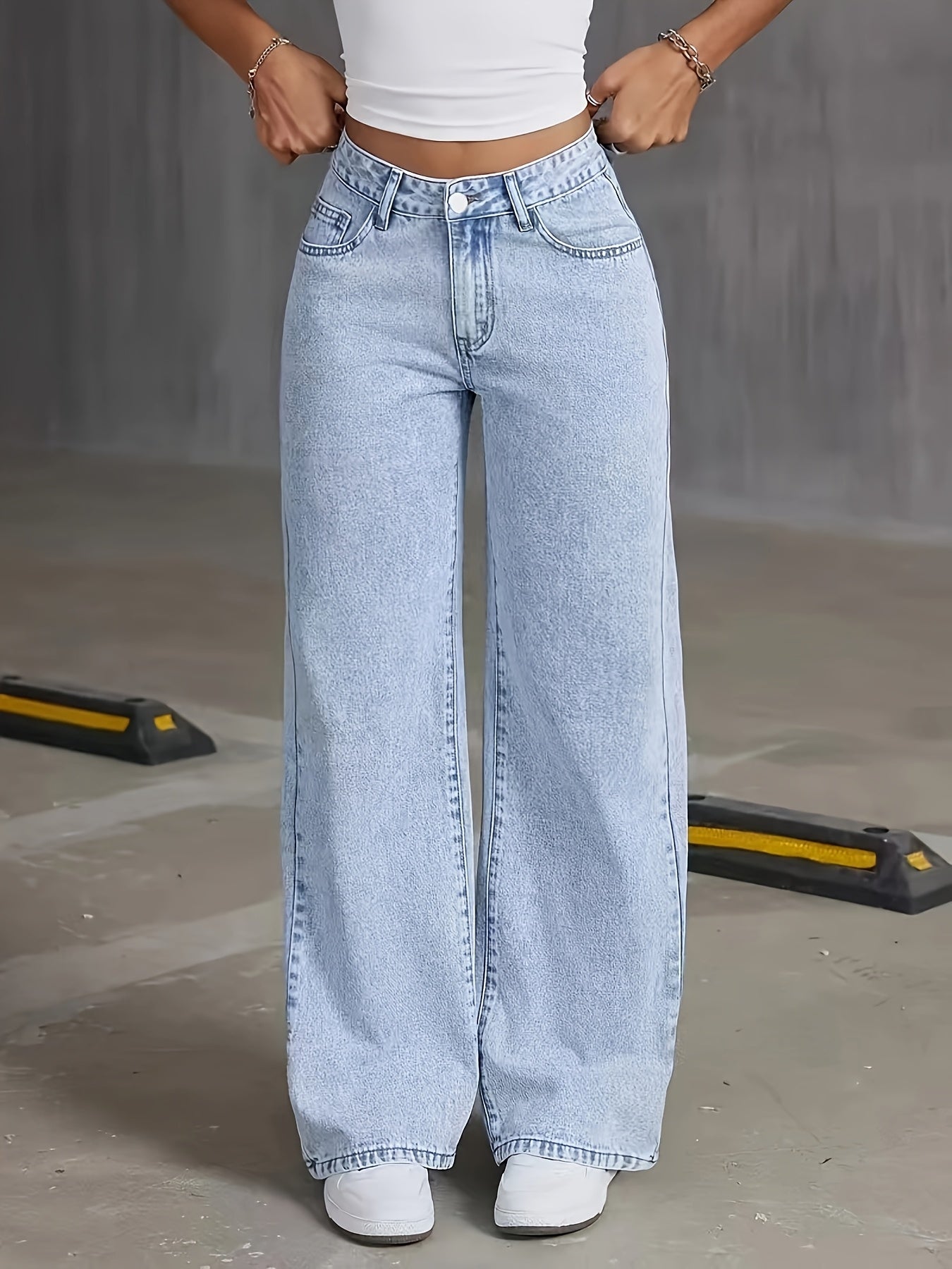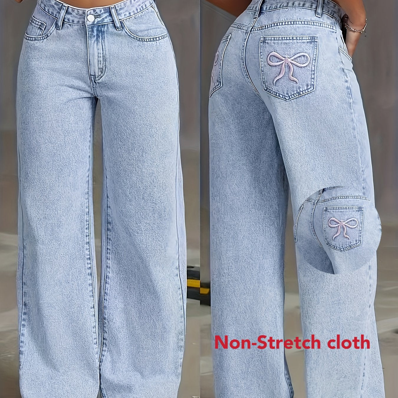Կանացի բարձրաճաշակ թեթև լվացվող կապույտ ջինսե լայն տաբատ՝ թիթեռի դետալներով - փողոցային ոճ, չձգվող գործվածք, լվացվող մեքենայով