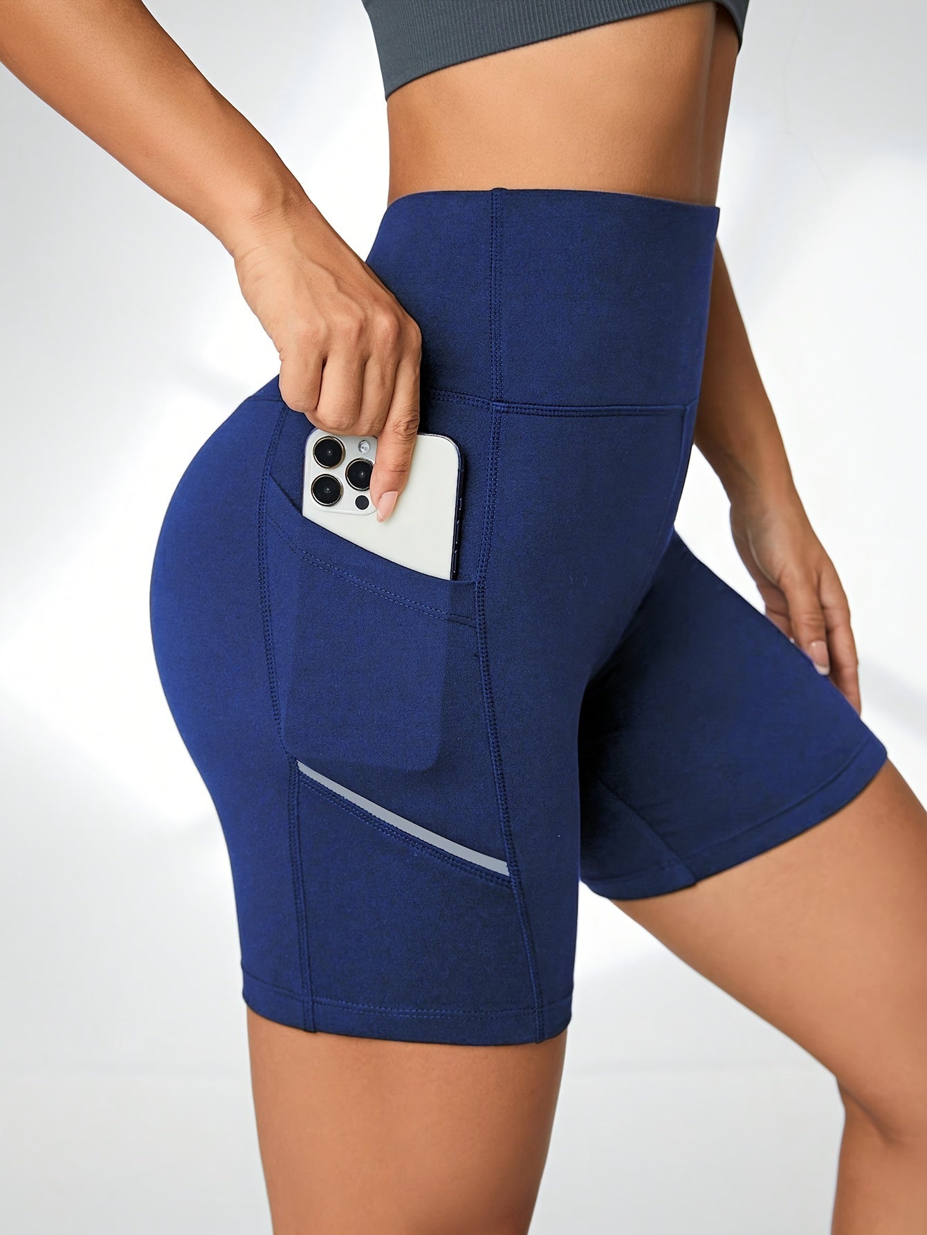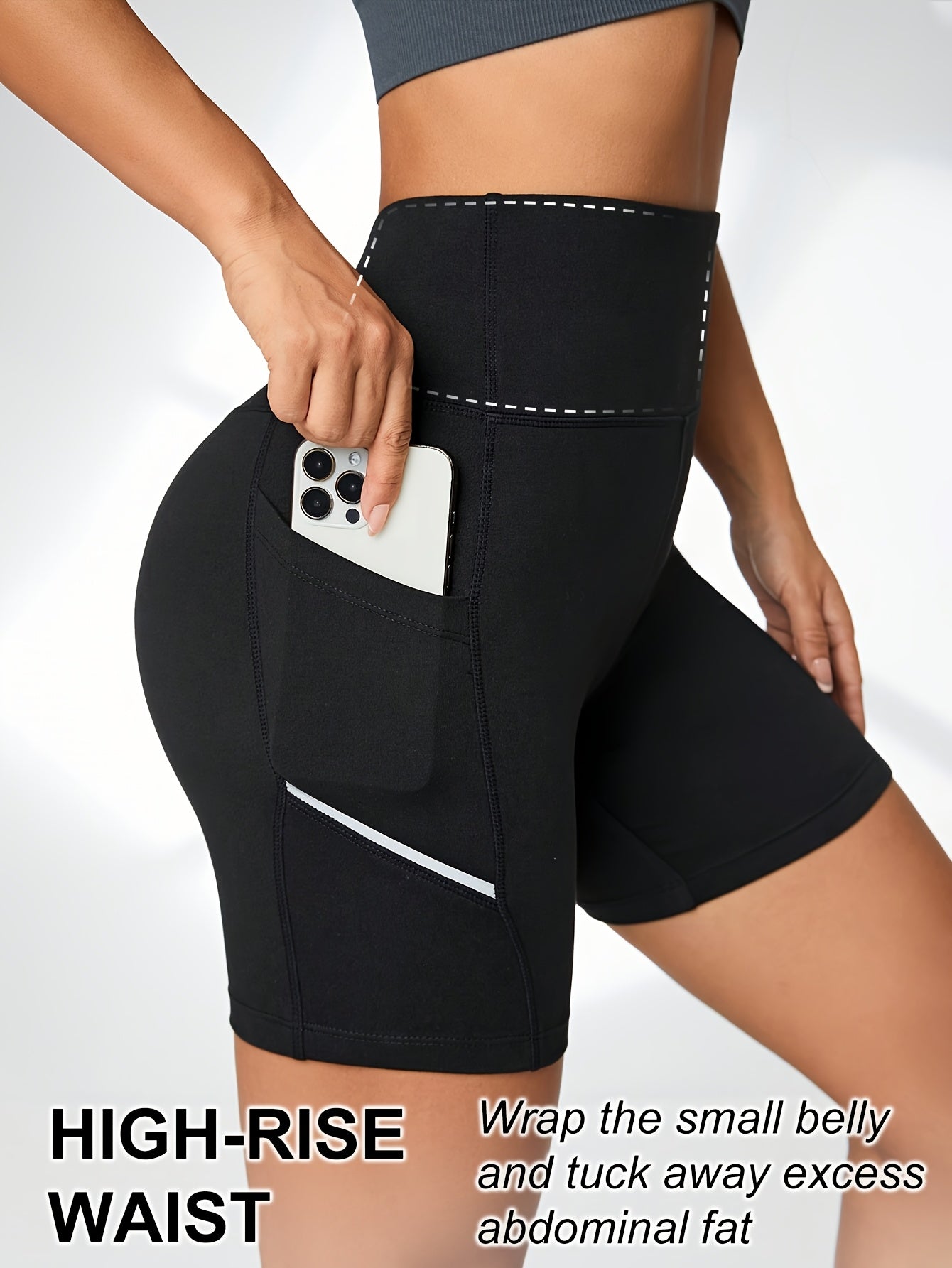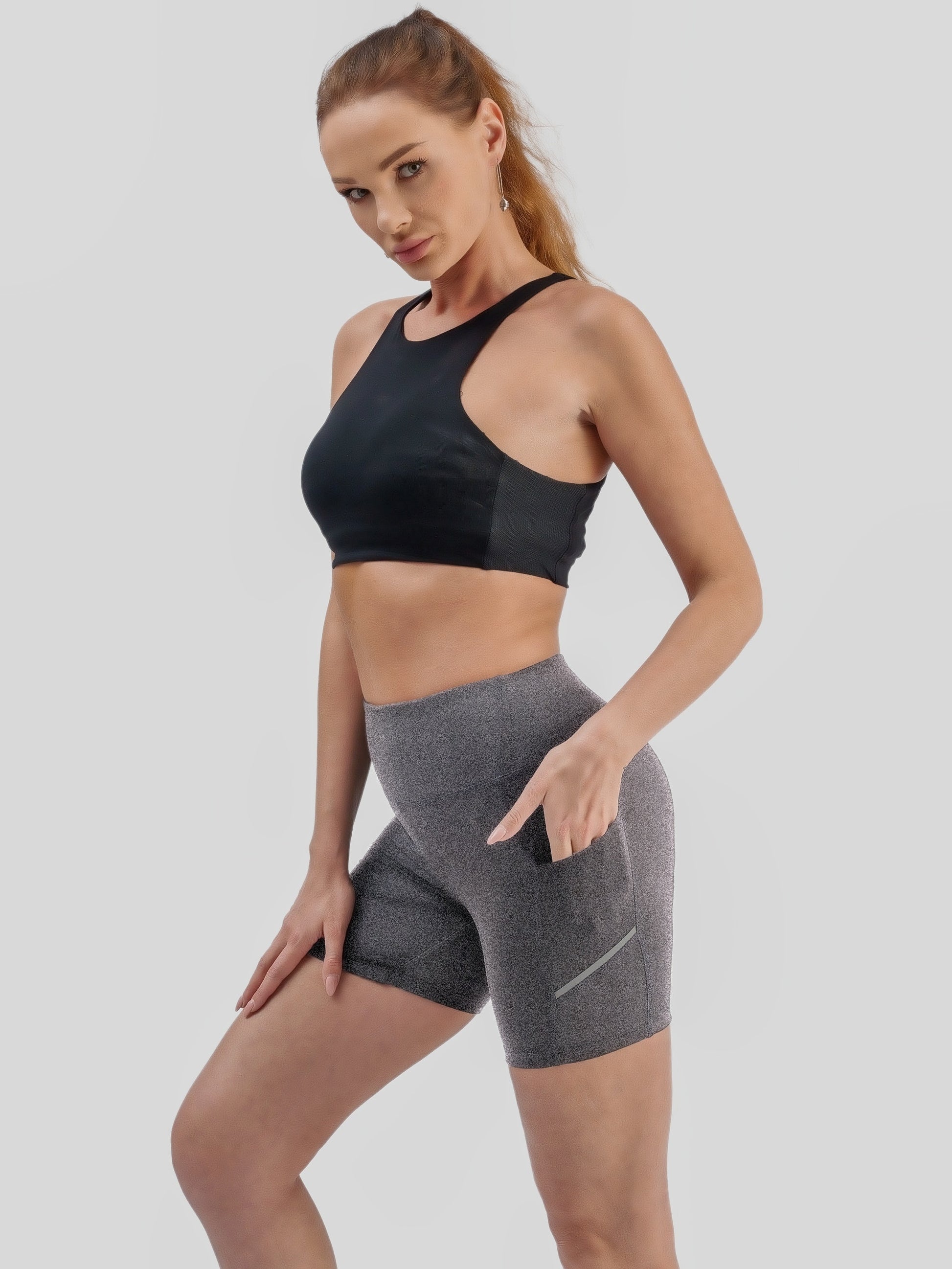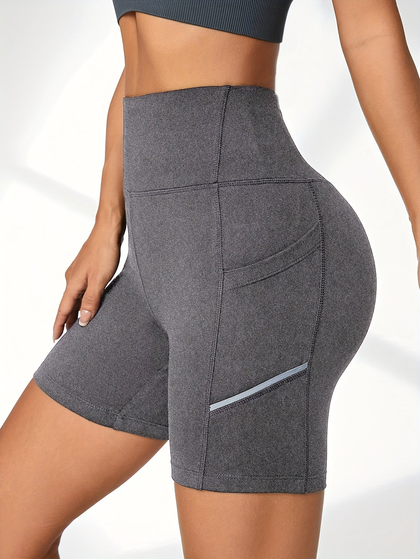 Կանացի բարձր գոտկատեղով սպորտային կոմպրեսիոն շորտեր գրպաններով, բարակ տեղավորմամբ, արագ չորացումով, յոգայի մարզման վազքի շորտեր