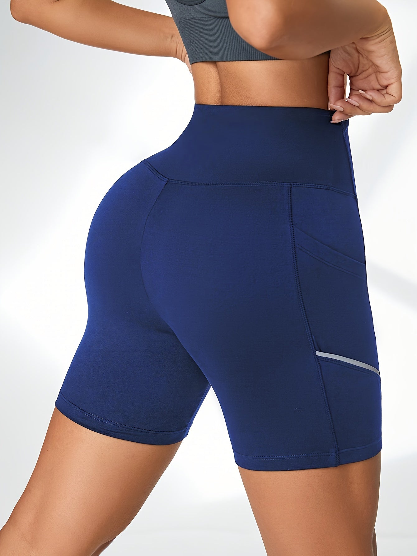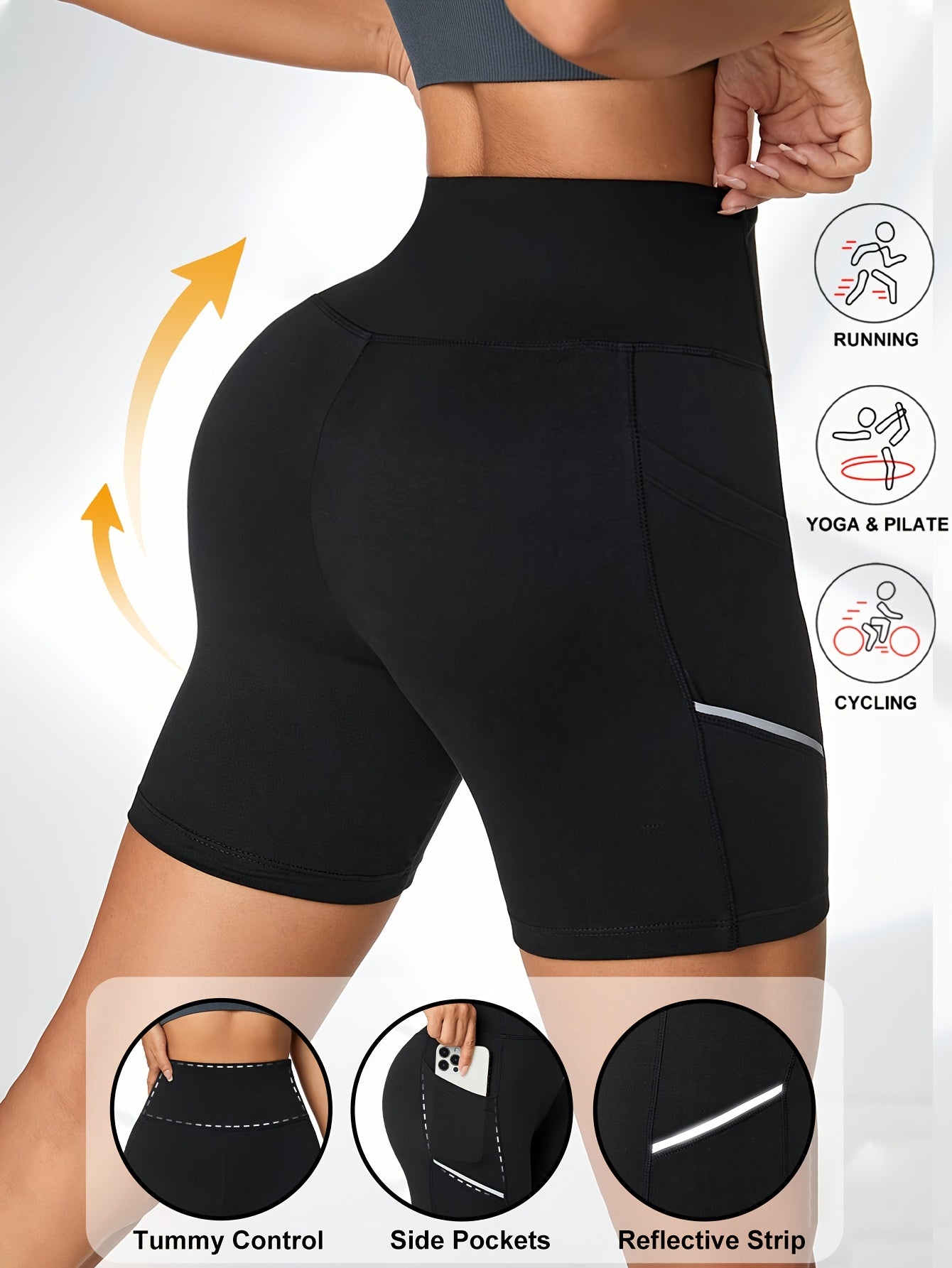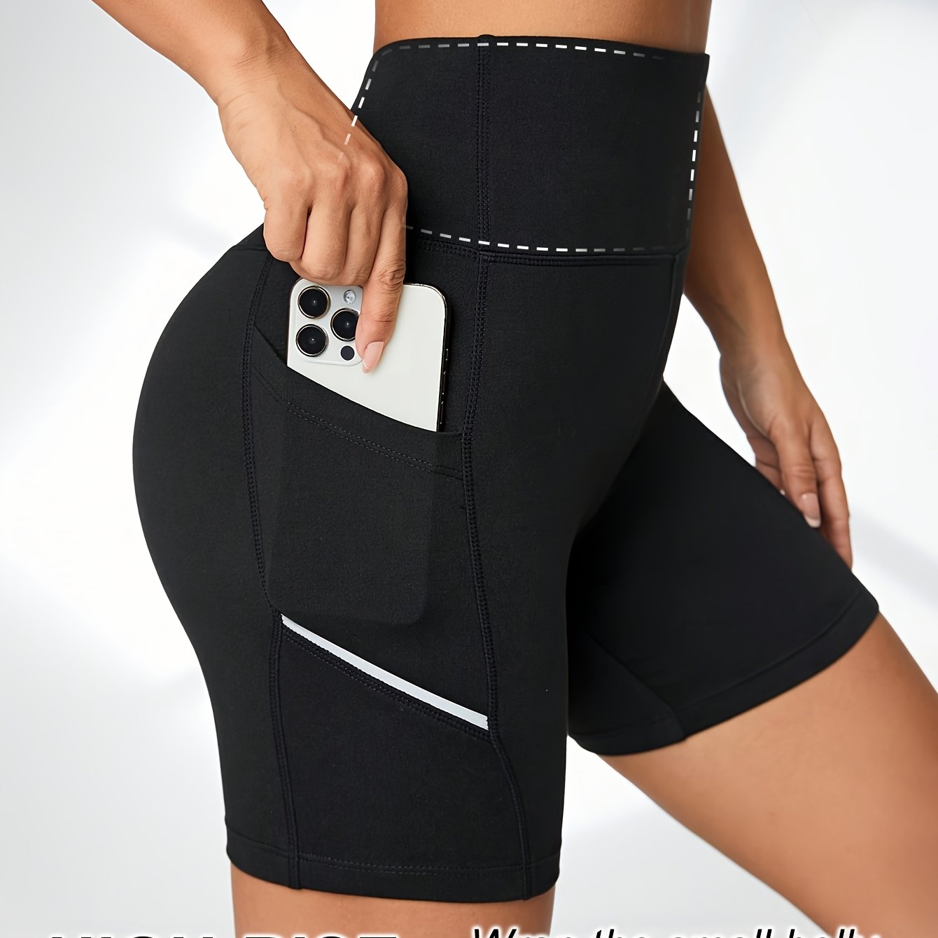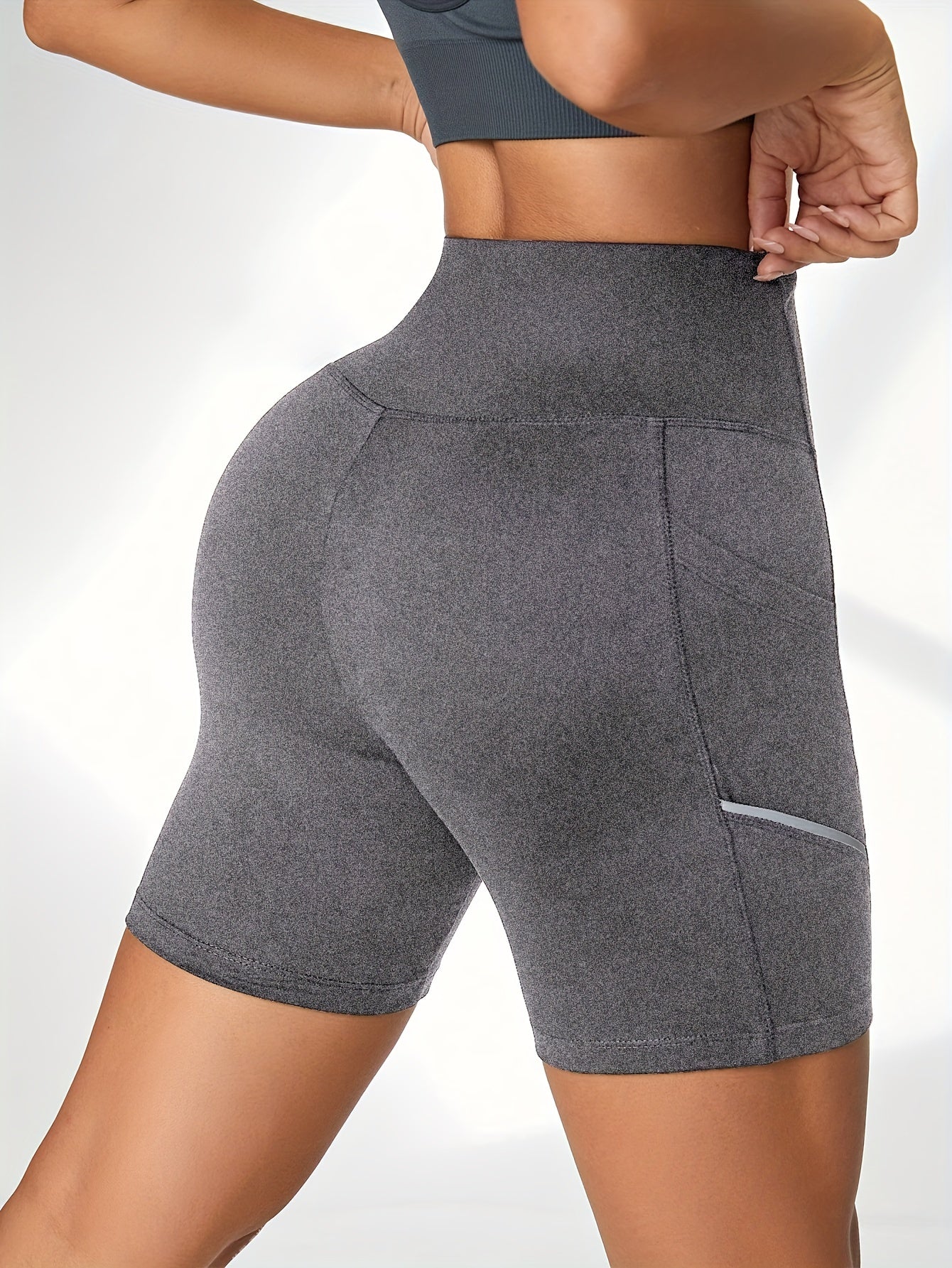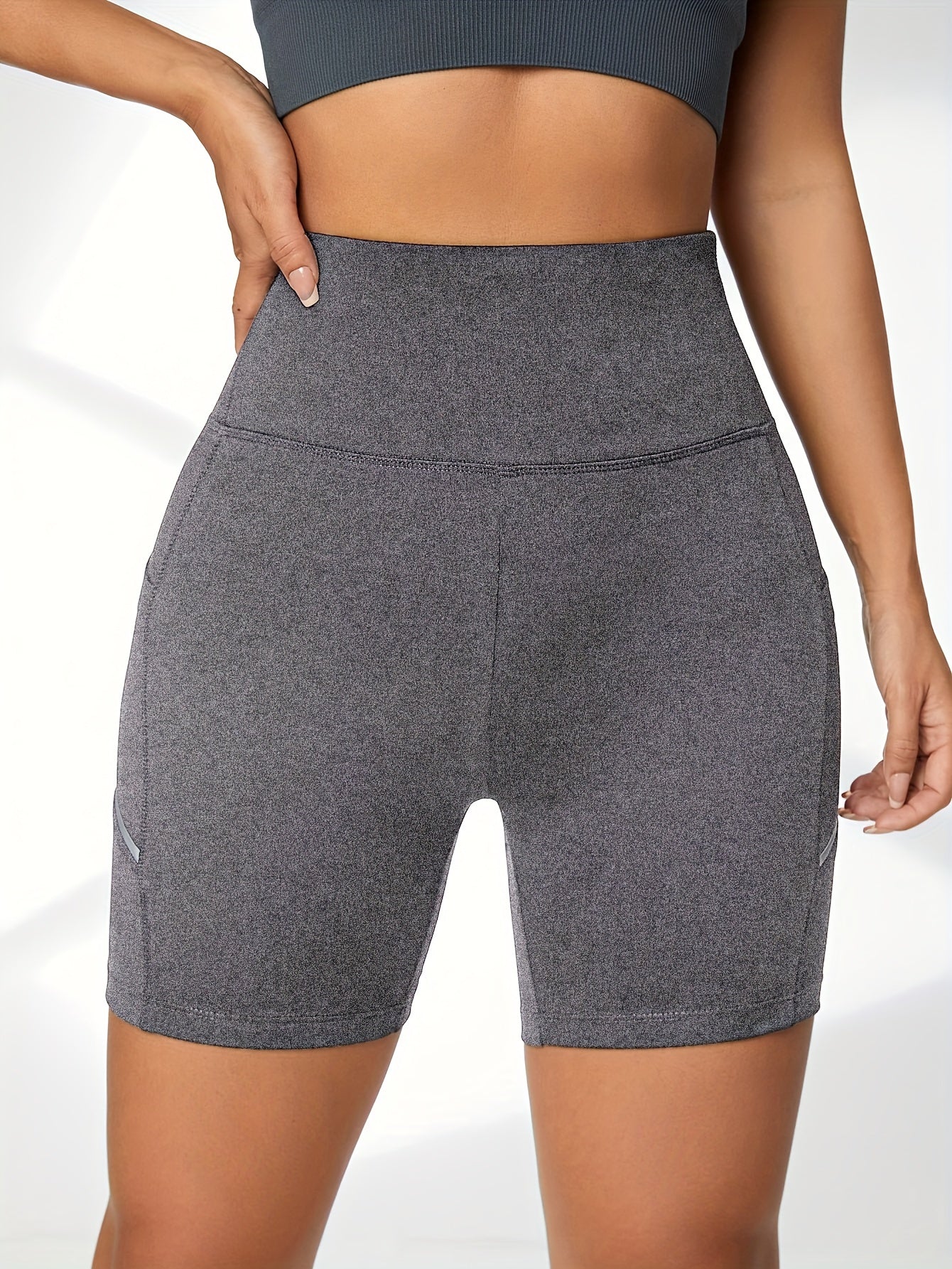 Կանացի բարձր գոտկատեղով սպորտային կոմպրեսիոն շորտեր գրպաններով, բարակ տեղավորմամբ, արագ չորացումով, յոգայի մարզման վազքի շորտեր