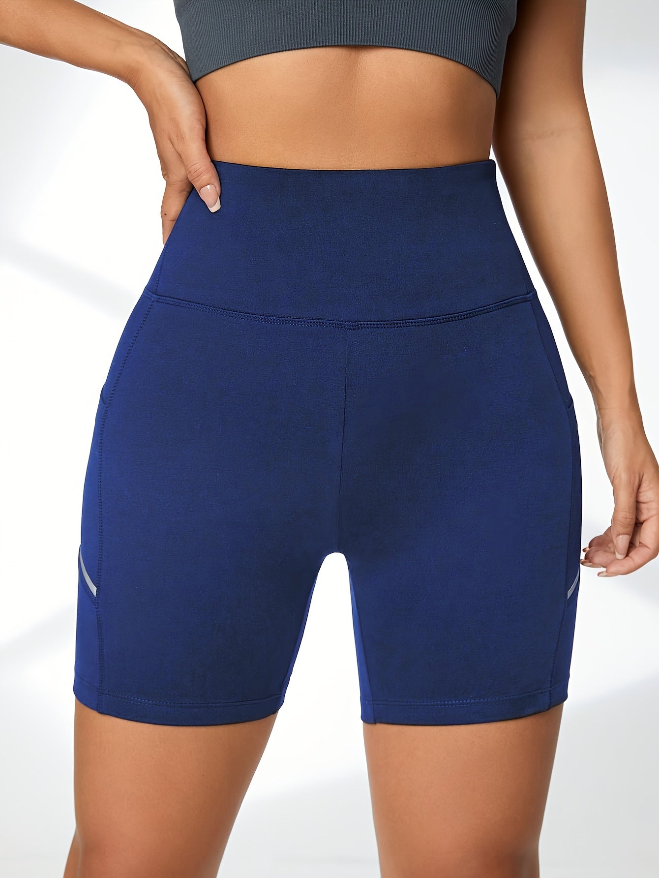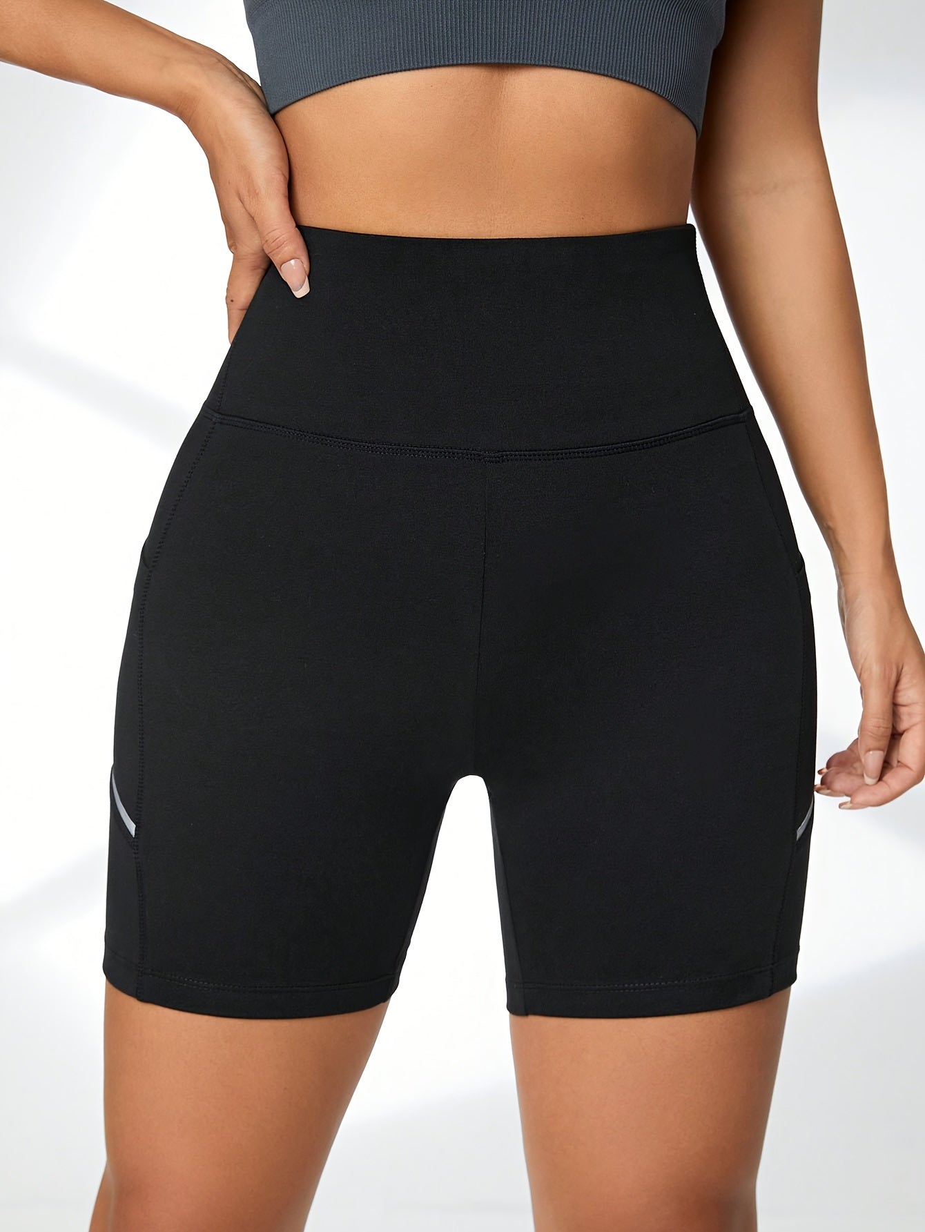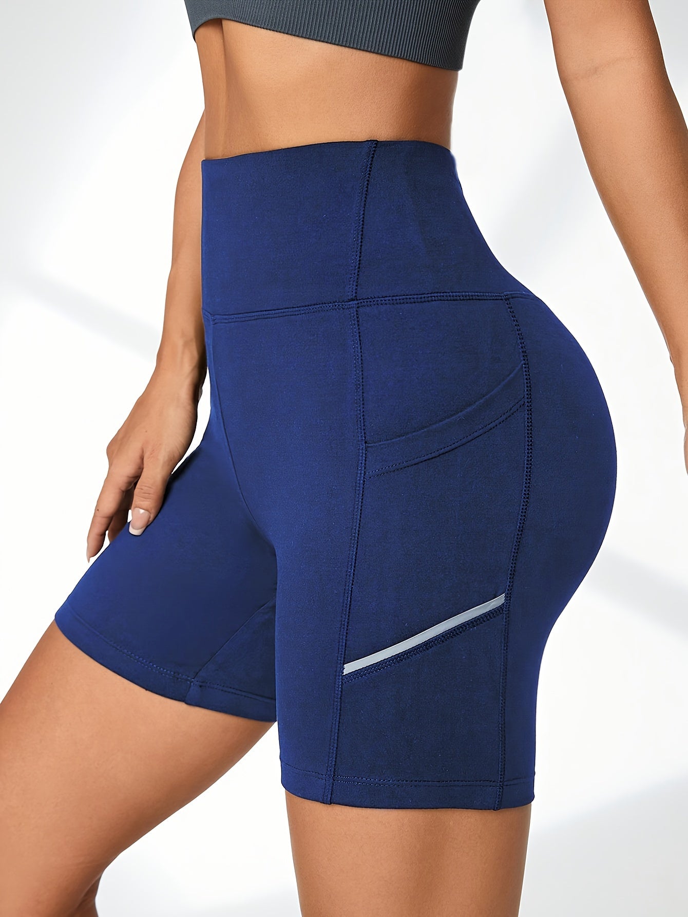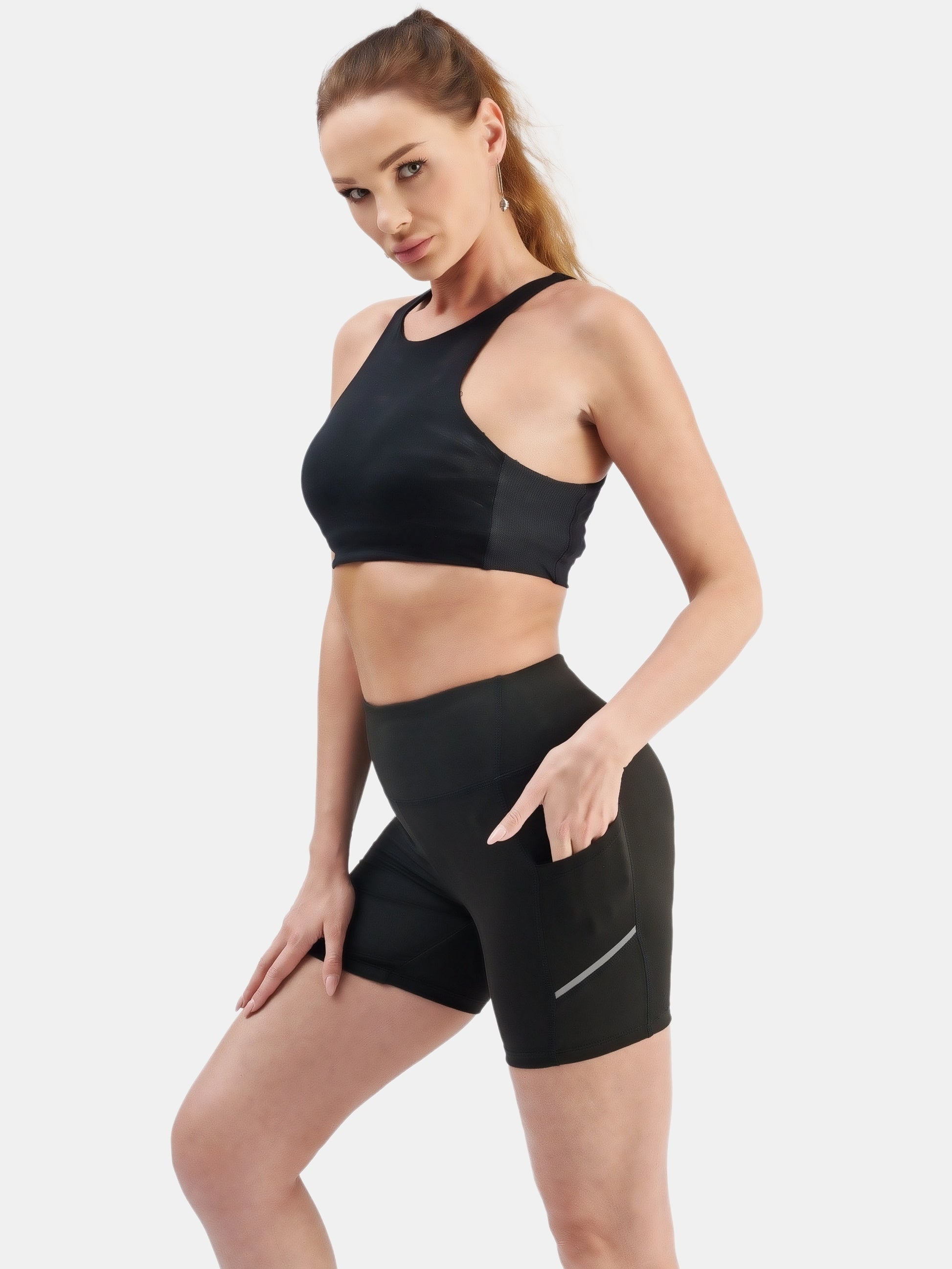 Կանացի բարձր գոտկատեղով սպորտային կոմպրեսիոն շորտեր գրպաններով, բարակ տեղավորմամբ, արագ չորացումով, յոգայի մարզման վազքի շորտեր