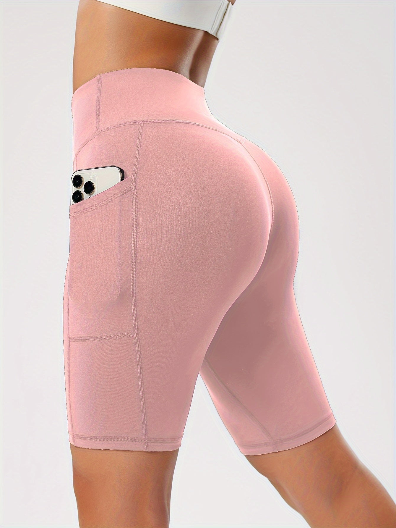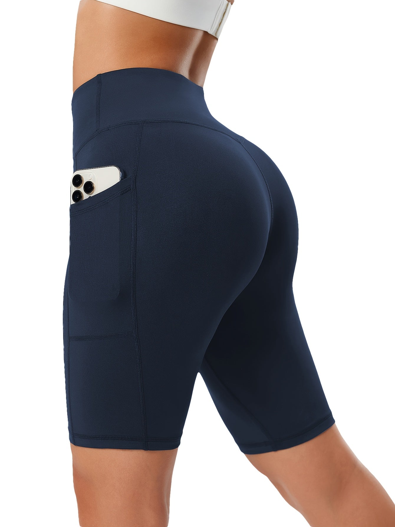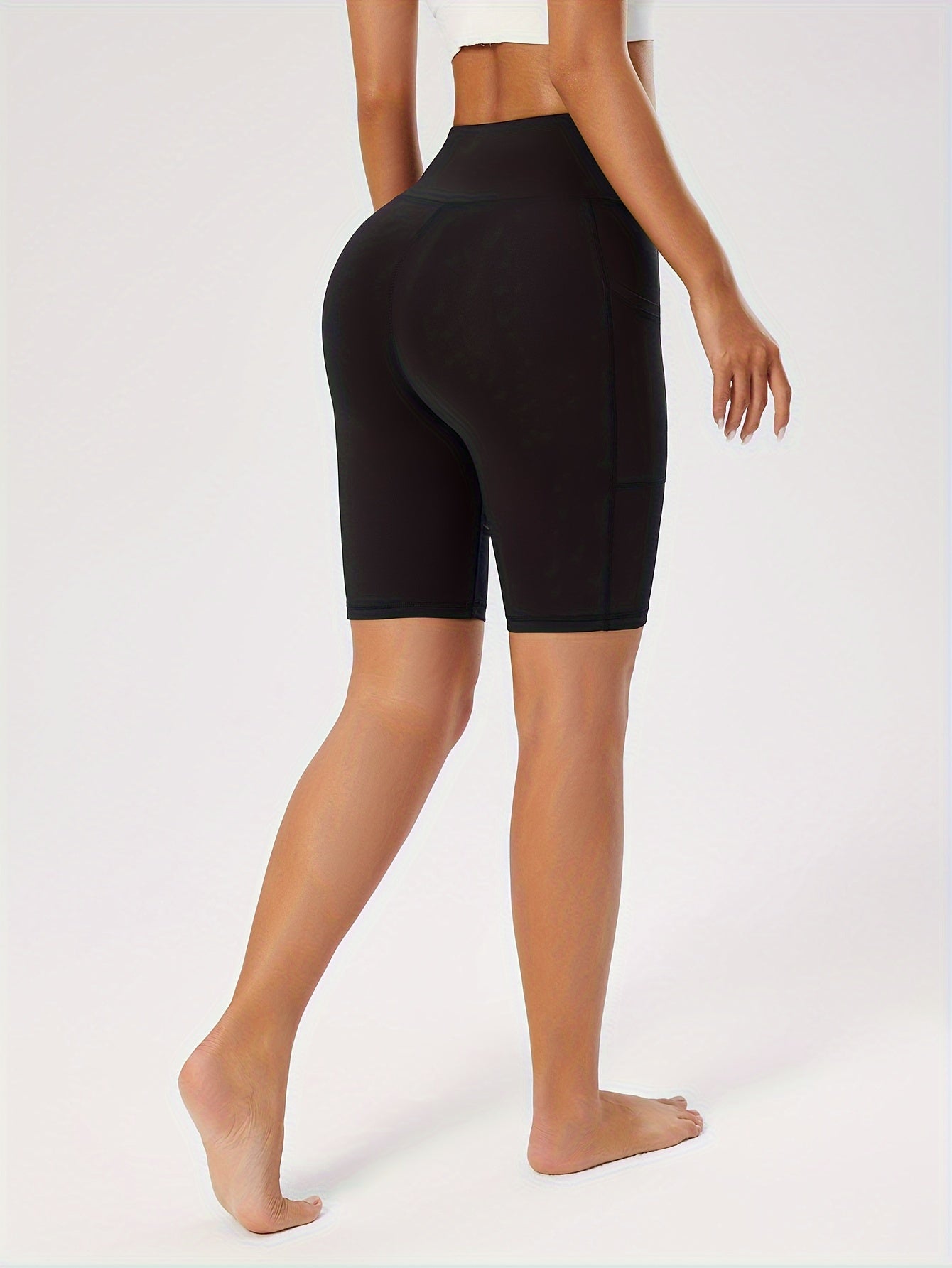 Կանացի բարձր գոտկատեղով սև յոգայի շորտեր գրպաններով - որովայնի հսկողություն, վազքի և մարզման ձգվող լեգինսներ, դիմացկուն պոլիեսթեր/սպանդեքս խառնուրդ, նրբագեղ դիզայն