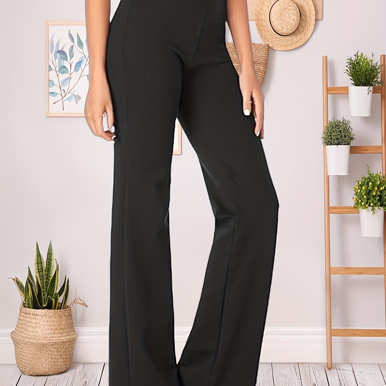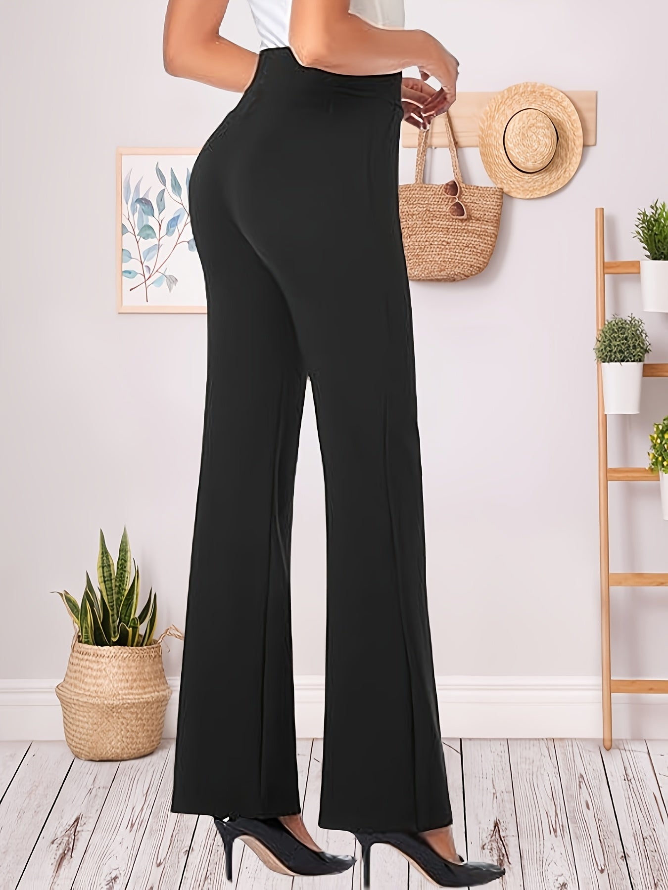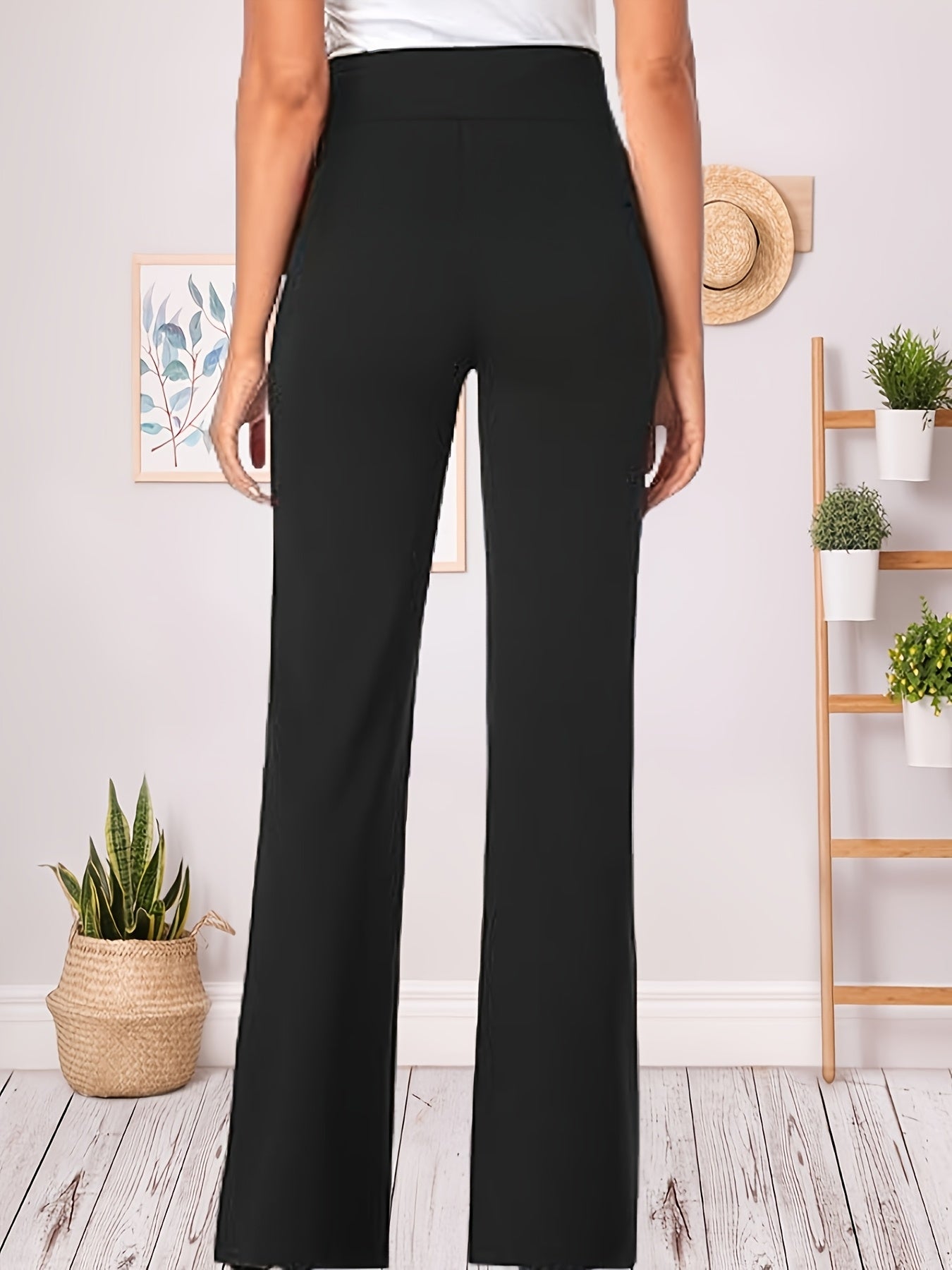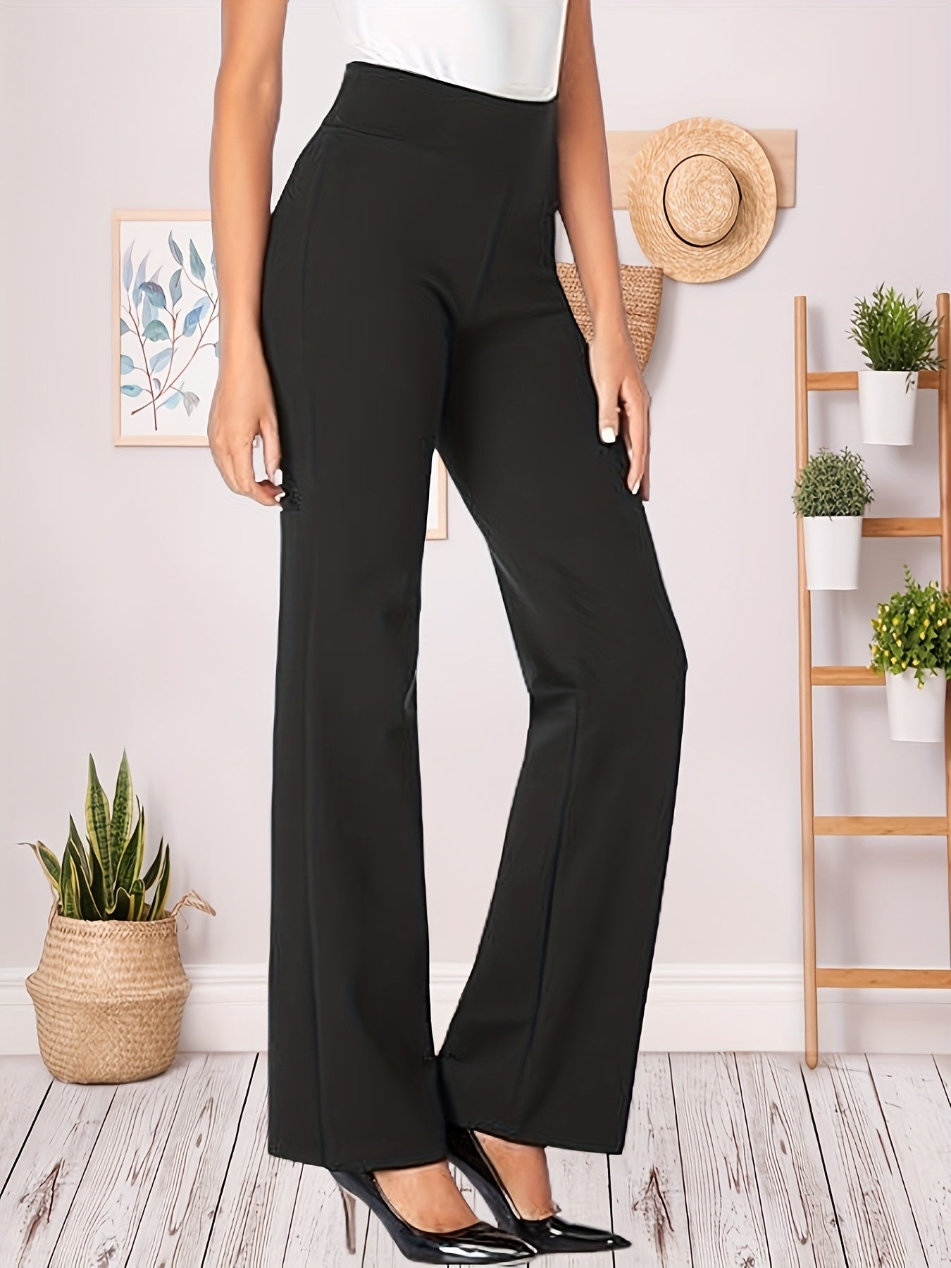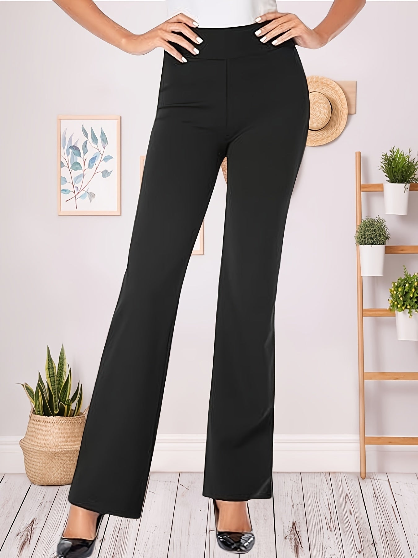Կանացի բարձր գոտկատեղով բոցավառվող յոգա տաբատ, էլեգանտ միագույն պոլիեսթեր սպանդեքս խառնուրդ, միջին ձգվող, նիհարեցնող մարզական ֆիթնես տաբատ, գարուն/աշուն սեզոն, հյուսված գործվածք, 120գ/մ² - սև