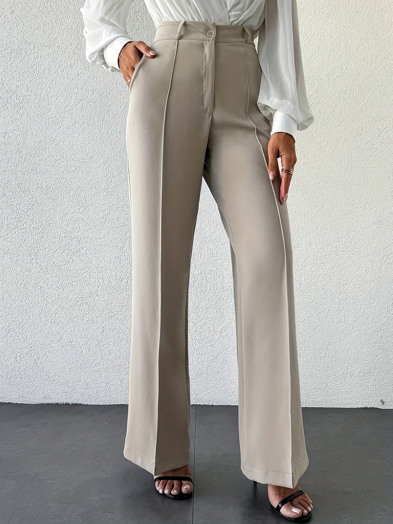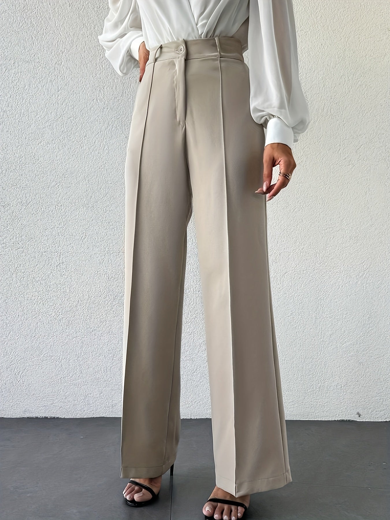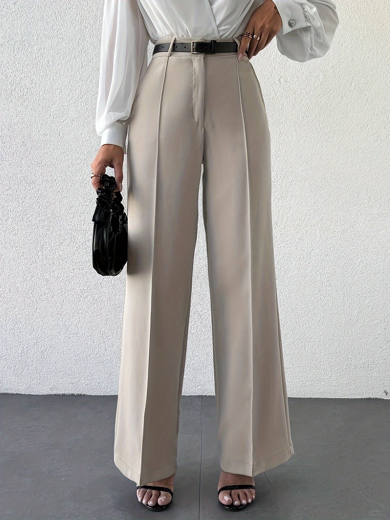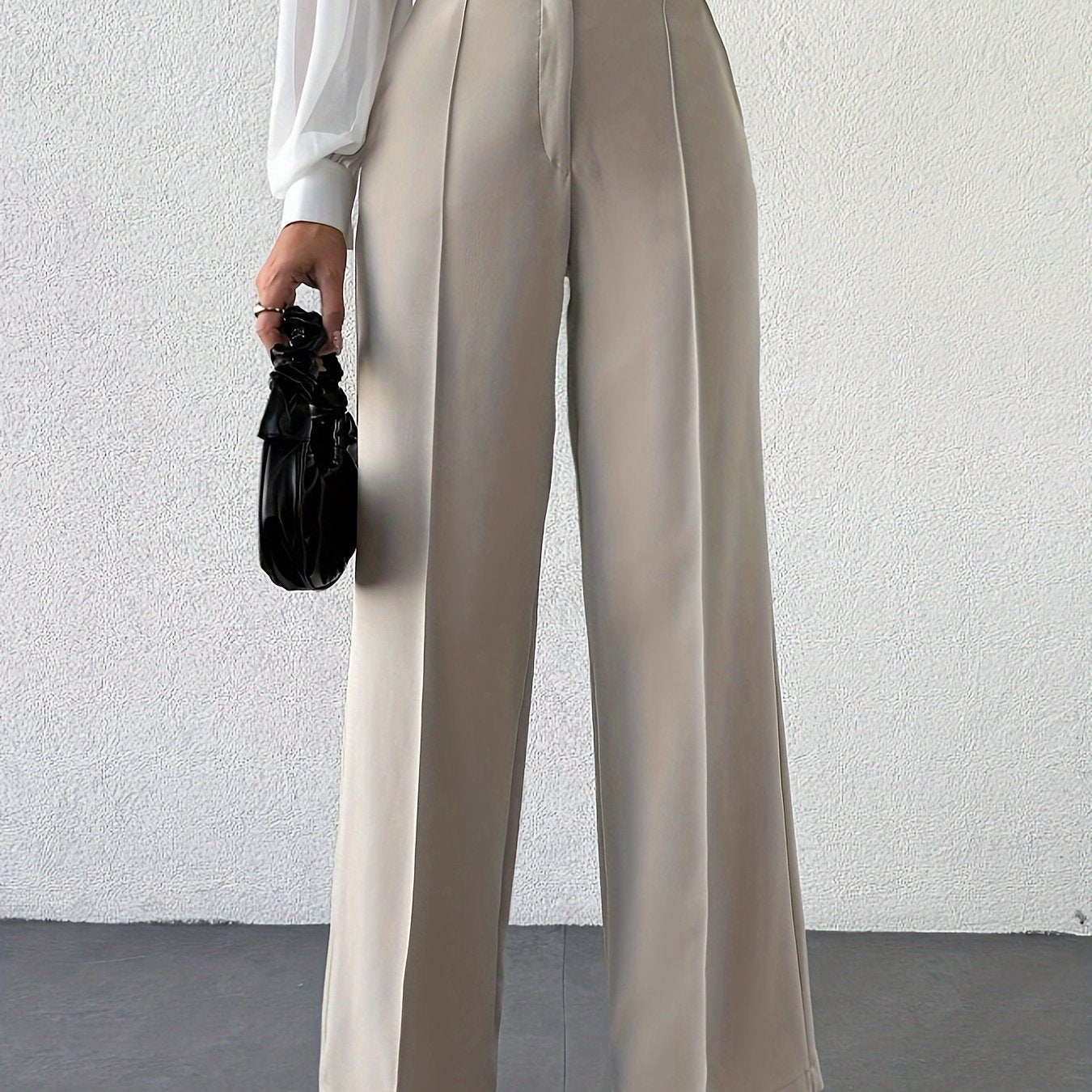 Կանացի բարձր գոտկատեղով ծալքավոր լայն ոտքերով տաբատ՝ բաց բեժ պոլիեսթերի խառնուրդ, սովորական շալվար վարագույրով, լվացվող մեքենայով, հարմարավետություն բոլոր սեզոններին, բազմակողմանի հագուստ | Drape Detailing | Սպանդեքս տաբատ