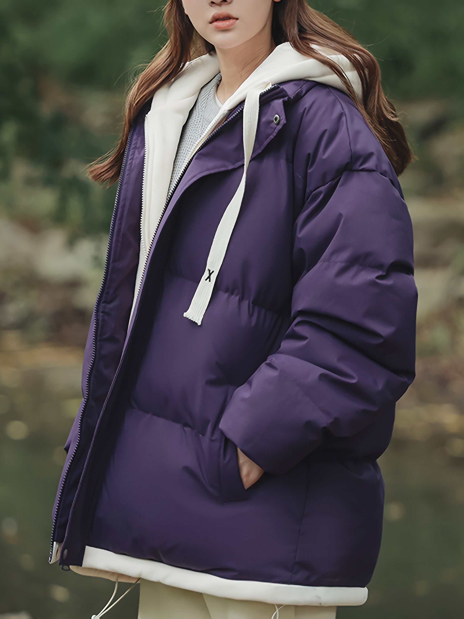 Կանացի բաց կապույտ, գլխարկով փքված բաճկոն - հարմարավետ, բրդյա ծածկույթով ձմեռային վերարկու՝ լարերով, առօրյա ոճ՝ ցուրտ եղանակի համար, ձմեռային վերարկու