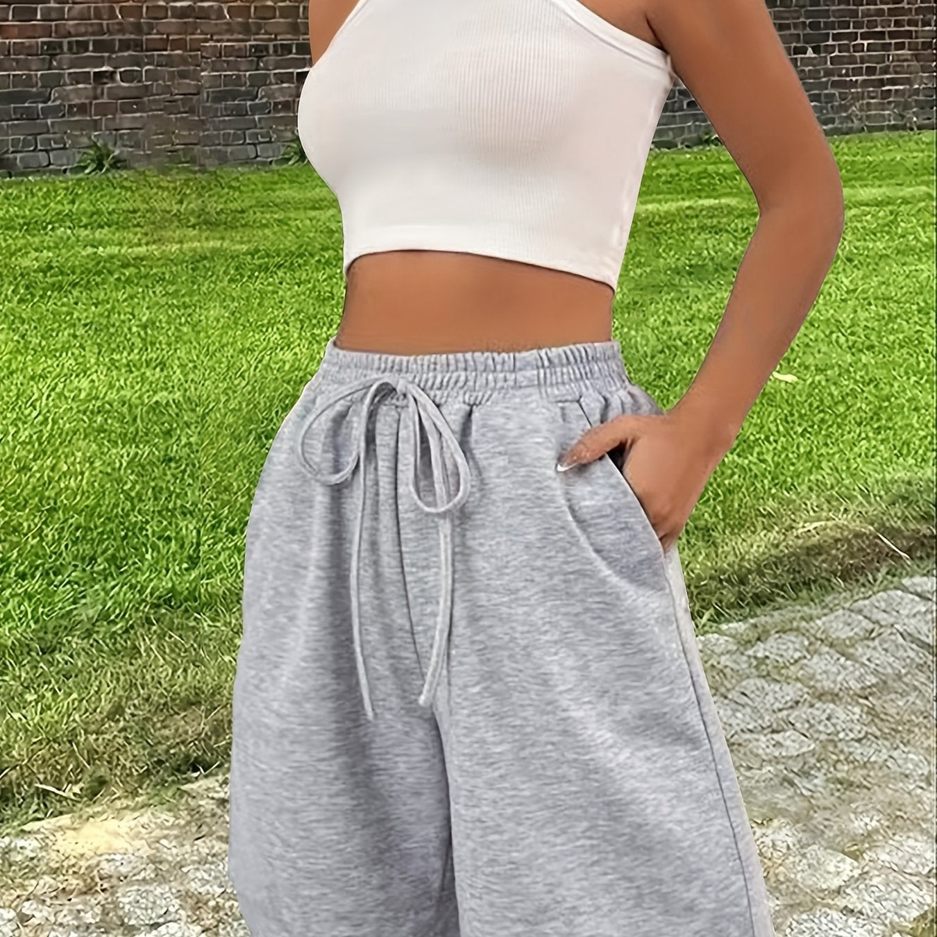 Կանացի բաց մոխրագույն պարաններով պատահական շորտեր - ազատ տեղավորվող, մինչև ծնկների երկարություն, պոլիեսթեր տրիկոտաժե գործվածք, մեքենայով լվացվող, ամառային անհրաժեշտ հարմարավետության և ոճի համար, ամառային ամենօրյա հագուստ | Շորտեր շորտեր | Ոչ տպագիր դիզայն
