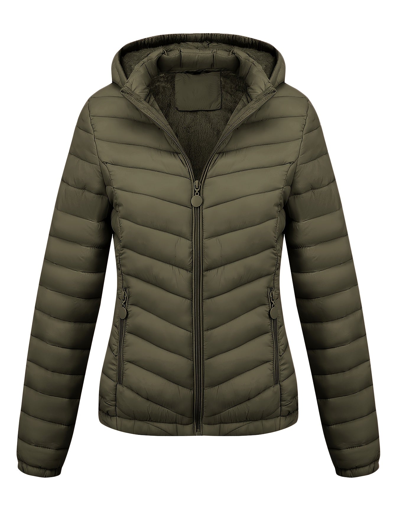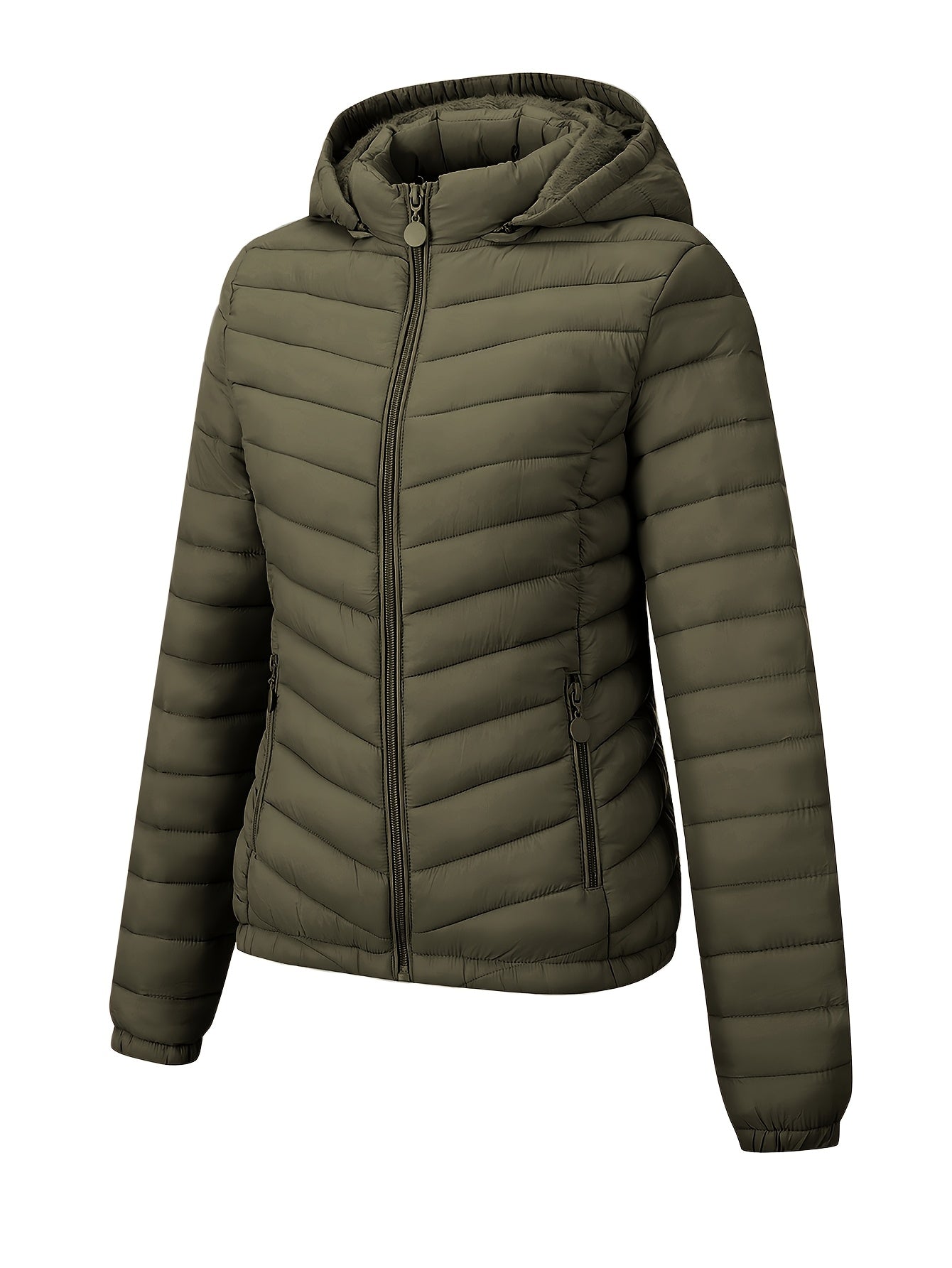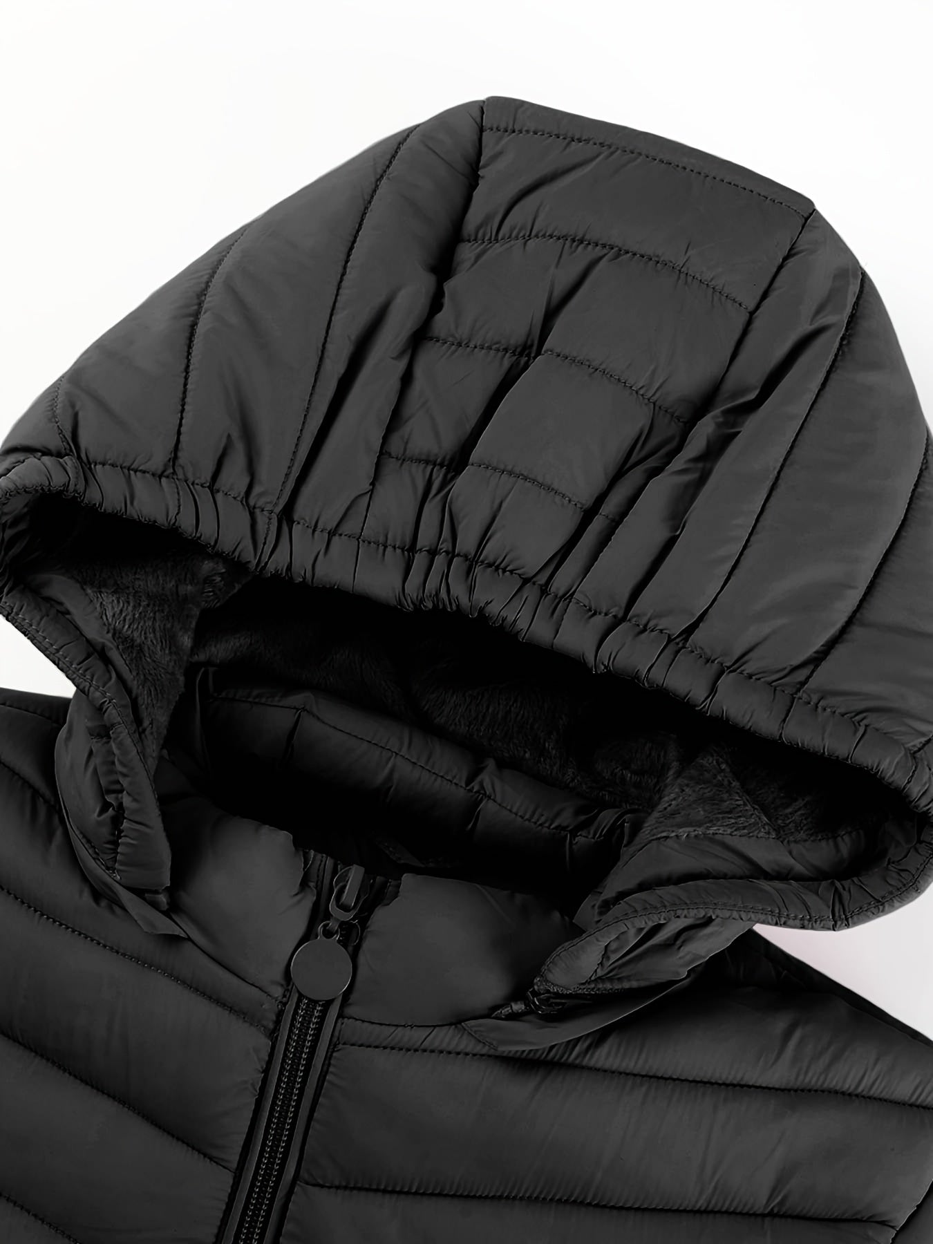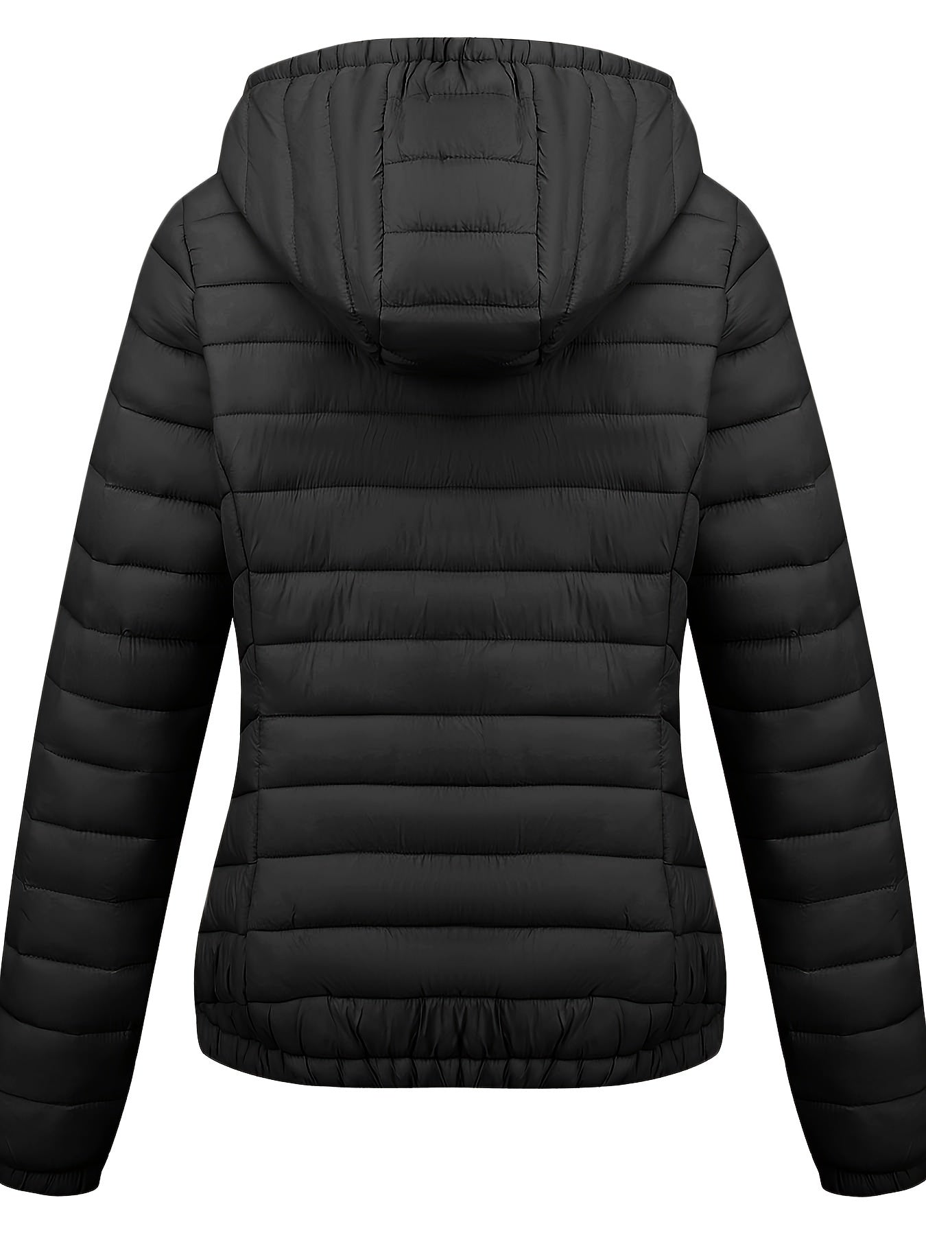 Կանացի թեթև, սև, գլխարկով ձմեռային բաճկոն՝ գրպաններով - Էլեգանտ երկար թևքերով վերնազգեստ, նեյլոնե նյութ, կայծակաճարմանդով դիզայն, իդեալական է առօրյա կամ ճանապարհորդության համար, ձմեռային վերարկուներ